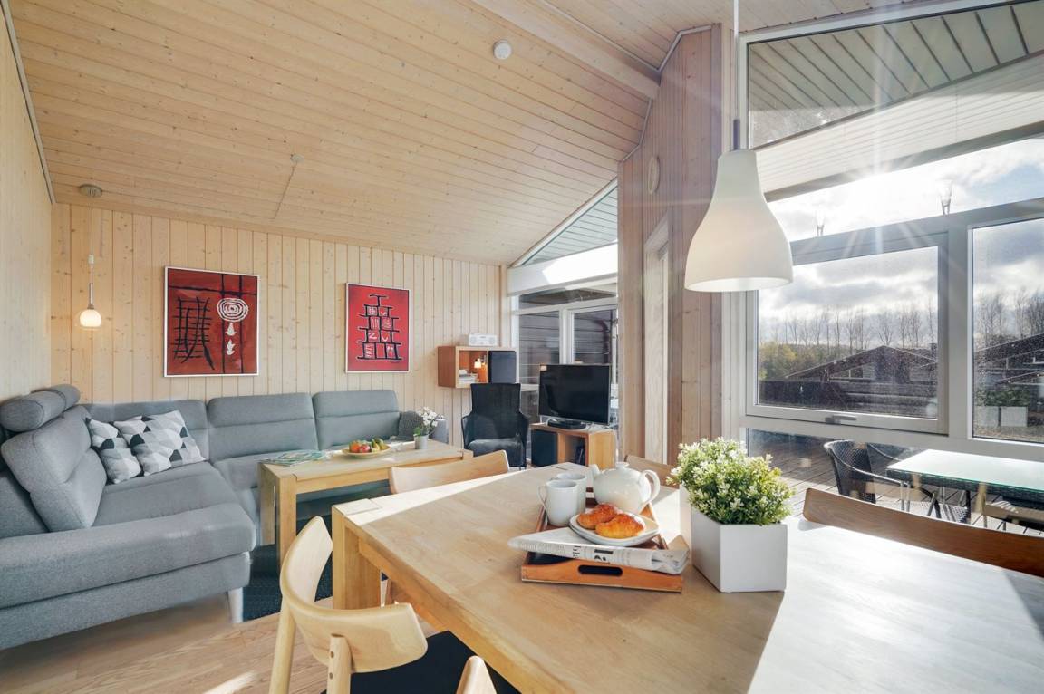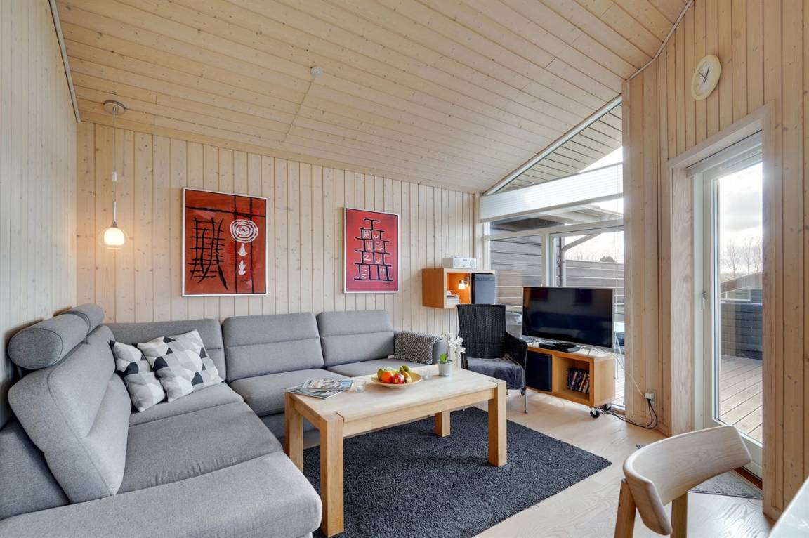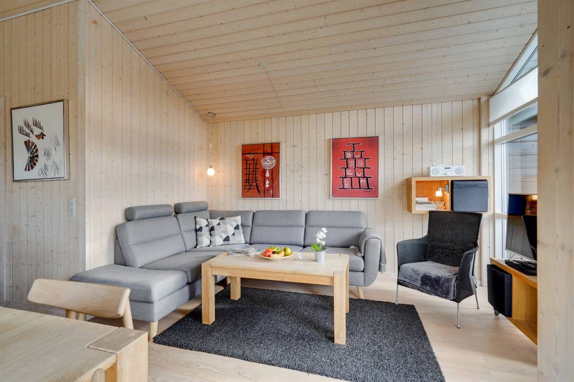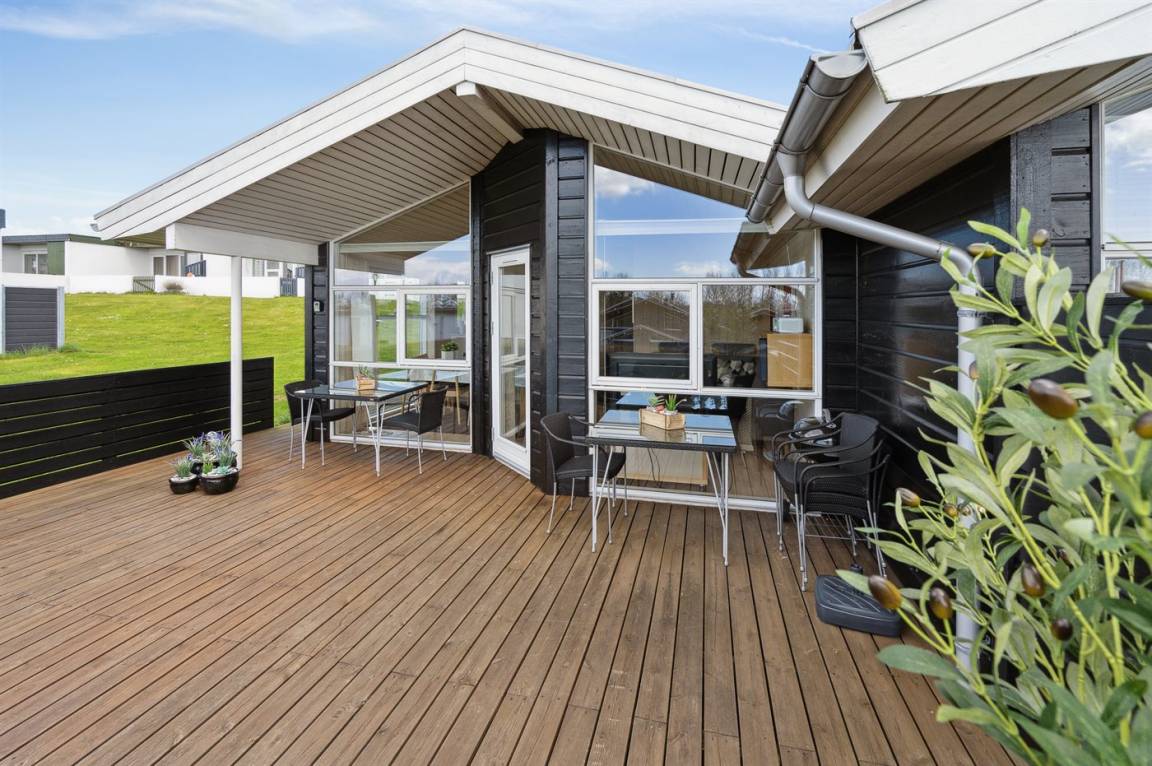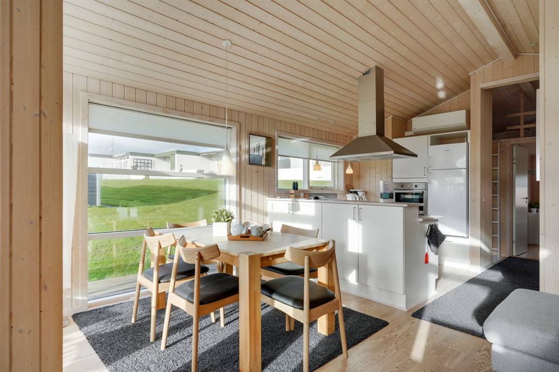 Nur 250 m vom Strand entfernt und im Gehabstand vom gemütlichen Yachthafen liegt dieses schöne Ferienhaus (Doppelhaus) in der Ferienanlage Dageløkke Feriecenter. In der Ferienanlage gibt es kostenlose Aktivitätsmöglichkeiten für die ganze Familie wie z. B. gemeinsame Sporthalle für Aktivitäten wie Fußball, Handball und Badminton, Trimmgeräte, Minigolfanlage sowie Spielplatz mit Hüpfkissen, Trampolin, Sandkasten, Schaukeln, Spielhaus u.a. m. Übrigens: Die 2 Schlafplätze auf Matratzen befinden sich im offenen Obergeschoss des Hauses.