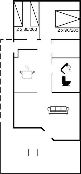 SchlafverhältnisseDie Schlafplätze verteilen sich auf 2 Schlafräume. 2 Schlafplätze in einem Doppelbett. 2 Schlafplätze in Einzelbetten. 2 Schlafplätze auf Matratzen. 2 von diesen Schlafplätzen befinden sich im offenen Obergeschoss. Ferner steht ein Kinderbett zur Verfügung.