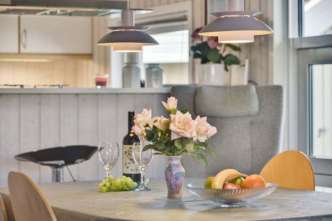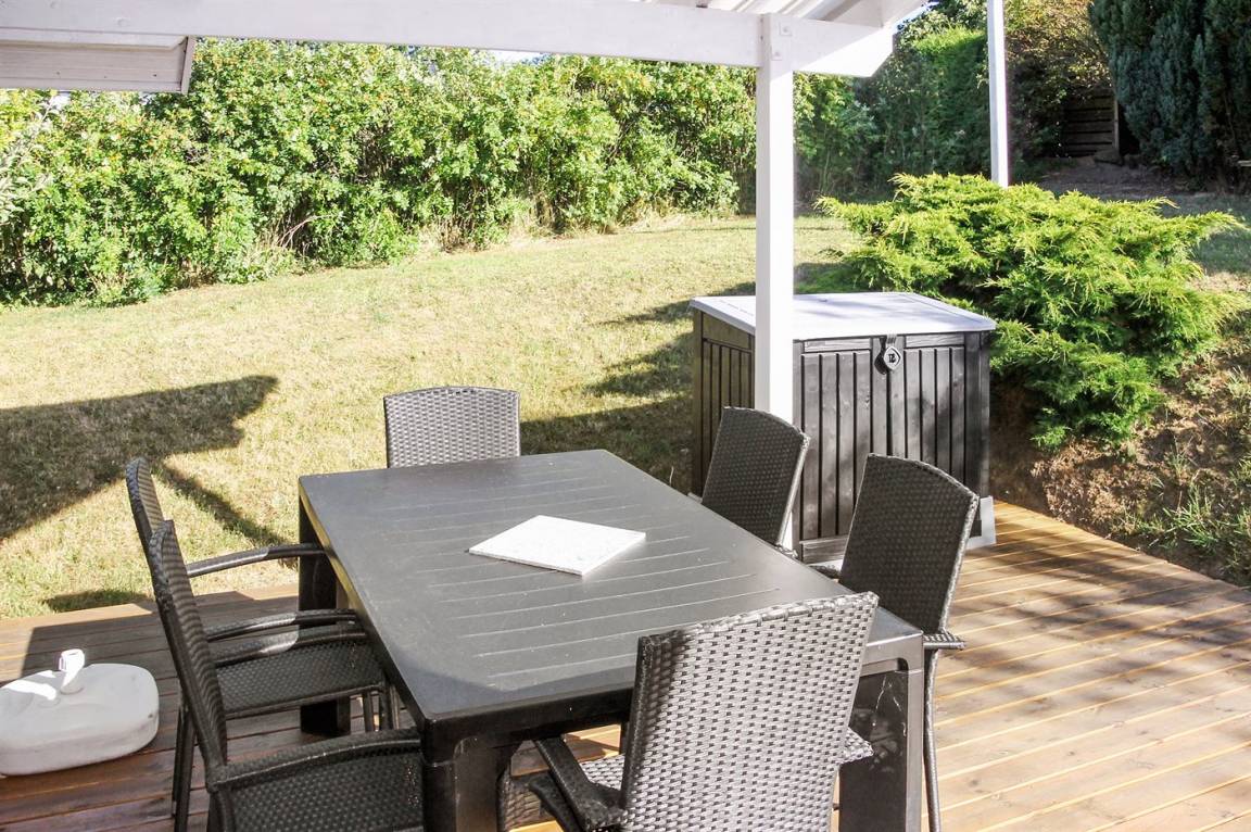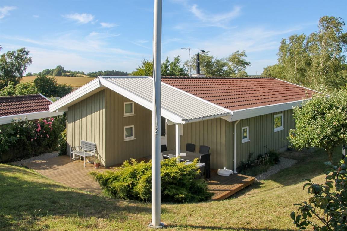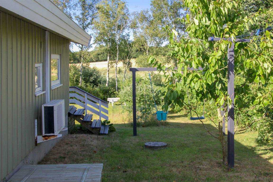 Das Haus hat eine Wohnfläche von 90 m², ist 2000 gebaut und liegt auf einem 1.200 m² großen Naturgrundstück mit Platz für verschiedene Aktivitäten im Freien und verschiedene Spielgeräte für die Kinder. Zum Ferienhaus gehören 40 m² Terrasse, wovon 15 m² überdacht sind.