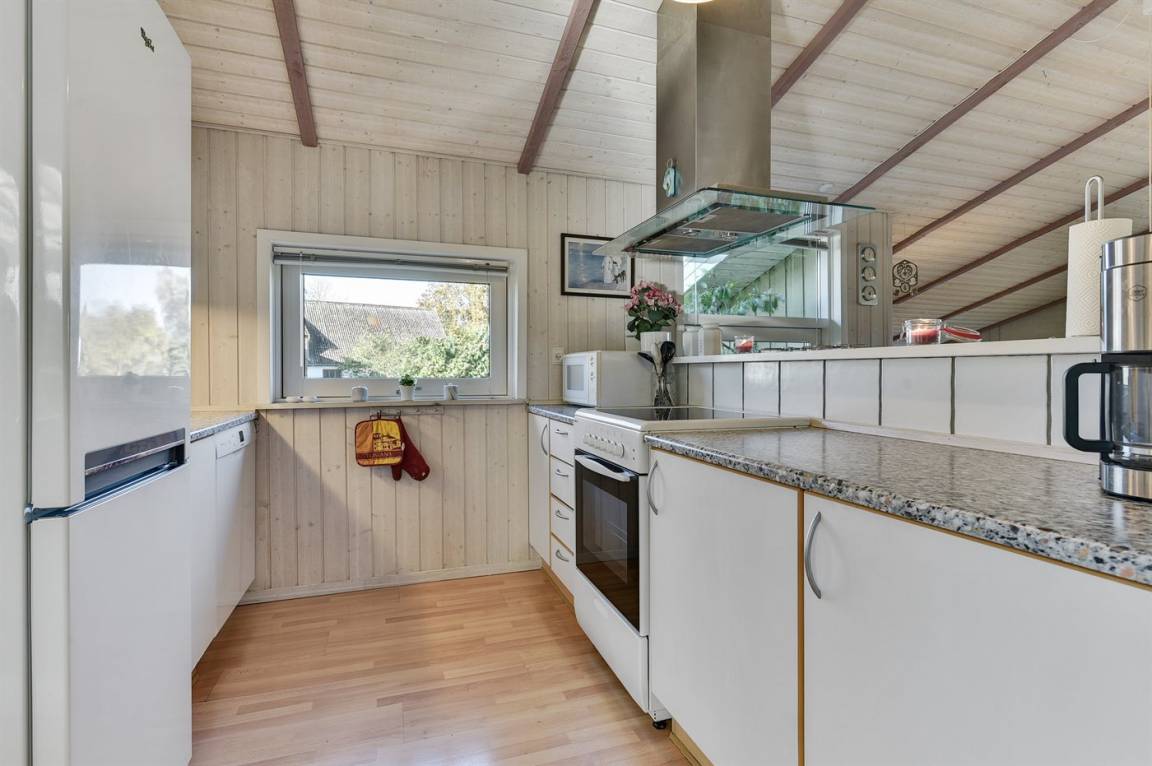 Die Küche ist mit Kühlschrank, Tiefkühlgerät mit einer Kapazität von 100 Liter, Herd mit Ceran-Feld, Backofen, Mikrowelle und Geschirrspülmaschine ausgestattet.