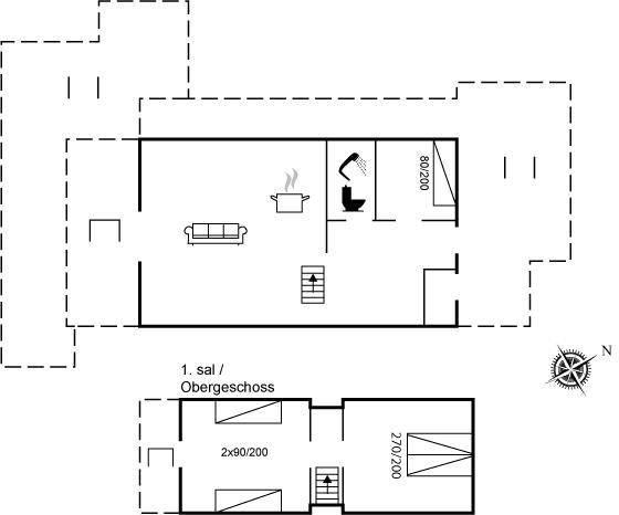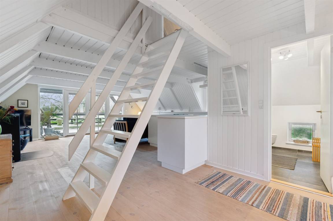 Bitte beachte, dass es insgesamt 7 Schlafplätze gibt – einer davon ist in Juniorgröße, und ein weiterer besteht aus einem sehr breiten Bett mit 3 zusammengestellten Betten. Du hast also mehrere Schlafmöglichkeiten. Das Haus darf jedoch nur mit maximal 5 Personen gebucht werden! Eine steile Treppe führt in das Obergeschoss des Hauses.