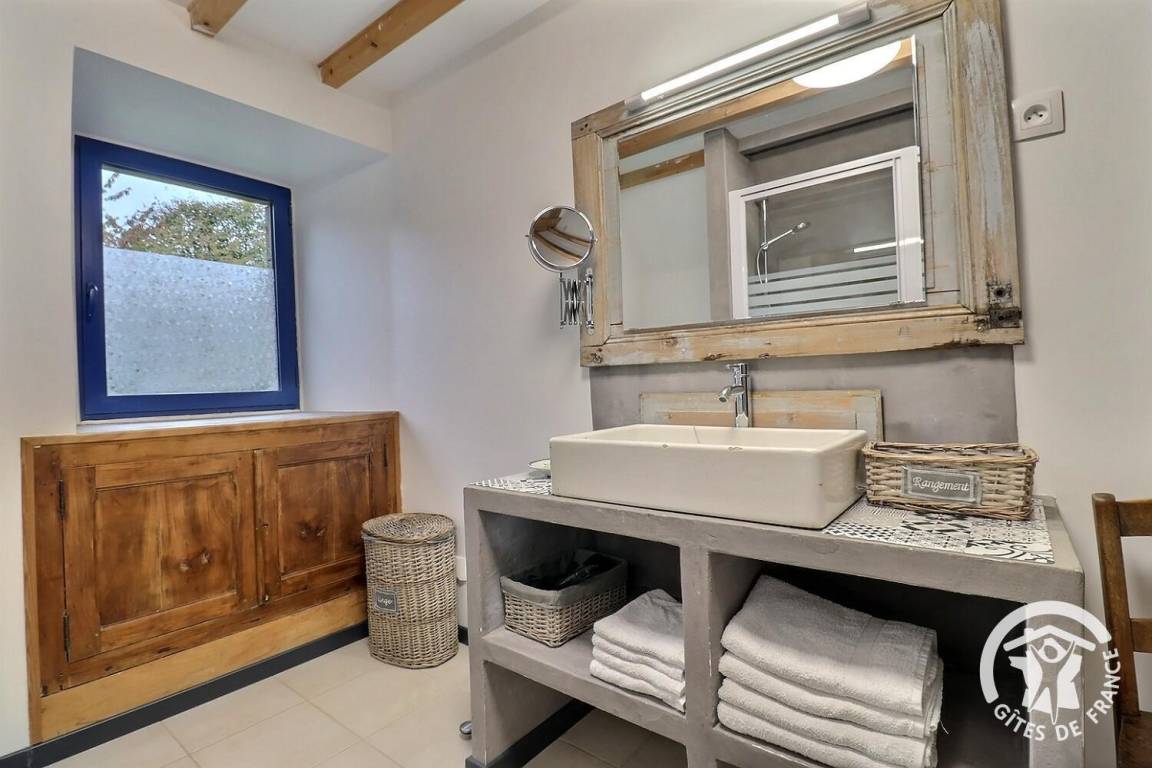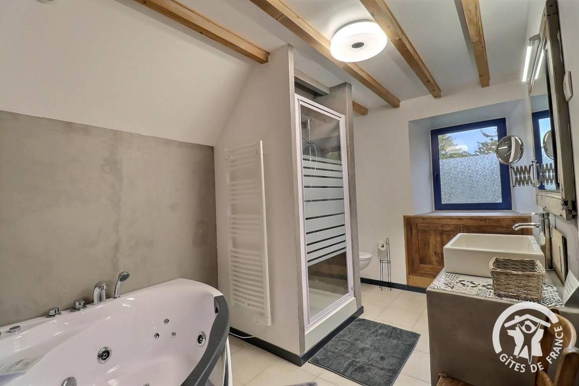 „Situé dans une ferme isolée, au calme, ce gîte a tout pour plaire. Bien agencé, très bien équipé, style et déco sympa, la baignoire jacuzzi est bien appréciable après les belles excursions de la journée. Des petits plus qui montrent que tout est fait pour bien vous accueillir, le bouquet de fleurs fraîches et toutes les petites choses qui n'encombreront pas vos bagages (torchons, papier toilette, savons, produit vaisselle, éponge, café, assaisonnements...). Et bien sûr l’accueil des propriétaires. A recommander sans hésiter.“