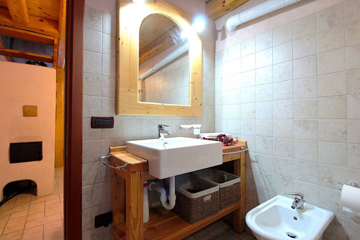 Es gibt eine Heizung, aber nur mit Holzöfen; auch im Sommer wird das Warmwasser mit dem Holzwasserheizer erwärmt.