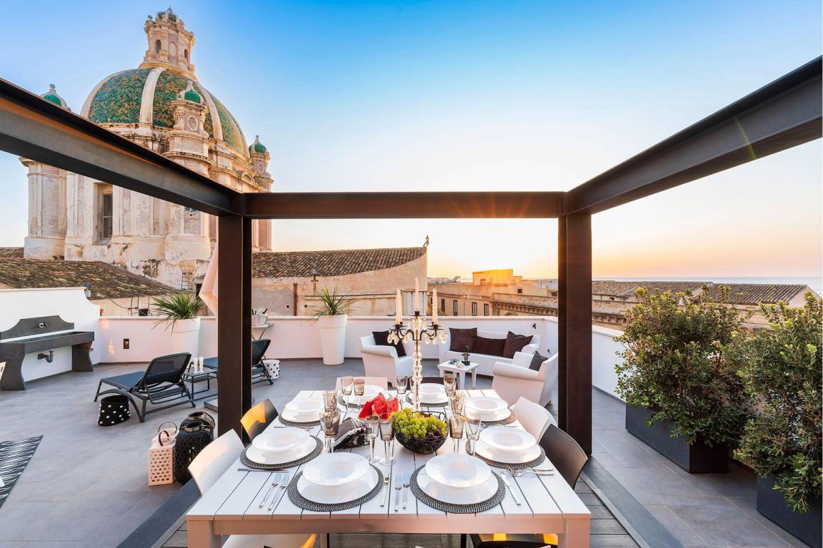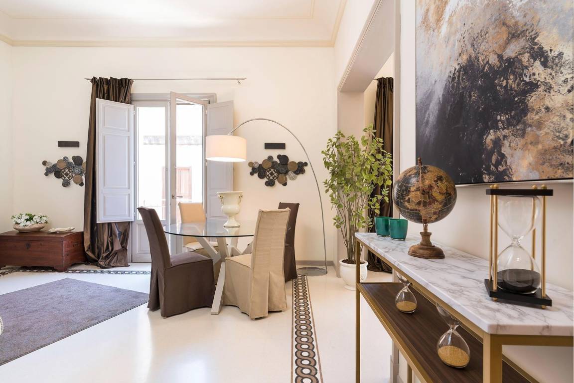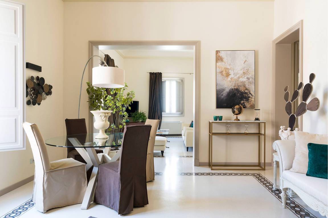 Dimora Simona ist ein Ferienhaus in Trapani mit einer Gesamtfläche von 3 Schlafzimmern und 3 Bädern für maximal 6 Gäste. Das Erdgeschoss und die oberen Ebenen sind durchdacht angeordnet und bieten eine harmonische Aufteilung zwischen Wohn-, Schlaf- und Sanitärbereichen.