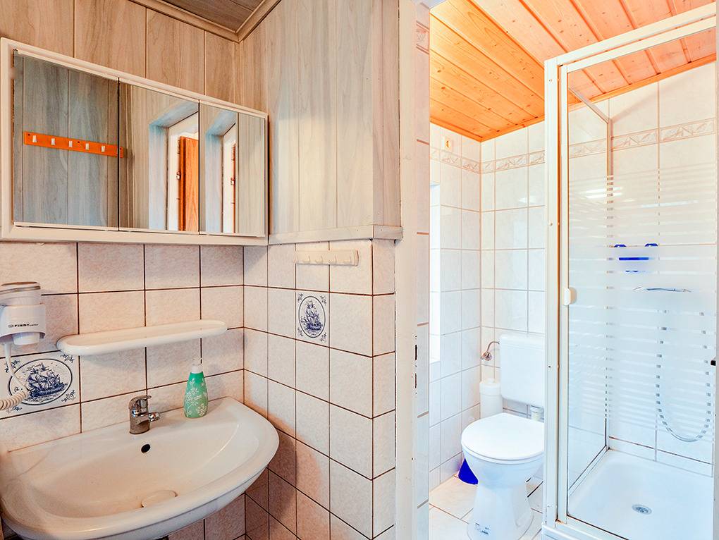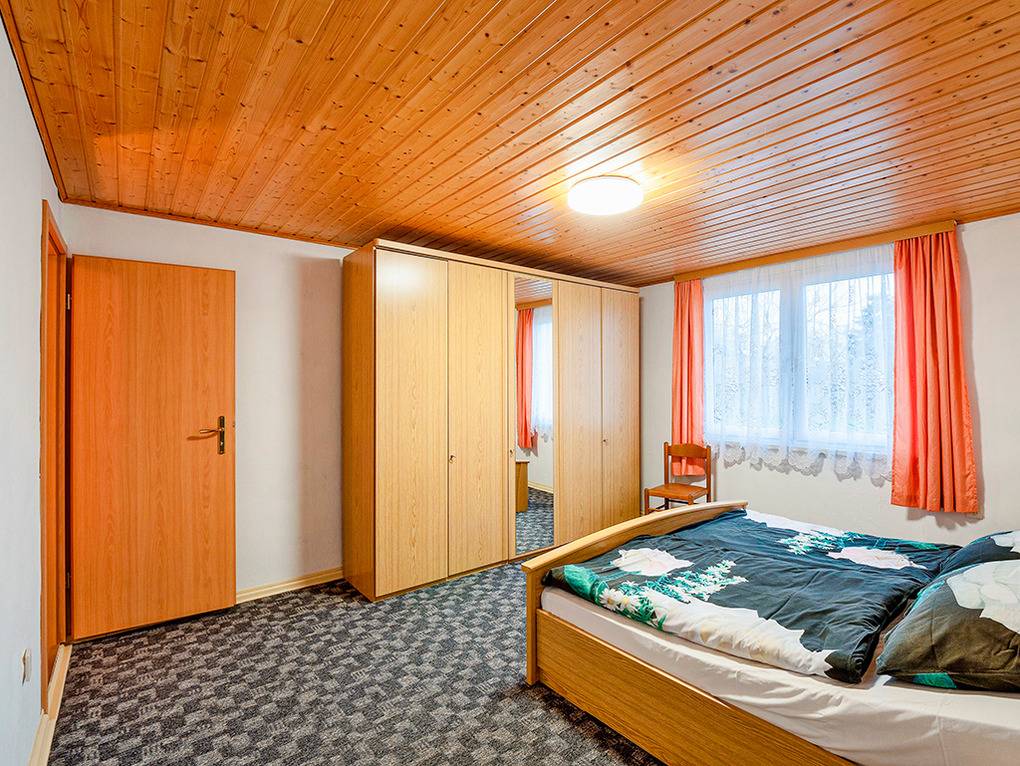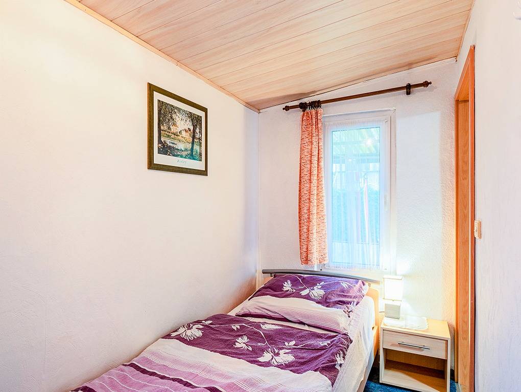 D 22.49 Ferienhaus 2-3 Pers.: 3-Zimmerbungalow mit 59 qm Wohnfläche. Gemütlicher Wohnraum mit Couchgarnitur, Sat-TV, Radio, Esstisch. Kleine Küche mit Küchenblock (2 E-Platten). Doppelzimmer, Einzelzimmer. Bad/ WC.