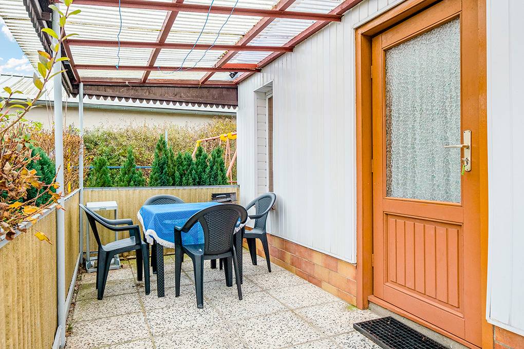 Haus: Freundliche Bungalows auf umzäuntem Grundstück. Gepflegte, gemütliche Einrichtung. Kostenloser Internet-Zugang über W-Lan. E-Heizung. Gemeinschaftlicher Garten mit Kinderspielgeräten, Spielwiese. 2 Pkw-Stellplätze/Haus.