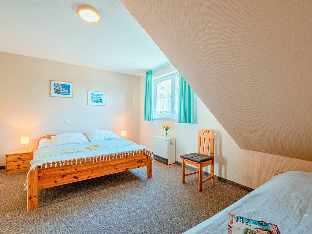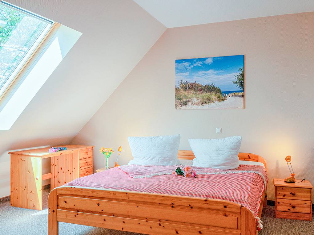 D 22.36C Ferienhaus 3-6 Pers.: 3-Zimmerhaushälfte, 80 qm Wohnfläche über 2 Etagen. Großzügiger Wohnraum mit gemütlicher Sitzgruppe, Sat-TV, Radio/CD, Esstisch, Einbauküche (Backofen, Mikrowelle, Spülmaschine) . Bad/WC. Dachgeschoss mit leichten Schrägen: Zwei 3-Bettzimmer mit Doppelbett, Einzelbett. Weiteres Bad/WC.