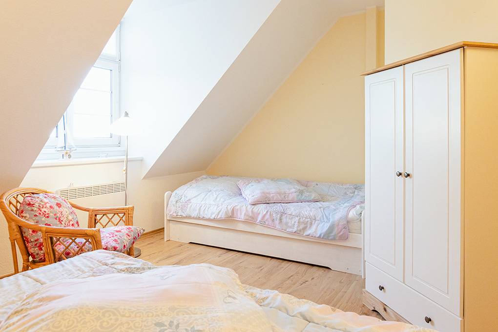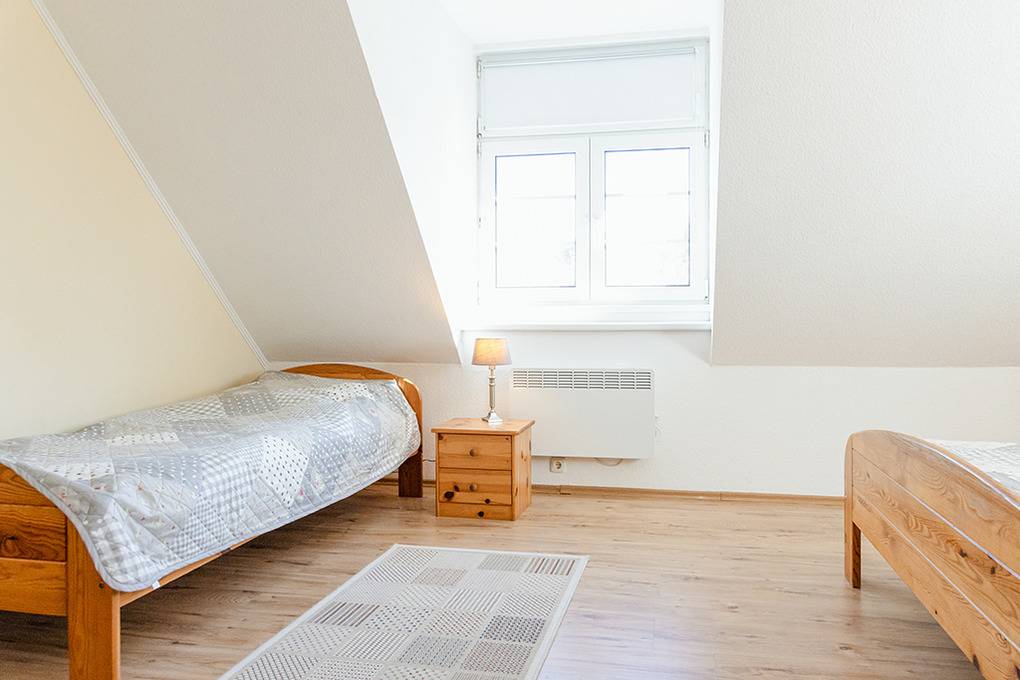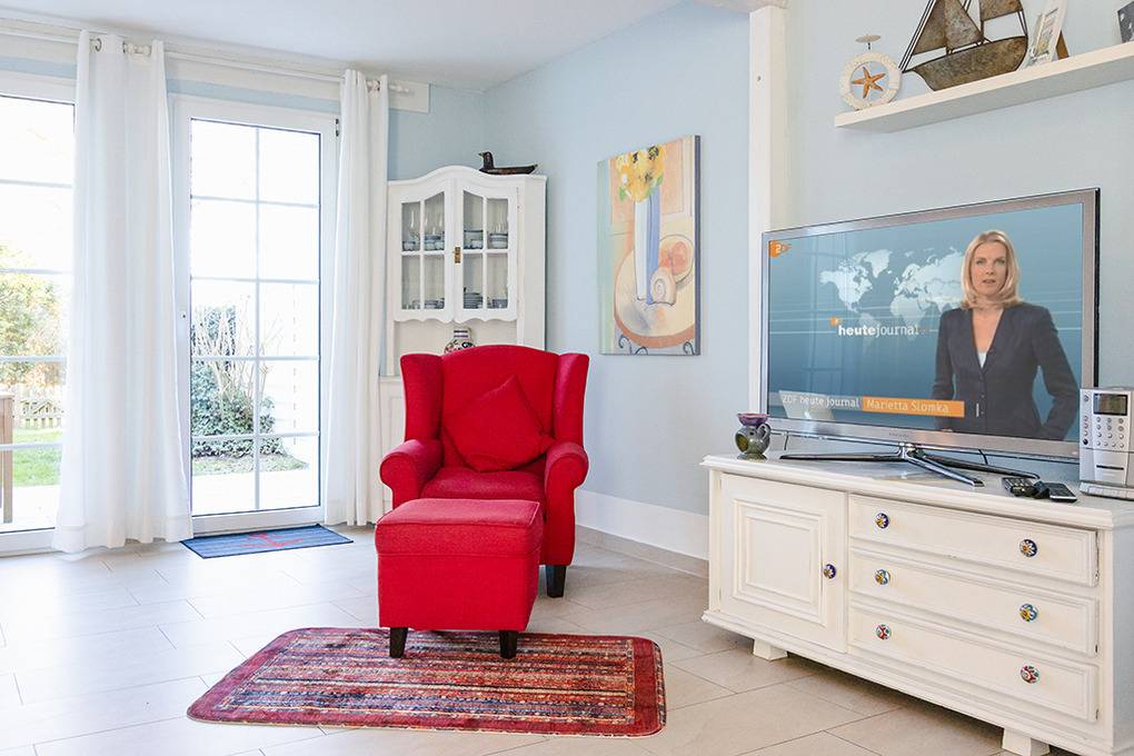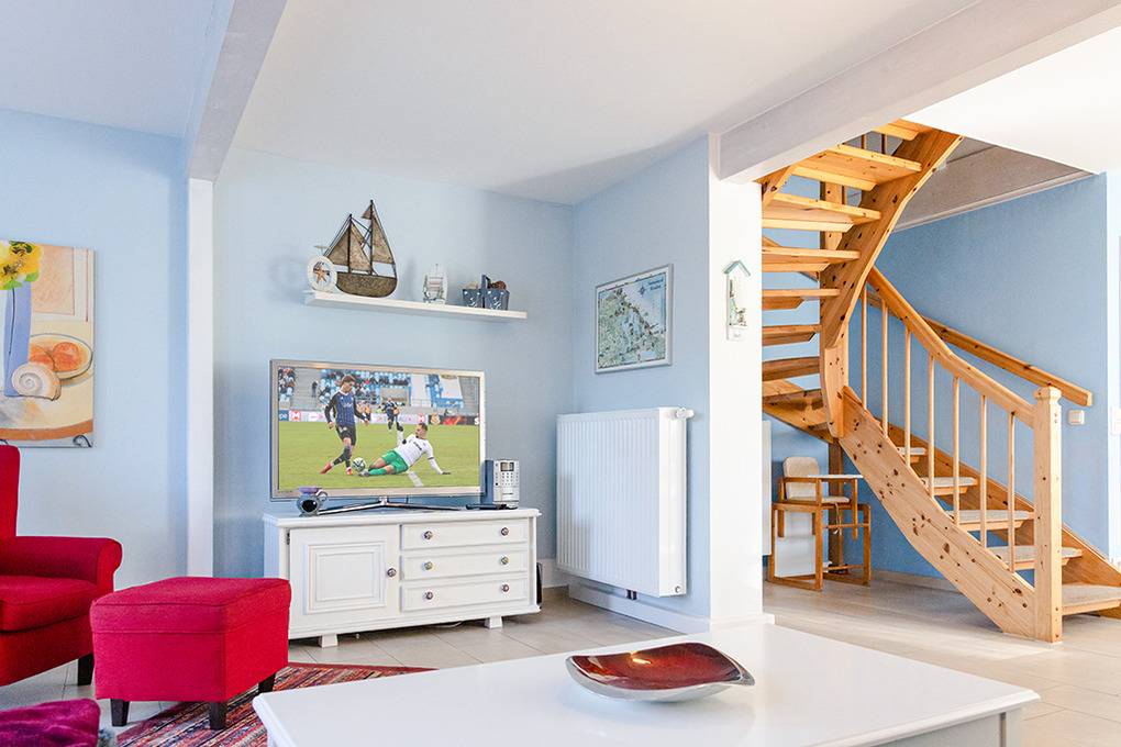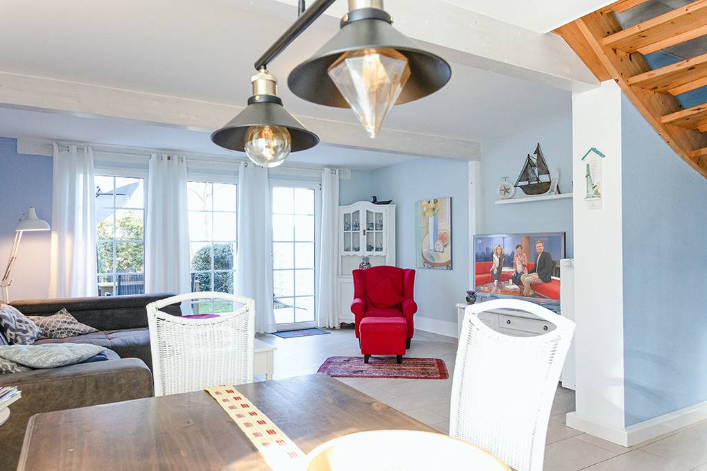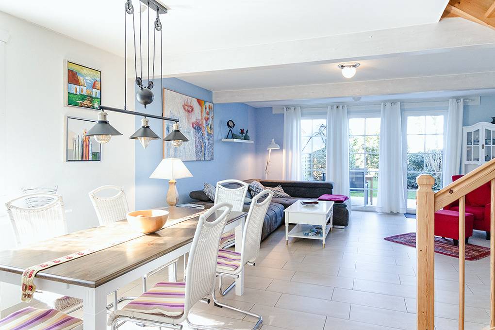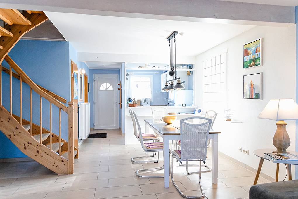 D 22.38 Haushälften 3-6 Pers.: 3-Zimmerhaus, 95 qm Wohnfläche über 2 Etagen. Gemütlicher Wohnraum mit Sitzgruppe, Kabel-TV, Radio/CD, Esstisch, Einbauküche (Backofen, Spülmaschine). Bad/WC. 1. Etage: Zwei geräumige 3-Bettzimmer mit Doppelbett, Einzelbett. Bad/WC.