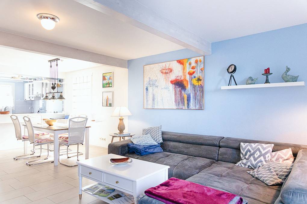Nebenkosten: Endreinigung 120 €. Strom, Gas, Wasser nach Verbrauch. Kurtaxe. Bettwäsche, Handtücher leihbar 20 €/Pers. Zusätzliche Leistungen: Kostenloser Internetzugang über W-Lan. 1 Pkw-Stellplatz im Preis inklusive. Kinder Babybett/Hochstuhl zusätzlich zur maximalen Personenzahl, jeweils ohne Berechnung. Haustier 9 €/Tag (Anmeldung) (max. 2 Hunde).Räume & Aufteilung