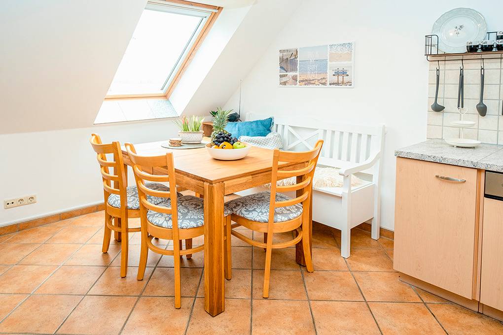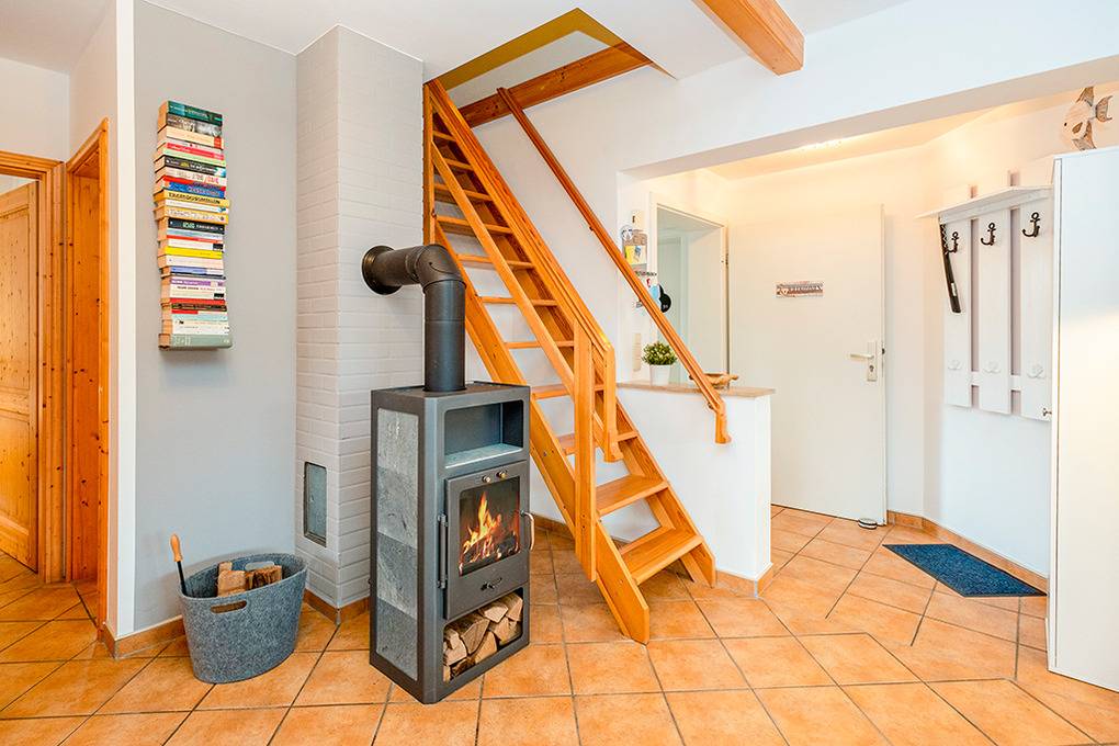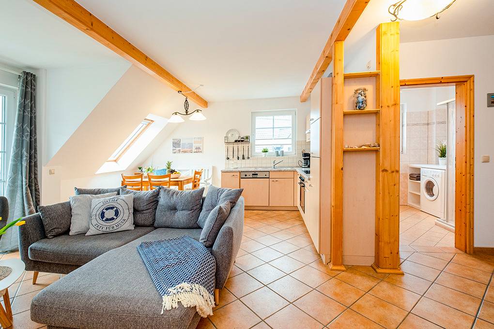 D 22.35C Wohnung 2-4 Pers.: 3-Zimmerwohnung mit 55 qm Wohnfläche, 1. Etage. Großzügiger Wohnraum mit Sitzgruppe, Esstisch, Einbauküche (Backofen, Mikrowelle, Spülmaschine). Doppelzimmer. 2-Bettzimmer mit Etagenbett. Bad/WC. Kaminofen, Fußbodenheizung und Waschmaschine, kostenloser Internetzugang über W-Lan.