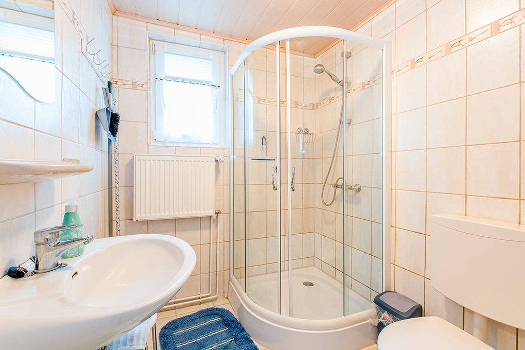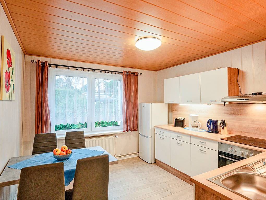 Haus: Freundliche Bungalows auf umzäuntem Grundstück. Gepflegte, gemütliche Einrichtung. Kostenloser Internet-Zugang über W-Lan. E-Heizung. Gemeinschaftlicher Garten mit Kinderspielgeräten, Spielwiese. 2 Pkw-Stellplätze/Haus.