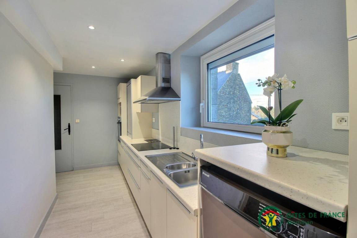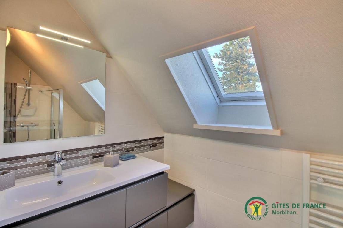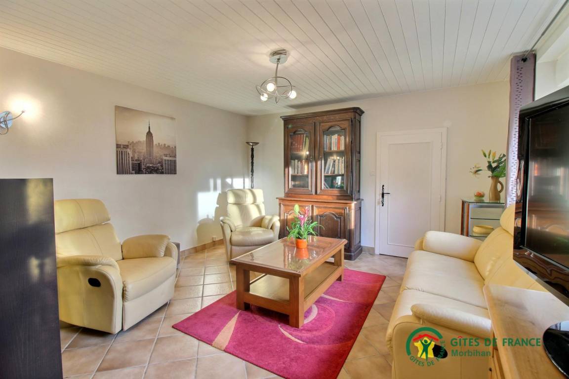 - Im Erdgeschoss: ein Wohnzimmer mit Lounge und Wohnzimmer (der Kamin ist dekorativ), eine Küche, eine Toilette und eine Waschküche (mit Dusche für die Rückkehr vom Strand an sonnigen Tagen)