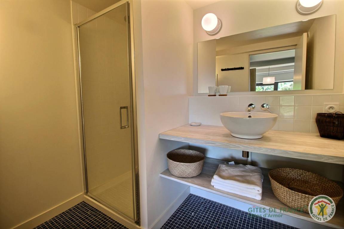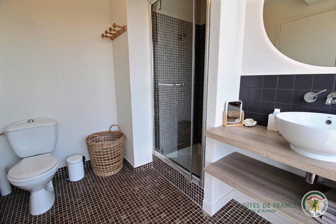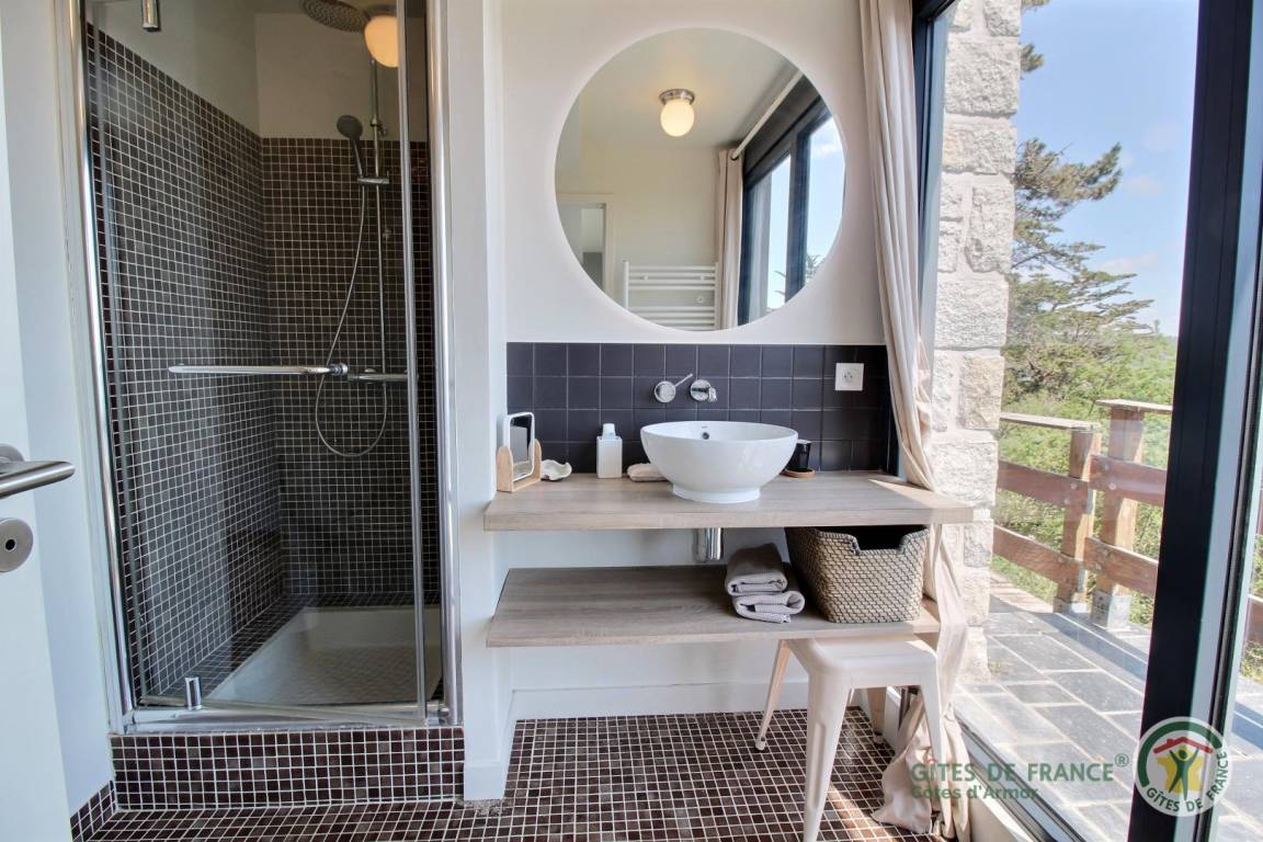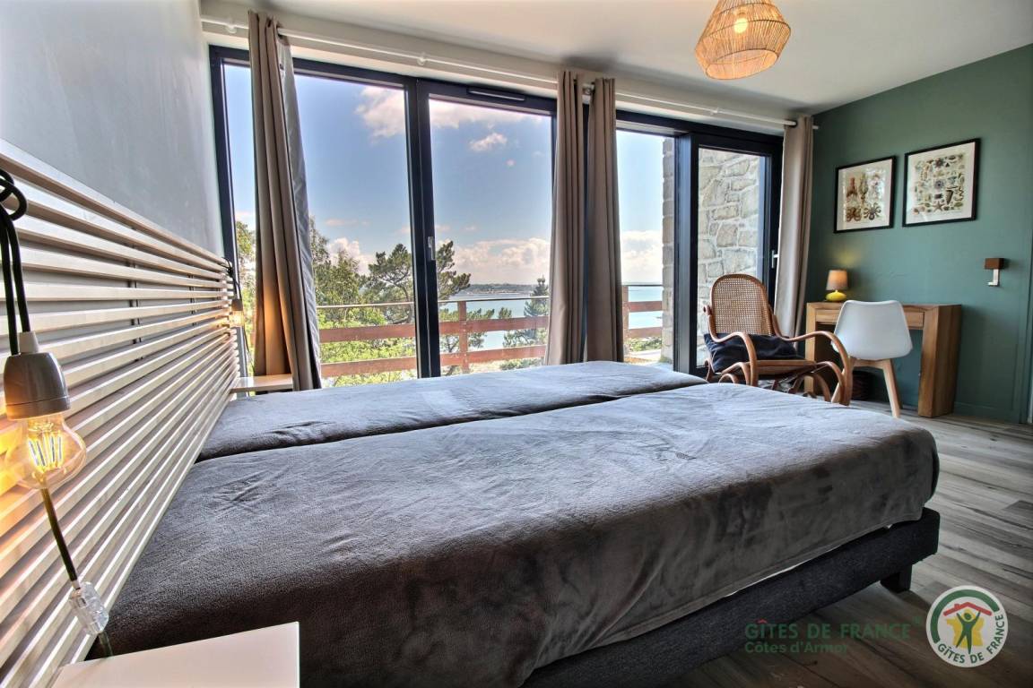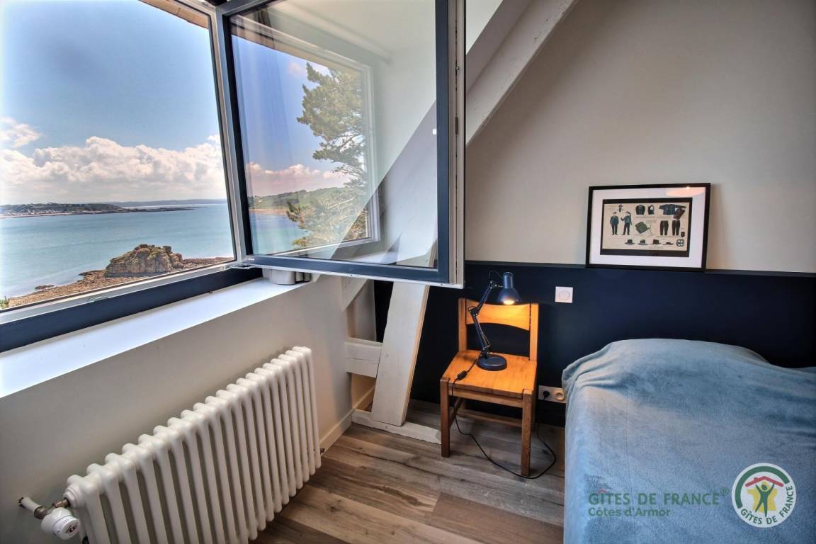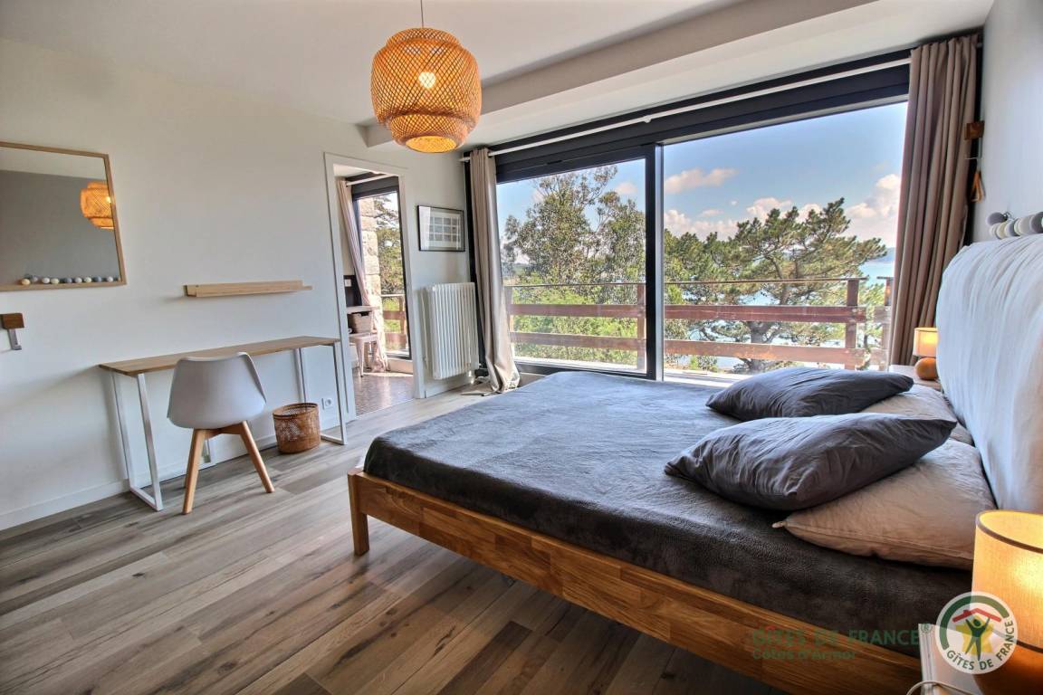 Your holiday rental includes, on the ground floor: an entrance hall with a closet, a large living room with a fireplace and a fully equipped kitchen opening directly onto a furnished terrace with panoramic sea views. A few steps down lead to the garden level, which comprises a lounge equipped with a home cinema system (projector), three bedrooms, each with its own private bathroom: a west-facing bedroom with two single beds (80x200) that can be joined to make a double bed (160x200) and an en-suite shower room; an east-facing bedroom with two single beds (80x200cm) that can be joined together and an en-suite shower room; and a large south-facing bedroom overlooking the sea with a double bed (160x200) and an en-suite shower room (shower and toilet). There is also a laundry area and a separate toilet. Upstairs: 1 bedroom (1 double bed 160x200) and 1 dormitory bedroom (3 single beds 90x200), bathroom (bathtub) and separate toilet. 70 m² terrace, 6000 m² property.
