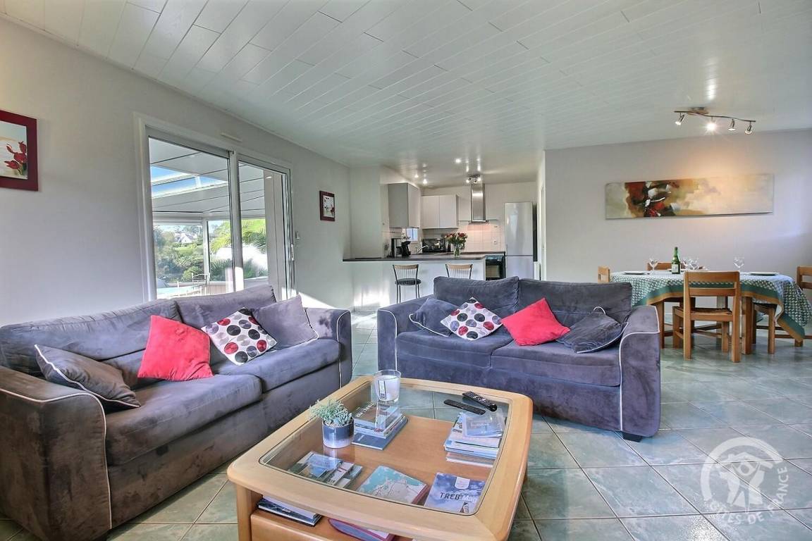 „Un accueil chaleureux pour notre arrivée, avec un cadeau de bienvenue (jus de fruits délicieux très apprécié par mes petits enfants). Merci à vous !Un agréable séjour d'une semaine, (trop courte !), dans une magnifique maison spacieuse, lumineuse, très confortable et d'une propreté irréprochable. Entourée d'un joli jardin paysager, cette location est un lieu de villégiature privilégiée dans un écrin de verdure. La Bretagne est belle ! Il faut la découvrir ! Semaine bien ensoleillée sous un ciel azur avec une mer bleue, parfois turquoise...“