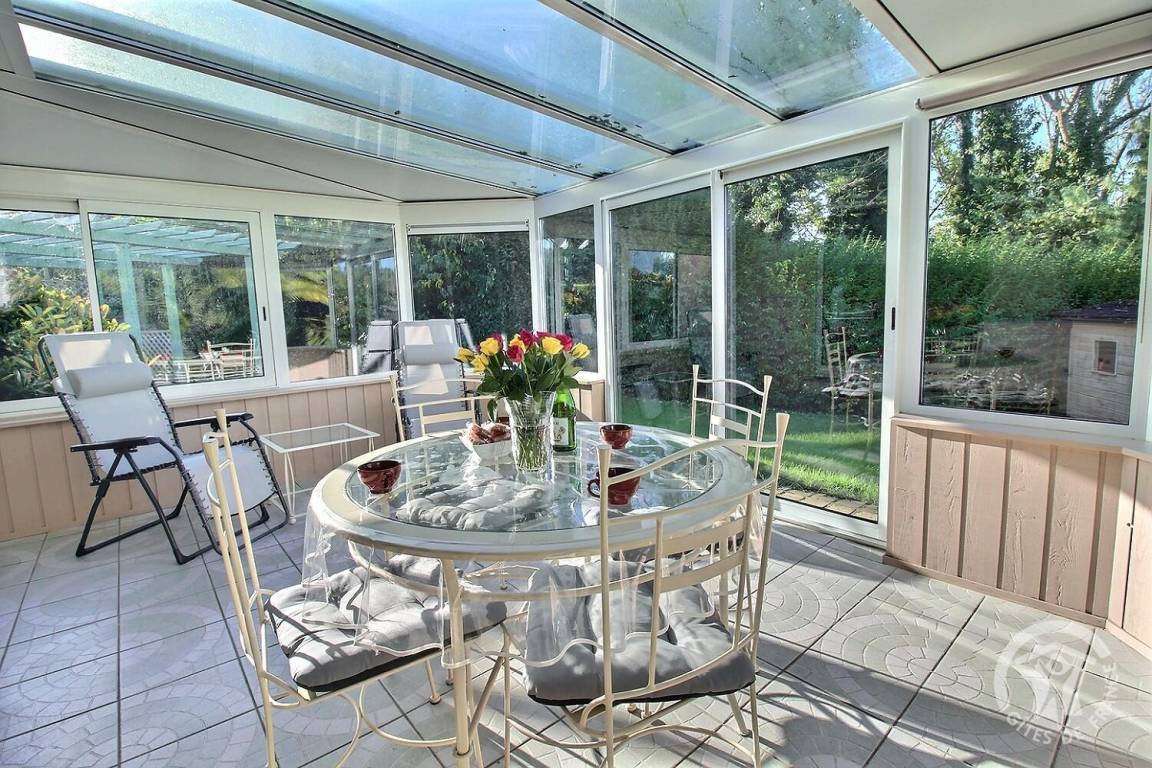 „Séjour parfait. Gîte impeccable où rien ne manque. La spacieuse véranda est un vrai plus à cette époque (mi-septembre)“