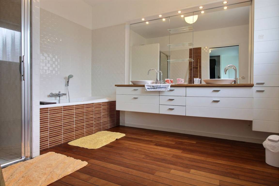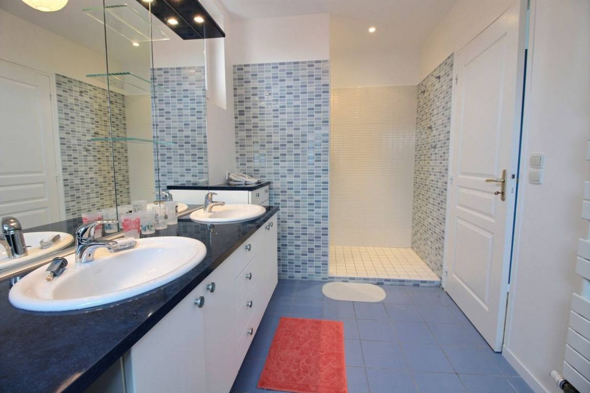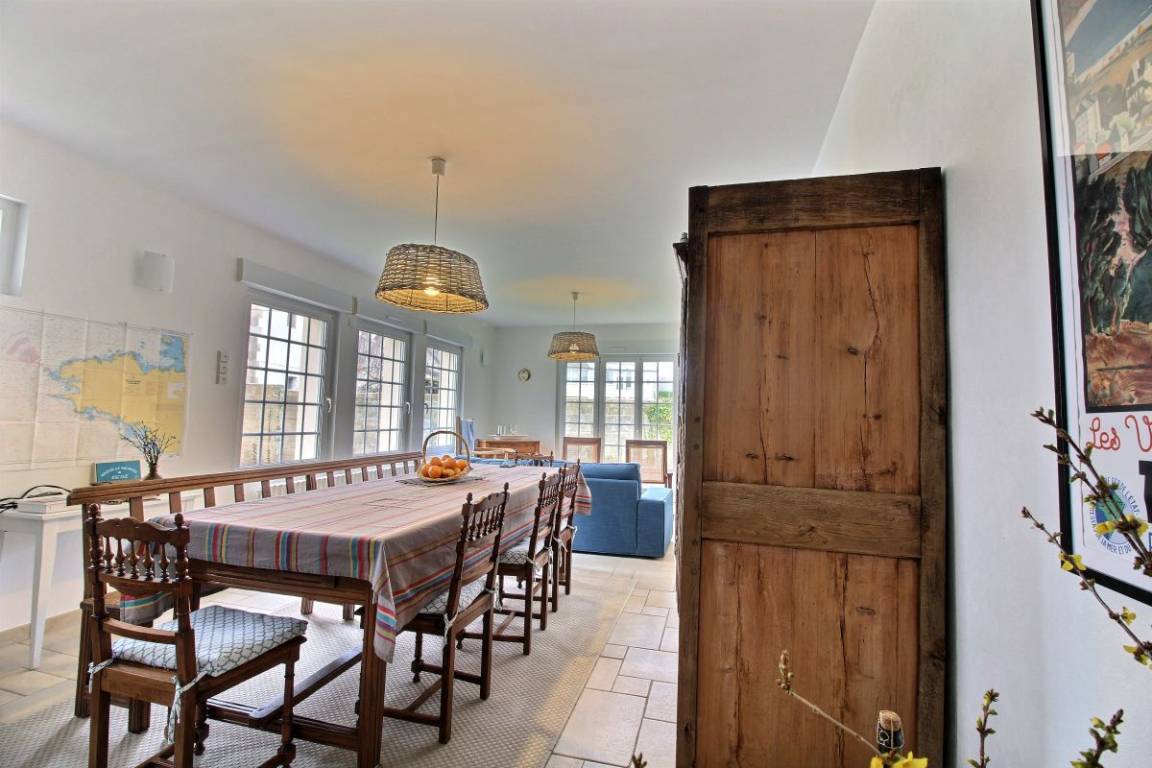 Ihre Ferienwohnung umfasst im Erdgeschoss ein Wohnzimmer, ein Wohnzimmer mit regulierbarem Kamin und einer kleinen Küche, ein Elternschlafzimmer mit einem 160x200 Bett, Badezimmer mit Dusche und angrenzender Badewanne, ein großes Schlaf-/Esszimmer mit einem Spielzimmer 90x190 Bett und ein 130x190 Bett, separates WC mit Waschbecken. Obergeschoss: 4 Schlafzimmer, darunter zwei Doppelzimmer mit einem 160x200-Bett, ein Doppelzimmer mit einem 140x190-Bett und ein weiteres Doppelzimmer mit einem 90x190-Bett und einem 130x190-Bett, ein Badezimmer mit Dusche, WC unabhängig. Genießen Sie die Natur dank einer 100 m² großen Terrasse und einem 600 m² großen Garten.