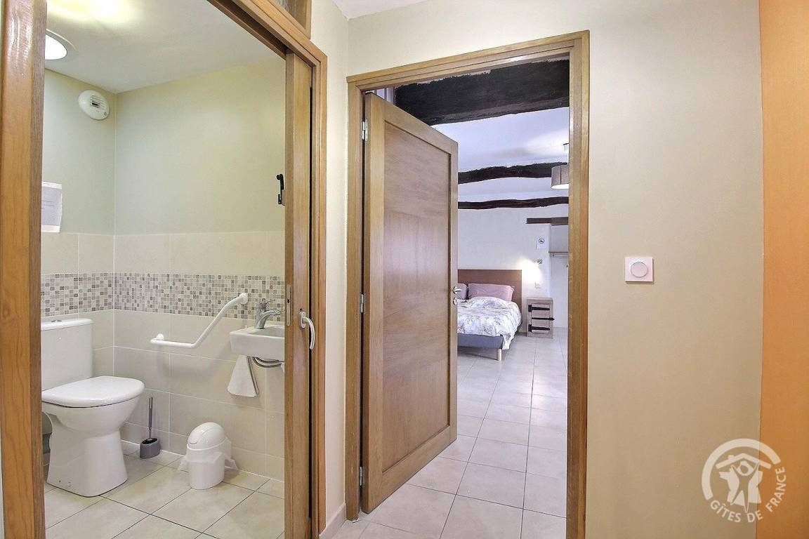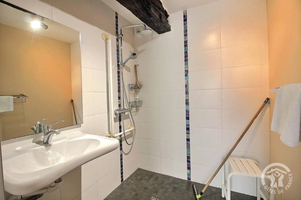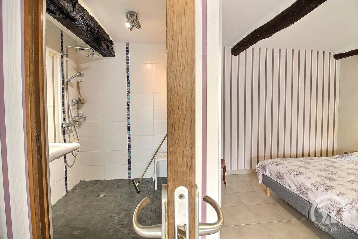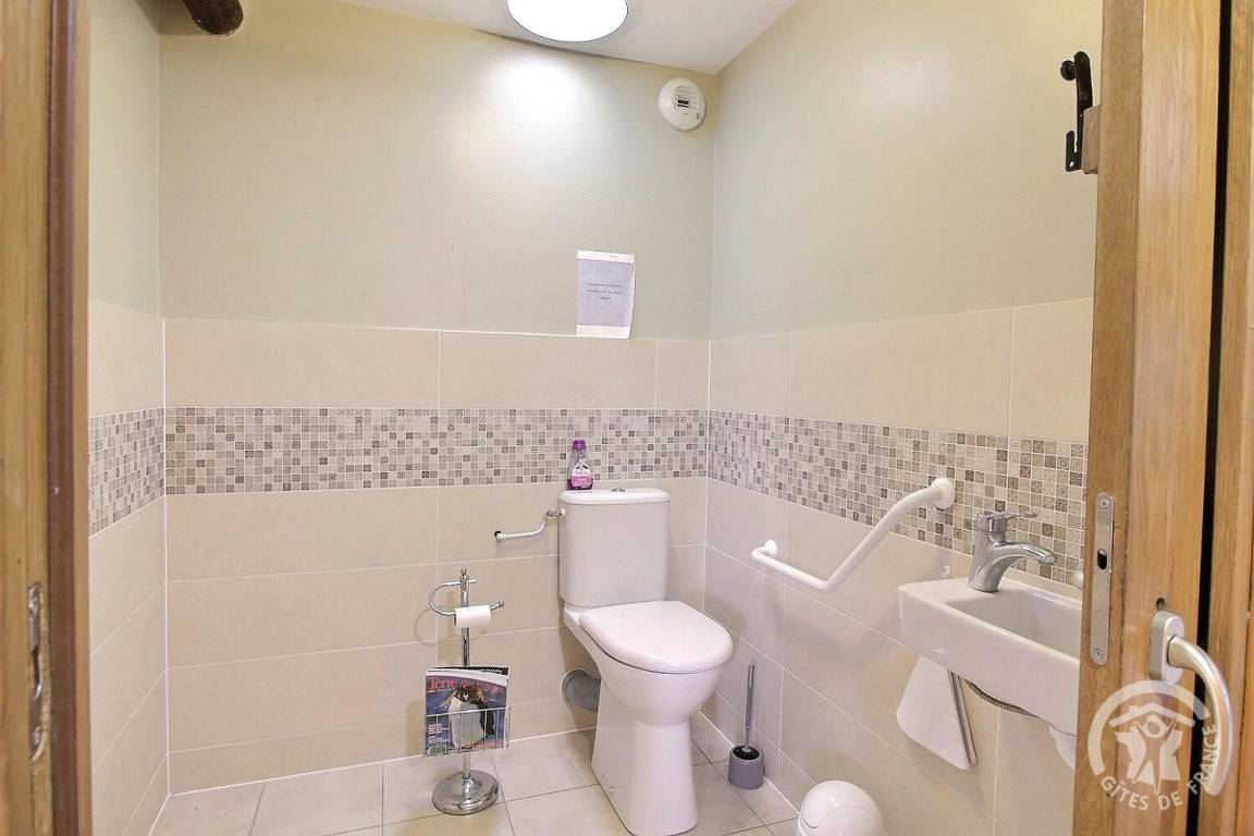 - Erdgeschoss komplett für Behinderte zugänglich: großes Wohnzimmer (Holzofen, 1. Korb gratis) mit Küchenbereich, 1 Schlafzimmer (1 160x200-Bett und 1 90x190-Bett) mit eigenem Badezimmer (ebenerdige Dusche), angepasstes WC mit Handwaschbecken , großer Waschraum (LL, SL und Abstellraum).