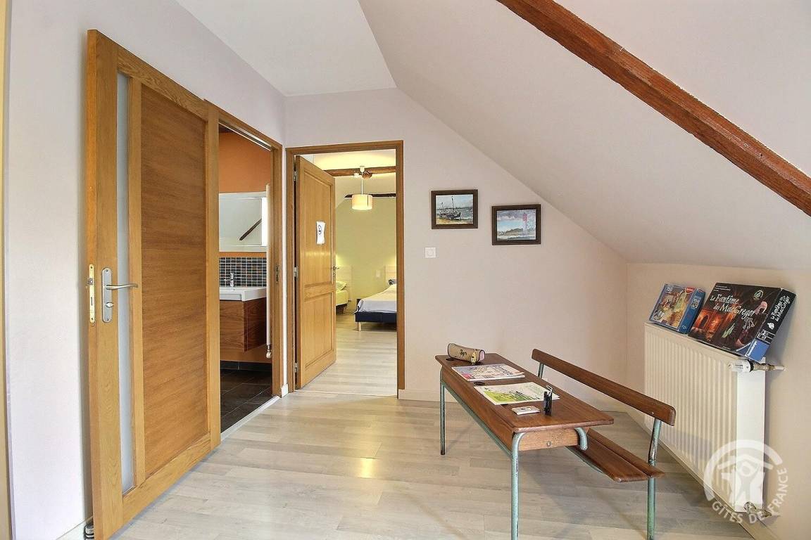- Etage: 1 Schlafzimmer (1 160x200-Bett), 1 Schlafzimmer (3 90x190-Betten), ein Badezimmer mit Badewanne, WC, Entspannungsbereich mit Spielen und Lesen.