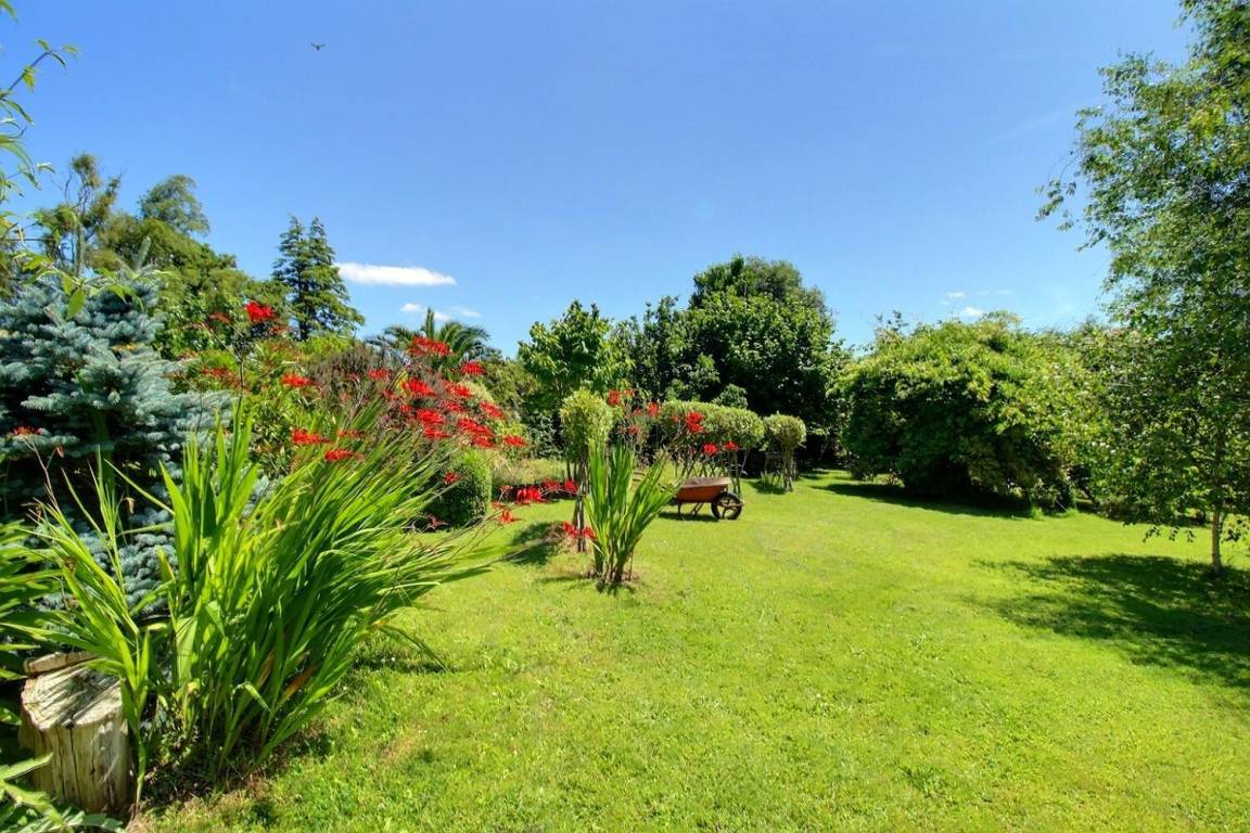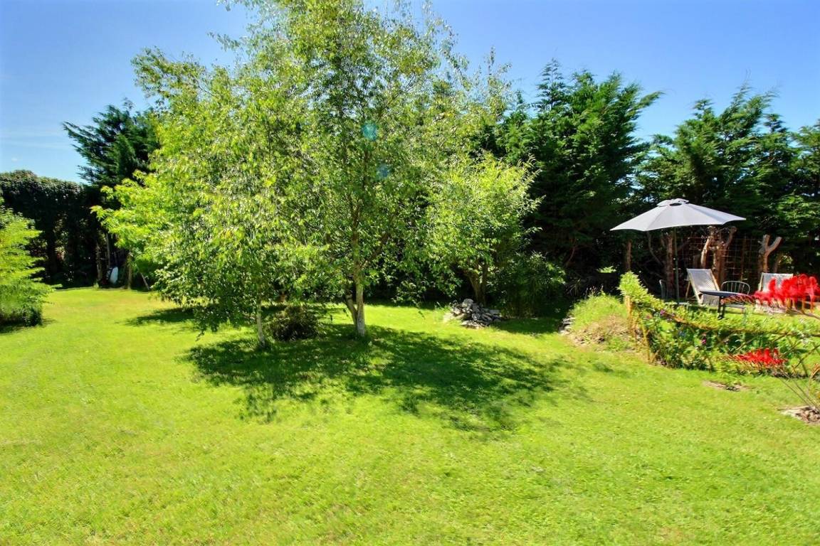 Ein 20 m² großer Ruhebereich mit Rasenfläche und ein 1600 m² großer angelegter Garten, der gemeinsam mit den auf dem Grundstück wohnenden Eigentümern genutzt wird, befinden sich am Eingang des Grundstücks.