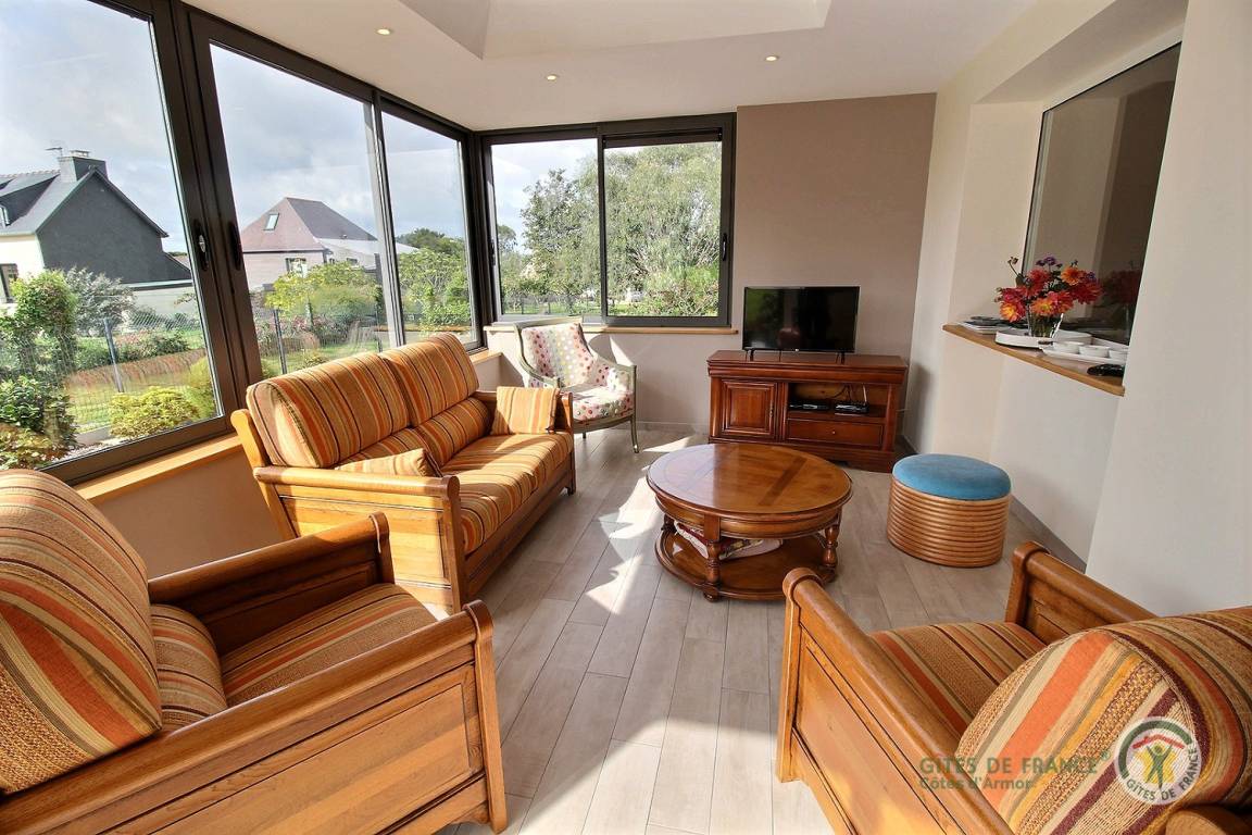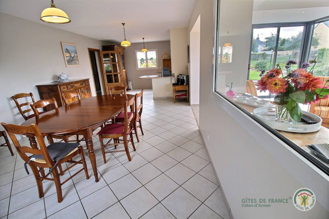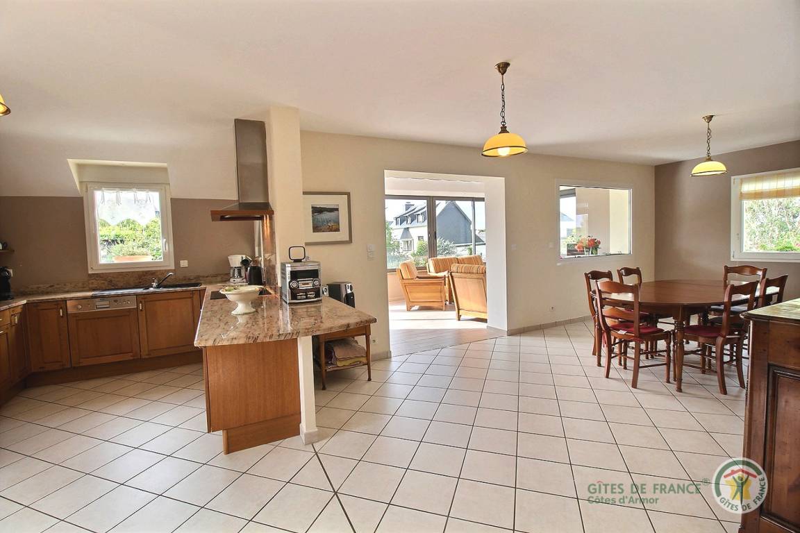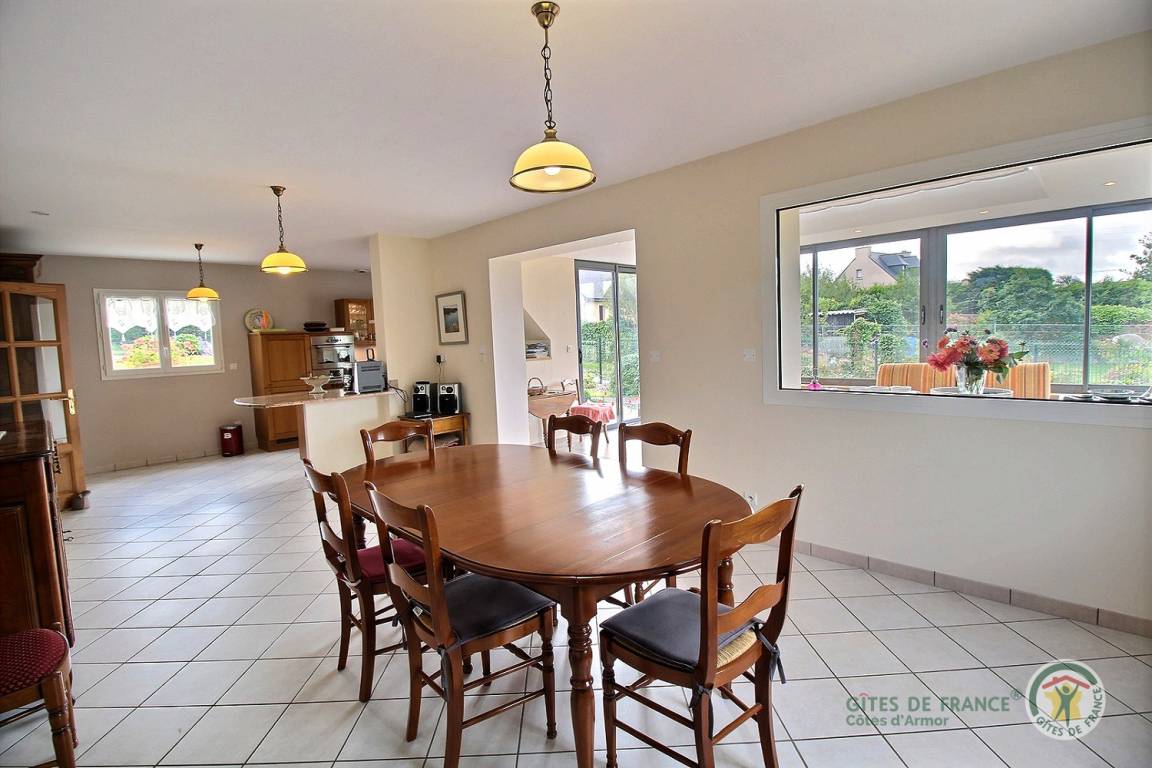 „Le gîte est tout bonnement superbe, très spacieux, confortable et situé dans une zone très calme. Il est entouré d'un très grand et beau jardin bien entretenuTout est prévu pour qu'il ne manque de rien et faciliter la vie au quotidien. Mention spéciale pour le système aspirateur génial. La pièce de vie (la véranda) est très lumineuse, elle permet de contempler la mer au loinLe premier coup de coeur lorsque l'on est installé est d'emprunter le chemin de la Montagne pour arriver à la plage de Kirio....un enchantementA pied ou à vélo, le petit port de Locquemeau est très charmant égalementLe gîte est très bien situé pour rayonner dans cette superbe régionJe termine par un autre coup coeur: Celui de Mme Carluer. Son accueil, sa gentillesse, sa disponibilité dans le parfait esprit Gîtes de France mais aussi son histoire et celle de son gîte..... touchantNous reviendrons c'est plus qu'une certitudeMerci pour tout“