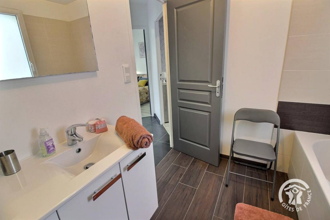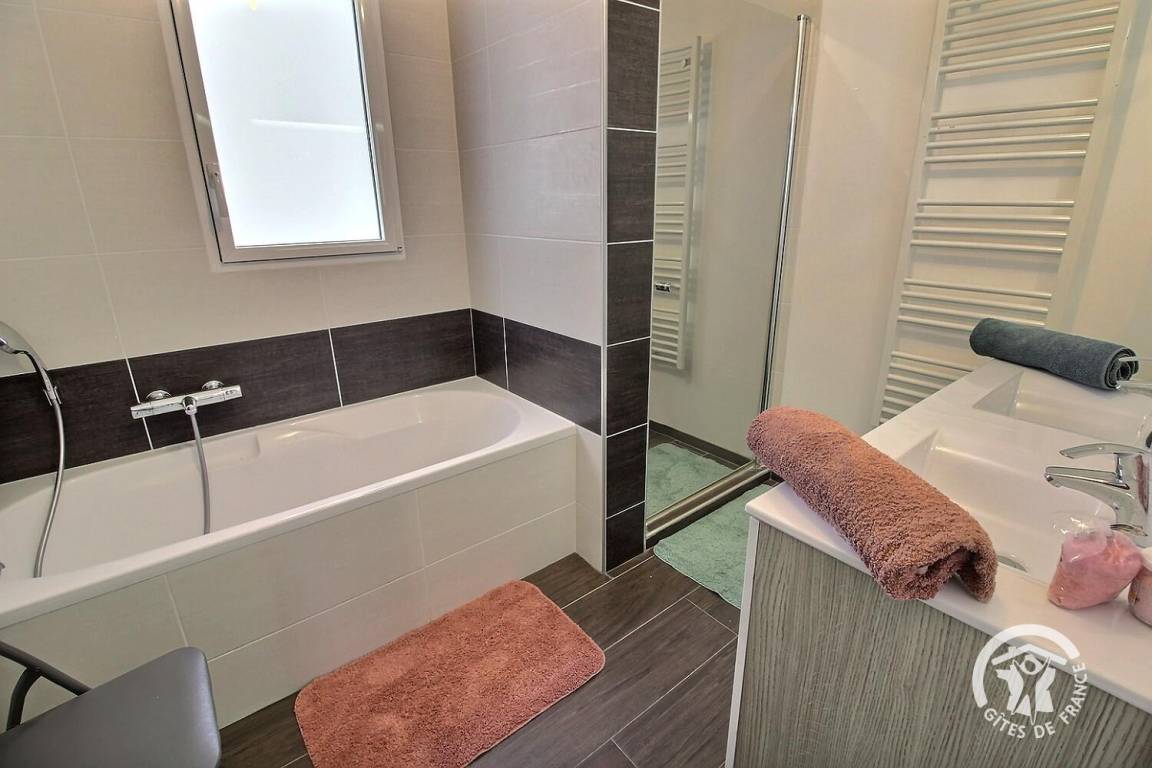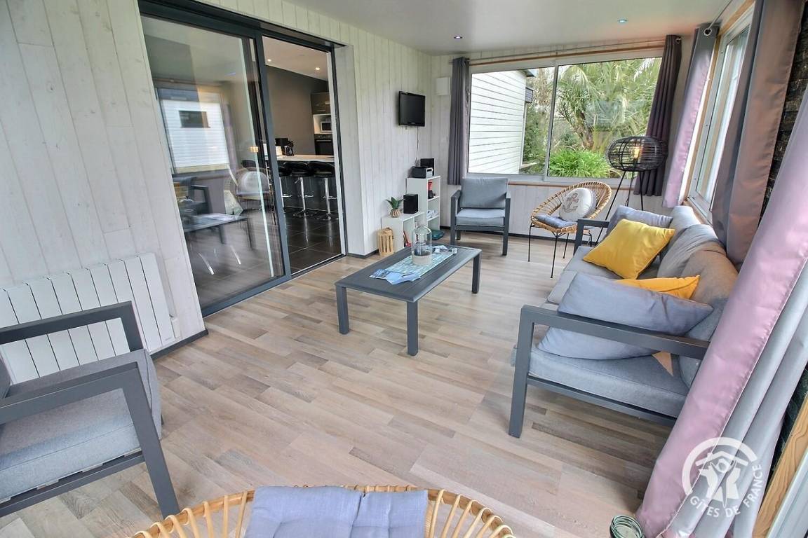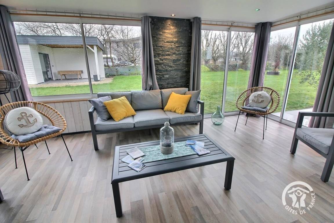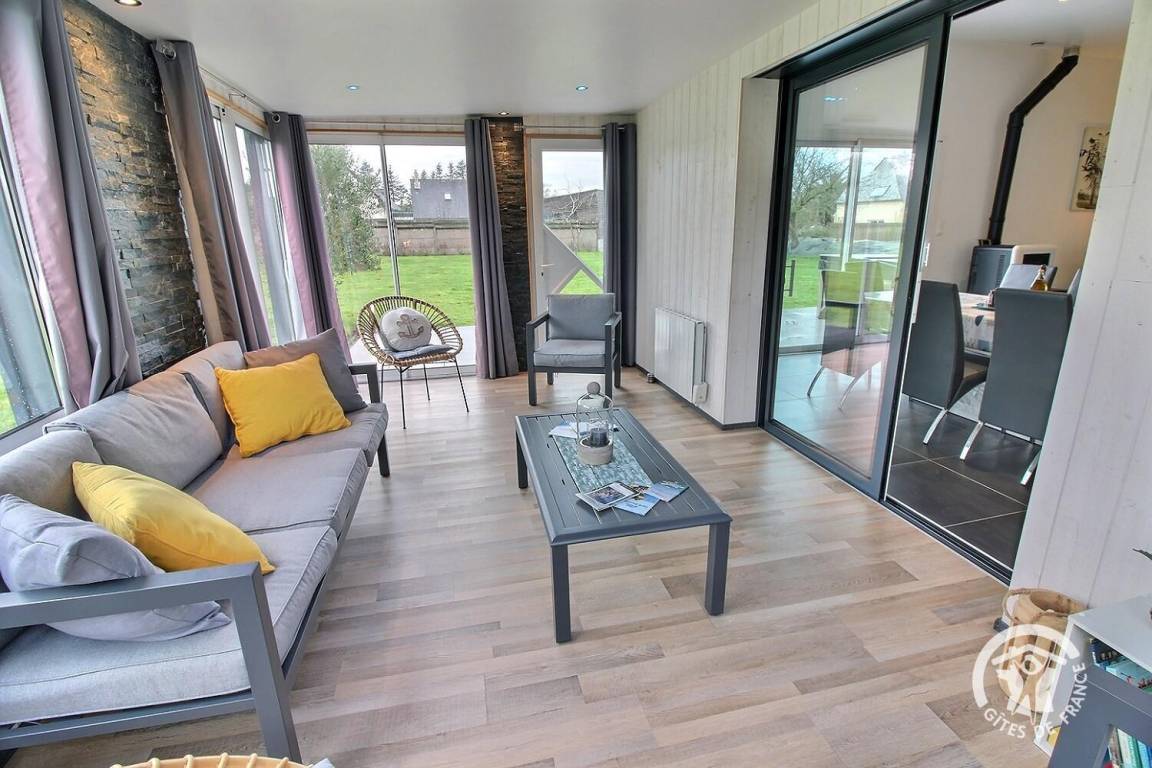Sie werden die Veranda und die Entspannungslounge mit Blick auf den Garten zu schätzen wissen. Die mit Gartenmöbeln ausgestattete Terrasse lädt zum Essen im Freien ein und die große Liegewiese wird Ihre Kinder begeistern. Das kleine Extra? Ein idealer Whirlpool zum Entspannen nach einem Tag voller Wandern oder Besichtigungen.