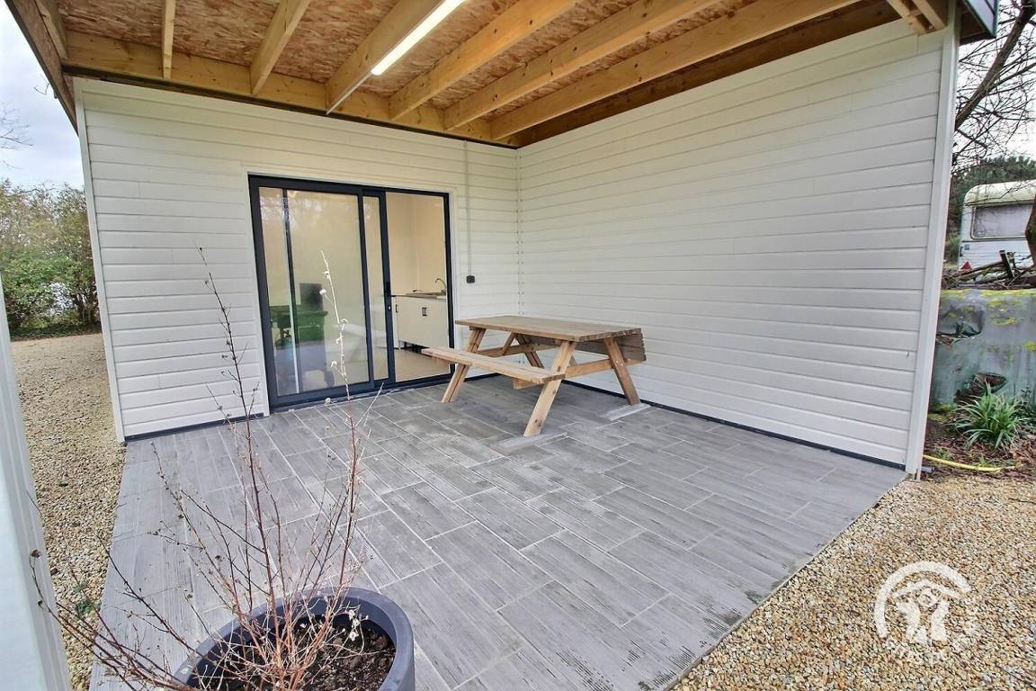 Auf dem Grundstück befindet sich eine Hinterküche mit überdachter Terrasse und einem Picknicktisch.