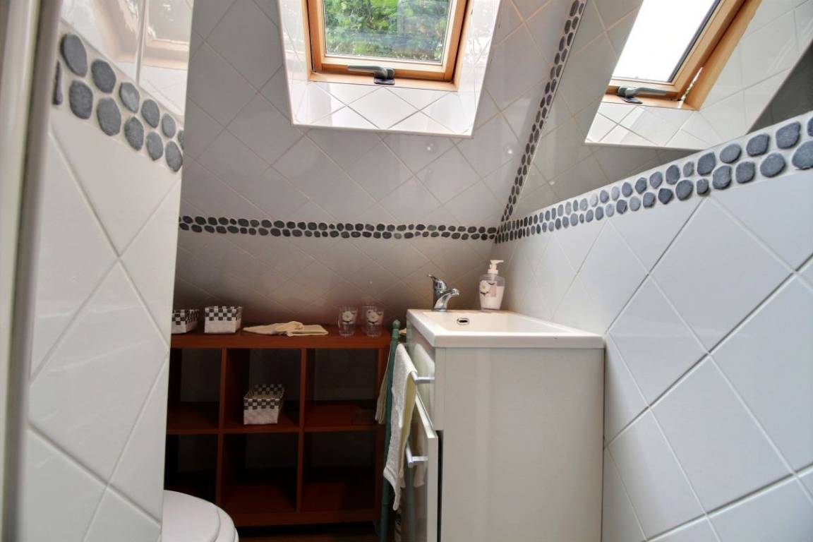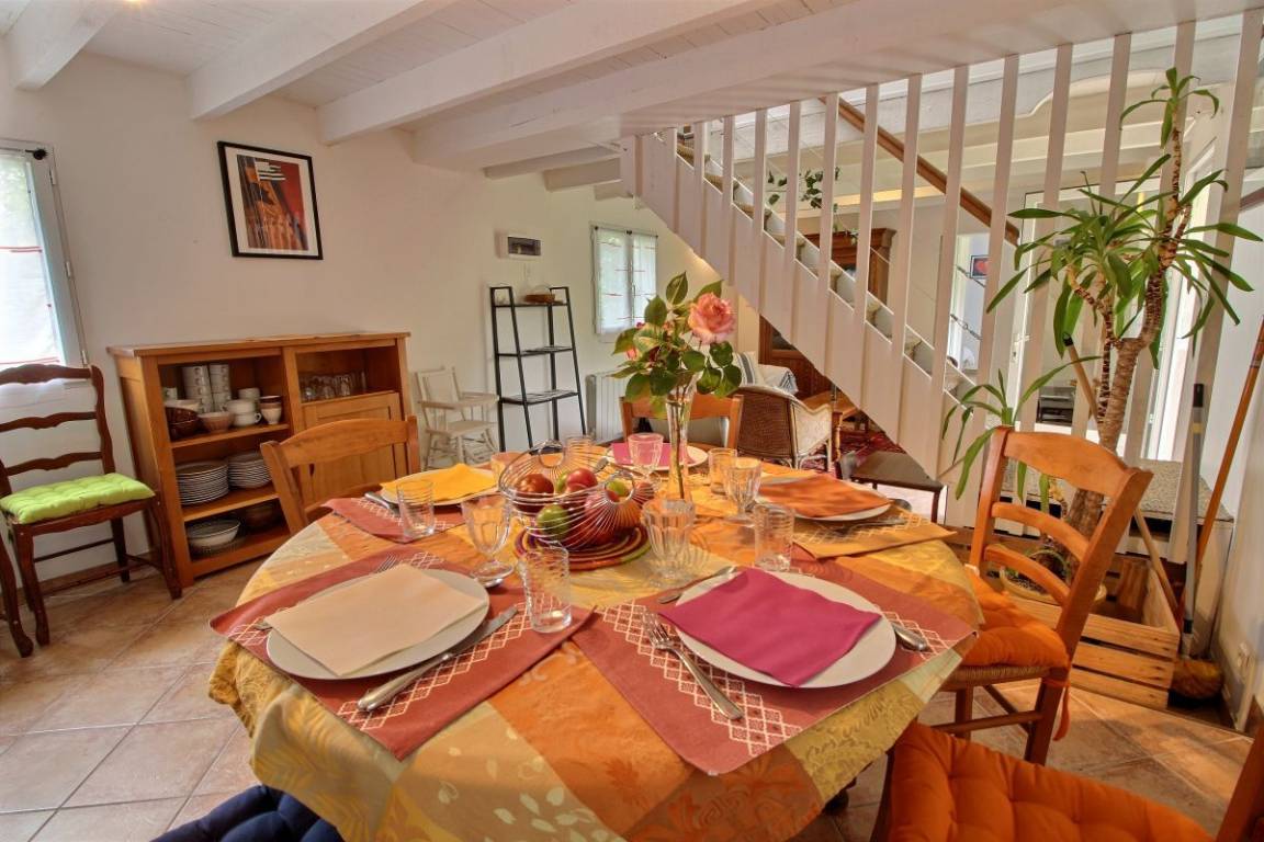 Ihre Ferienwohnung umfasst im Erdgeschoss: Einbauküche und Essbereich (über eine Stufe erreichbar), Wohnzimmer, 1 Schlafzimmer (1 Doppelbett), Badezimmer mit Dusche und WC. Obergeschoss: 1 Schlafzimmer (2 Einzelbetten), Badezimmer mit Dusche und WC, ein kleines Zimmer unter den Markisen (3 m² Wohnfläche) mit 1 Doppelbett. Hübscher privater Garten von 400 m² vor dem Haus. Schöne Holzterrasse von 14 m². Standort des Privatfahrzeugs. Babyausstattung auf Anfrage.