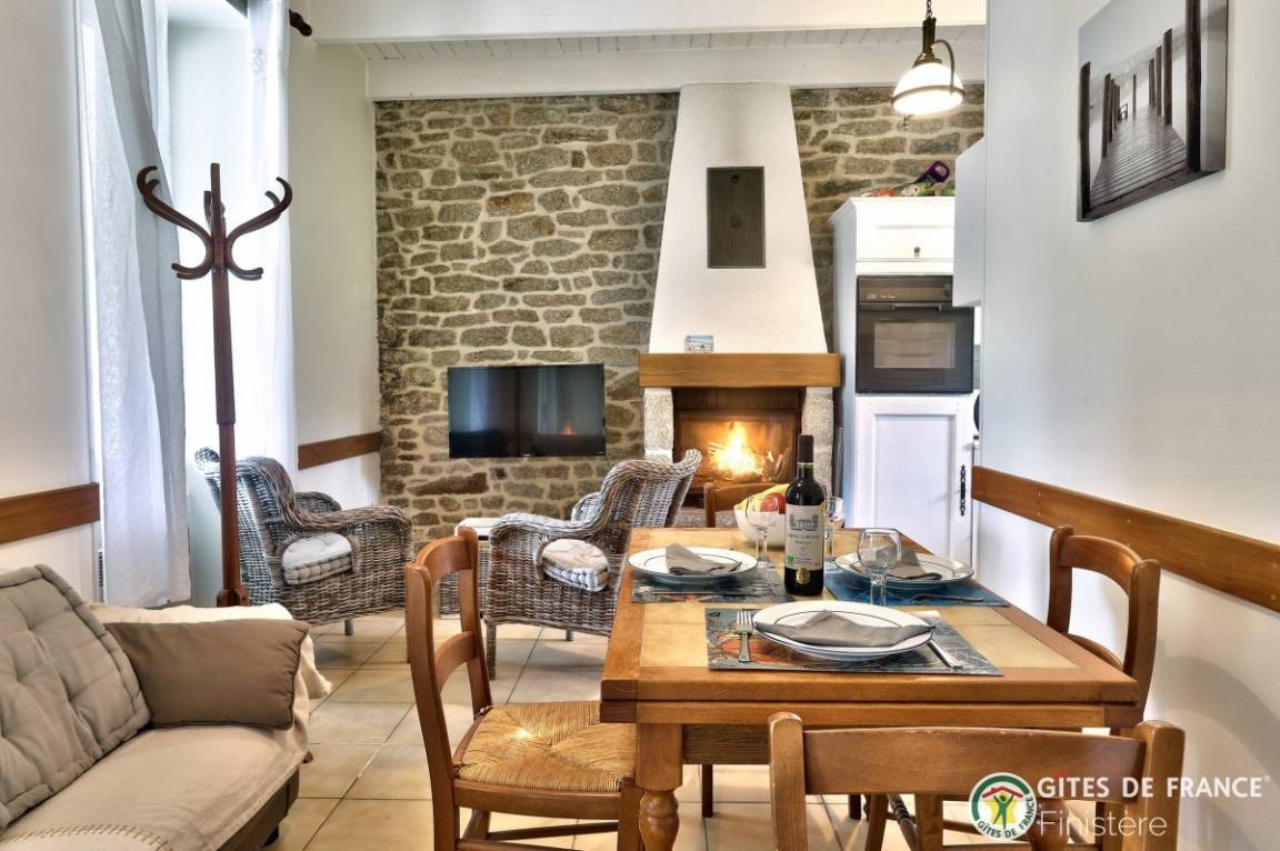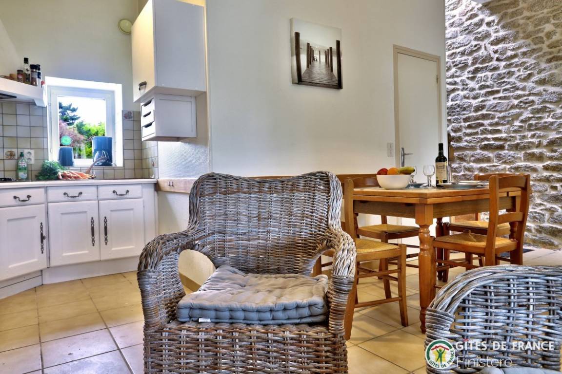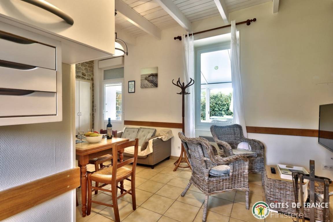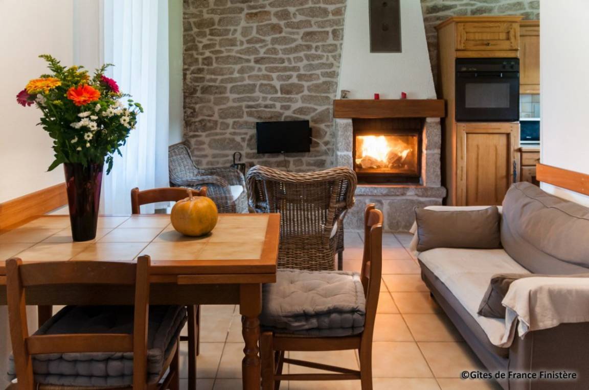 In diesem gemütlichen, bretonischen Haus finden Sie Eichenmöbel vor. Ideale Lage: ländliche Ruhe, Strand 500m: über Fußweg erreichbar.