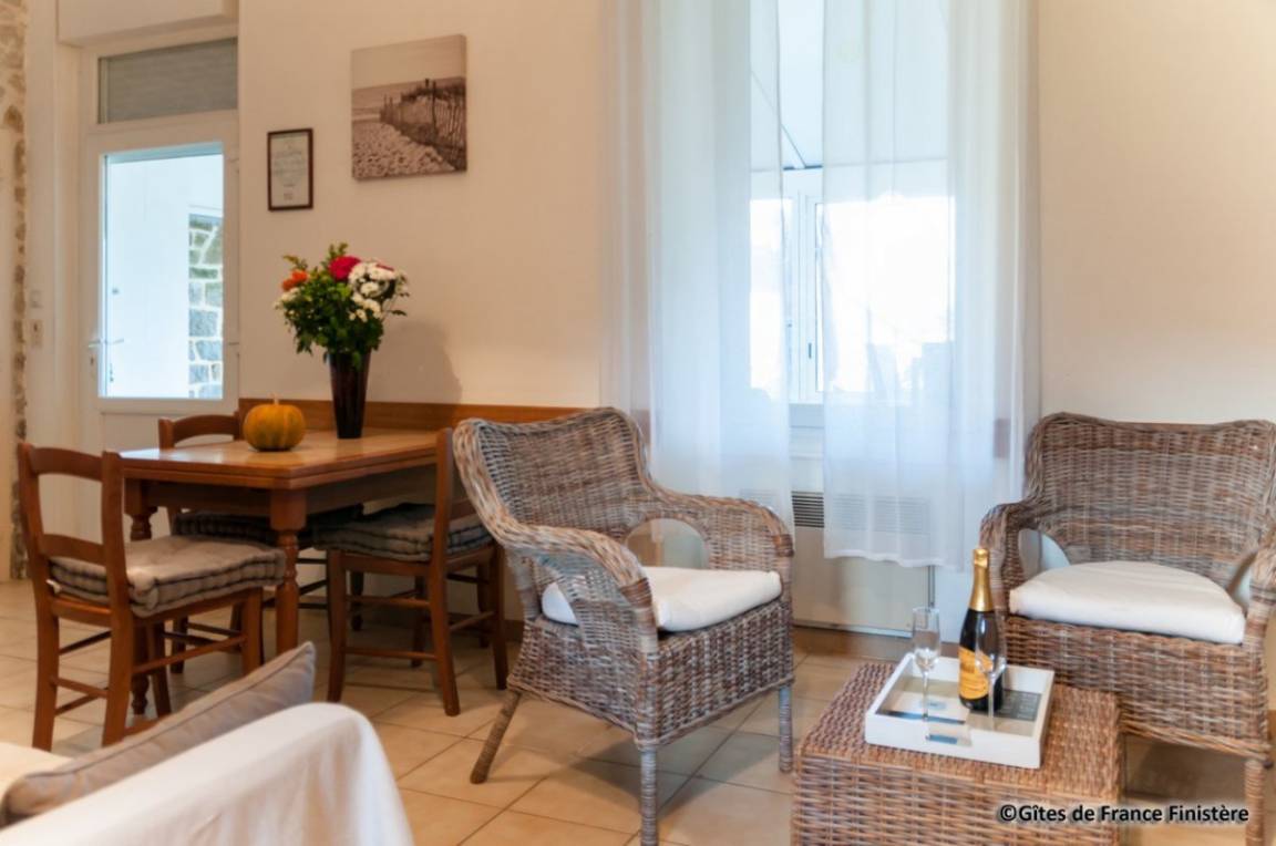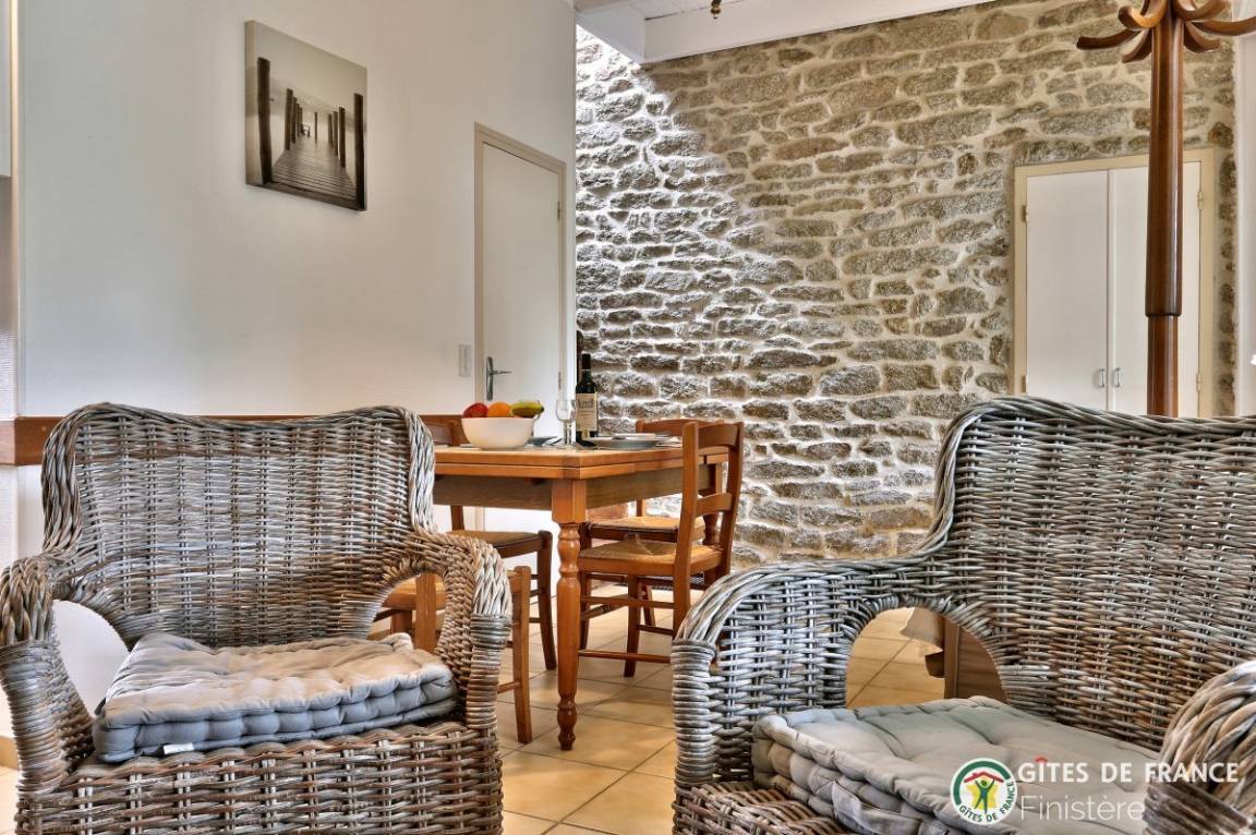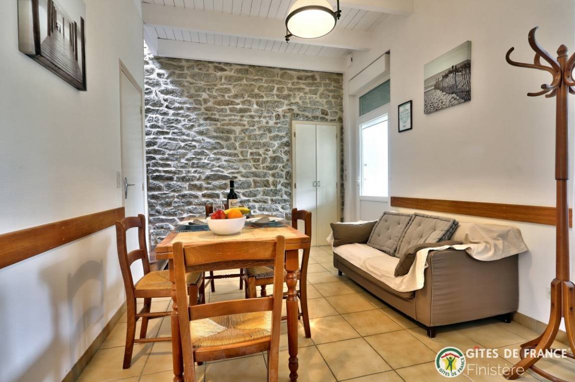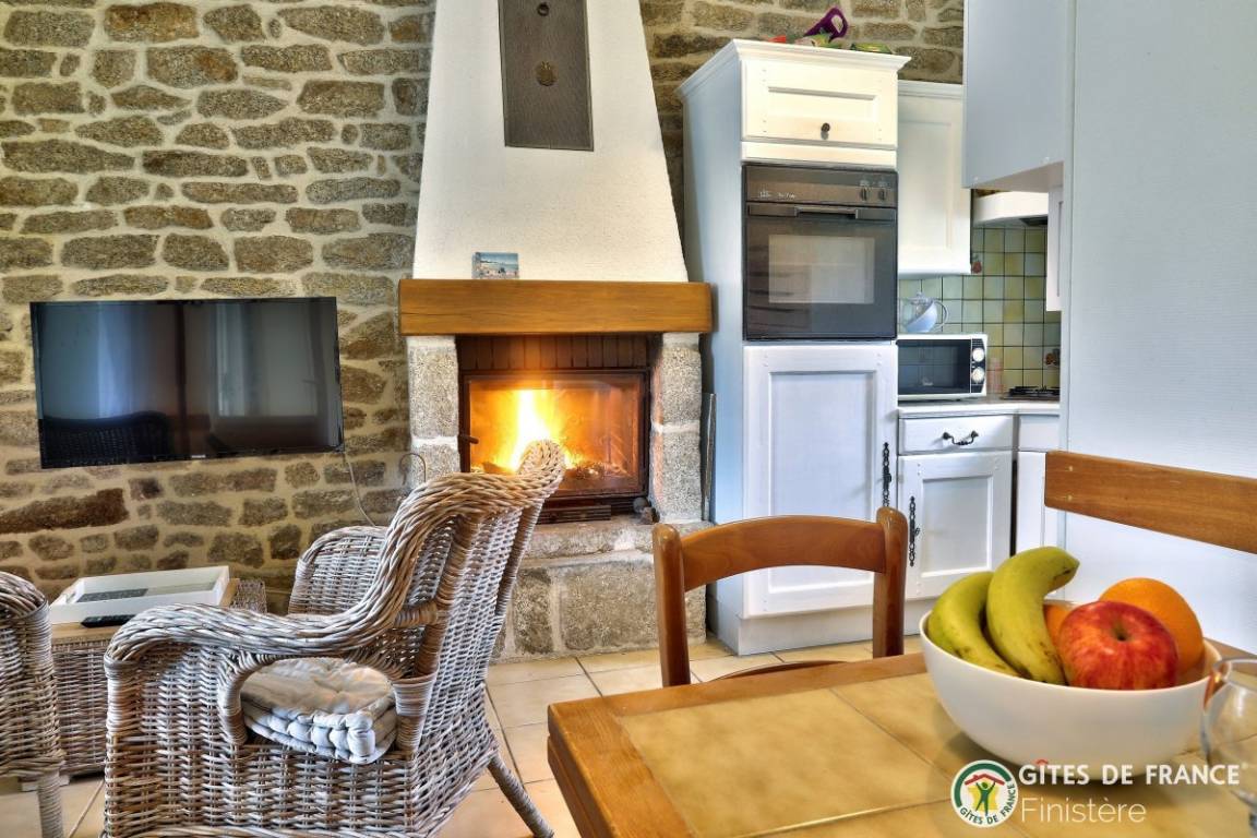 In diesem gemütlichen, bretonischen Haus finden Sie Eichenmöbel vor. Ideale Lage: ländliche Ruhe, Strand 500m: über Fußweg erreichbar.