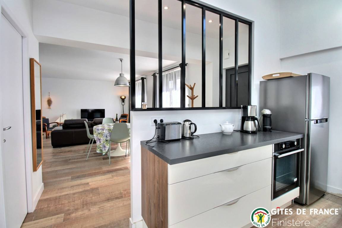 „Arrivée et bien-être ! Après un accueil chaleureux, nous avons beaucoup apprécié nos deux semaines dans cette maison de vacances. Emplacement idéal, à quelques pas de la plage et à 15 minutes à pied du port du Guilvinec. La maison elle-même est aménagée avec soin et parfaitement équipée, de la machine à café aux lits confortables. Nous avons pu garer notre voiture dans une cour fermée. Un grand merci à Charly et Cindy pour leur gentillesse et leur disponibilité sur place ! Nous reviendrons !“