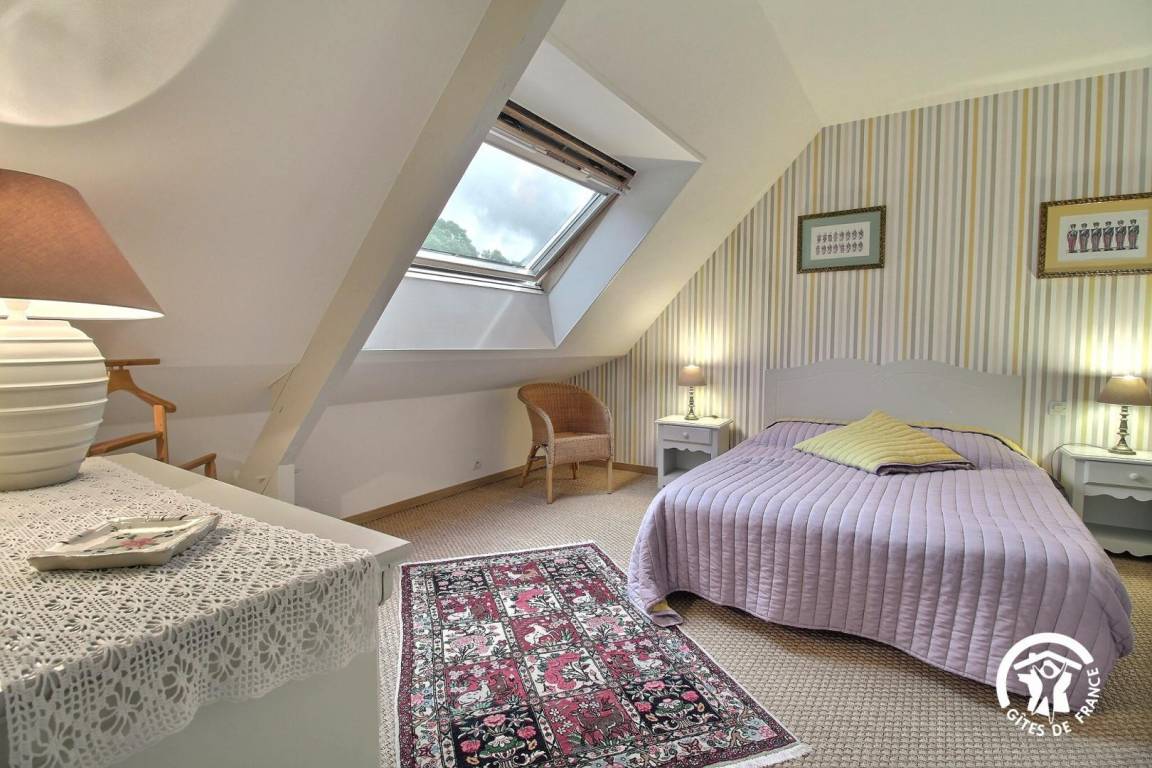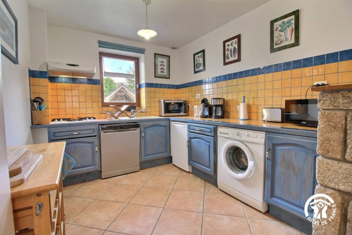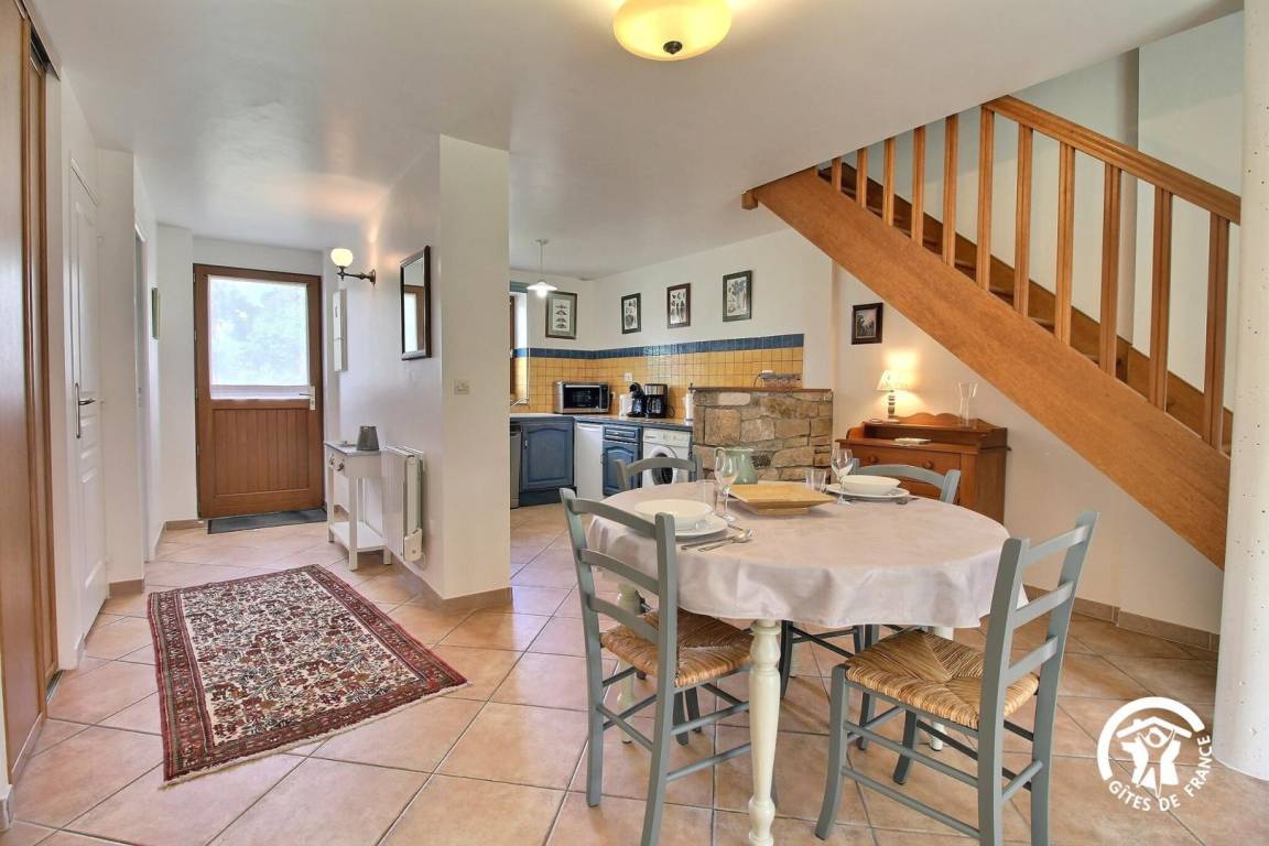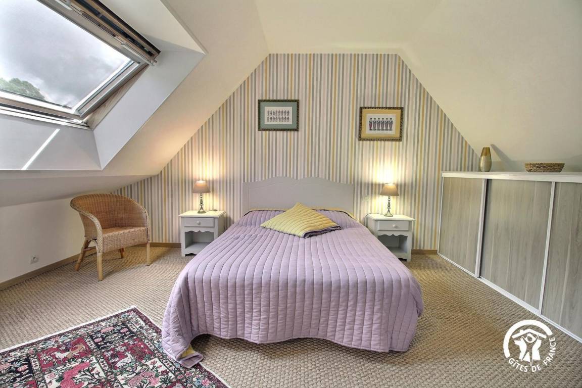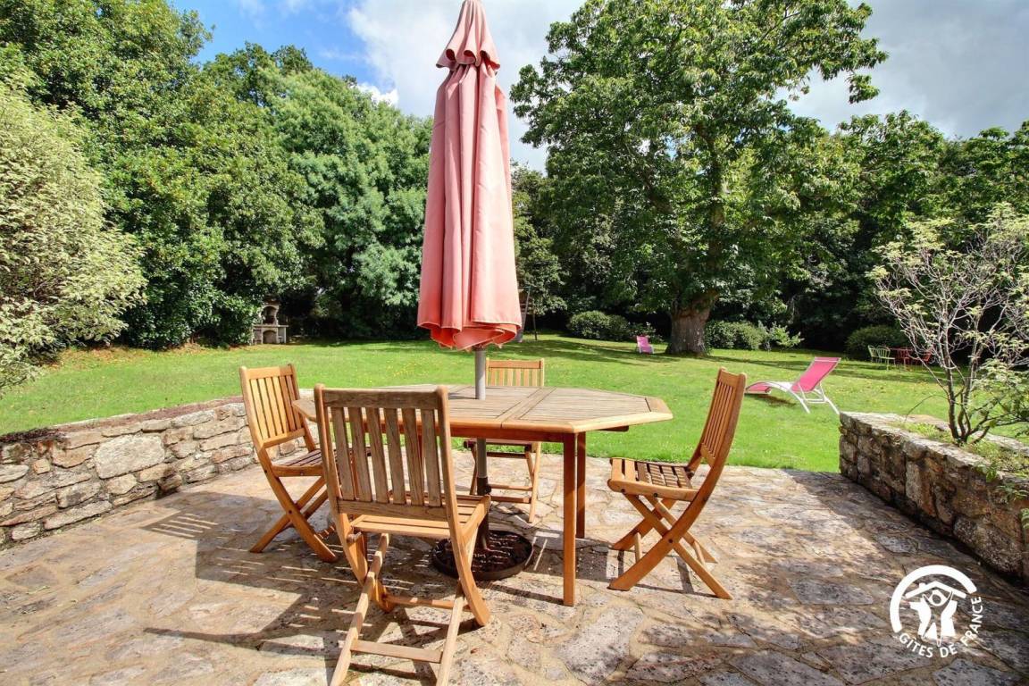 Gite in a group of 3 gites and 3 B&Bs, in a hamlet 5 km from Tréffléan. Living room/sitting area (DVD player)/kitchen corner, 1 bedroom (1 double bed, 1 single bed), shower room/wc, wc, electric heating. Terrace, garden furniture, sunbeds. Shared grounds of 11 hectares with children playground, boules alley. A renovated 18th longhouse with its period well and bread oven sitting in a green and peaceful environment where you will enjoy a pleasant break. GR 34 (long distance pedestrian track) at 6 km. Internet access.