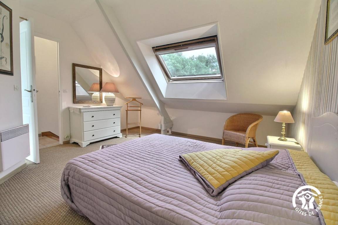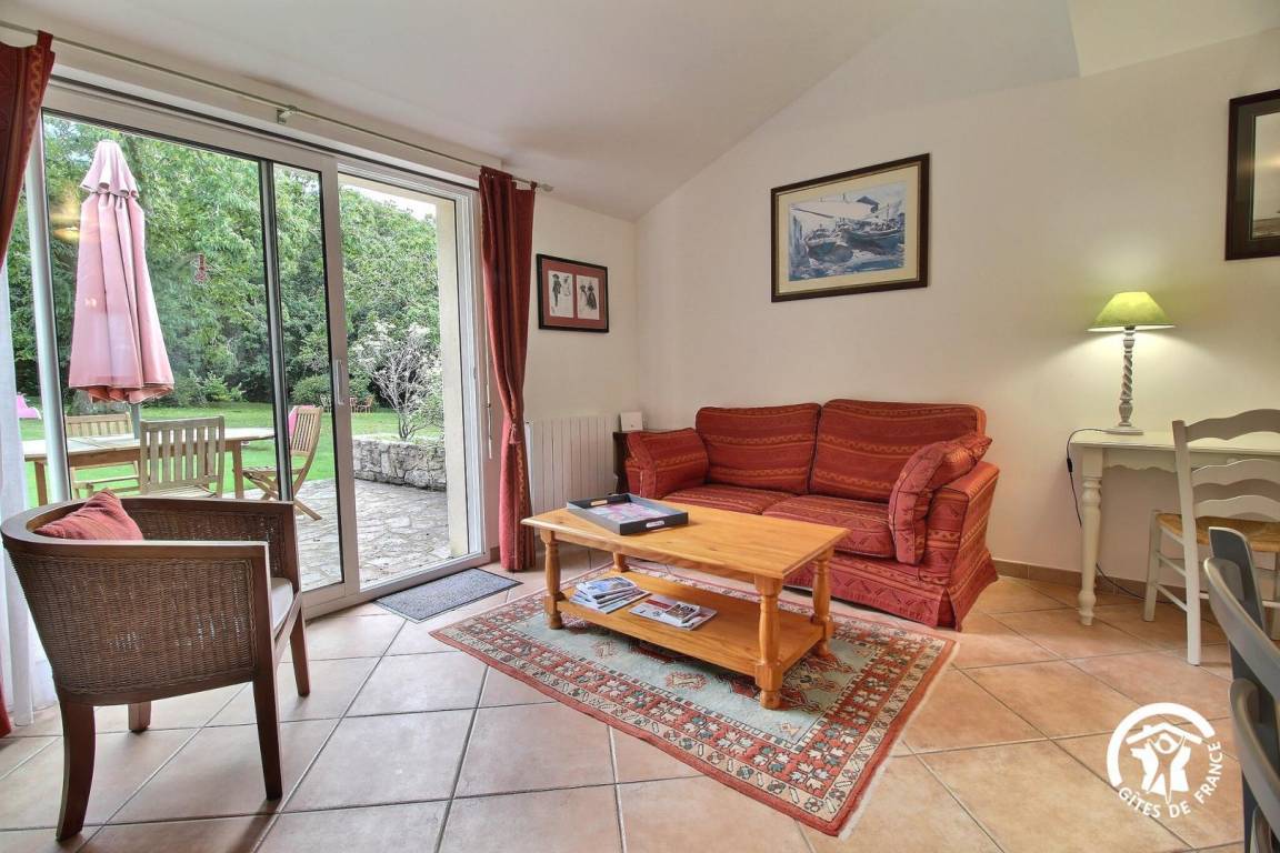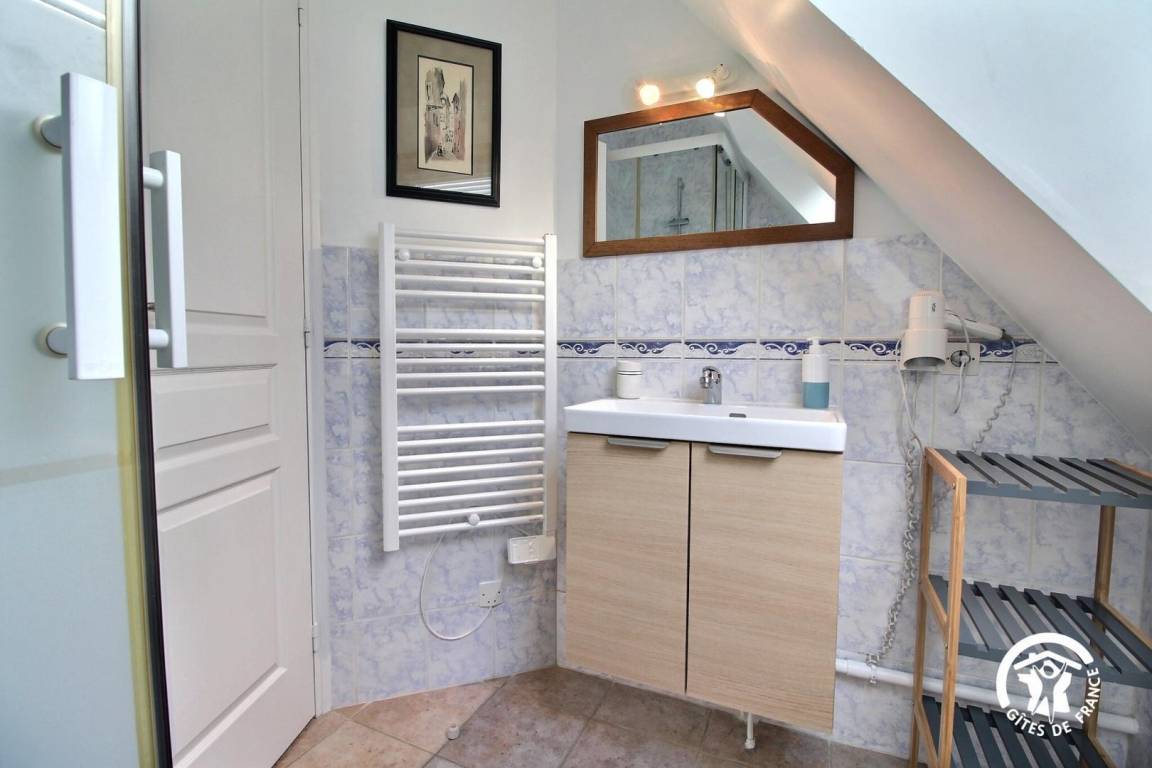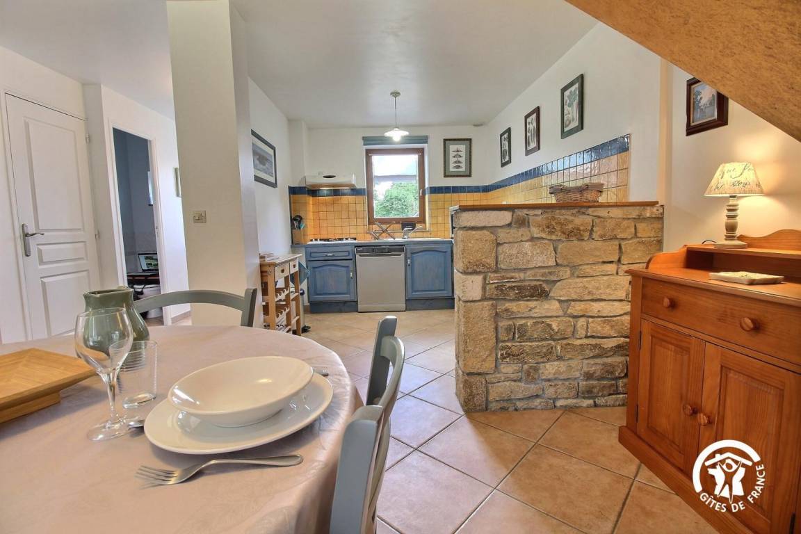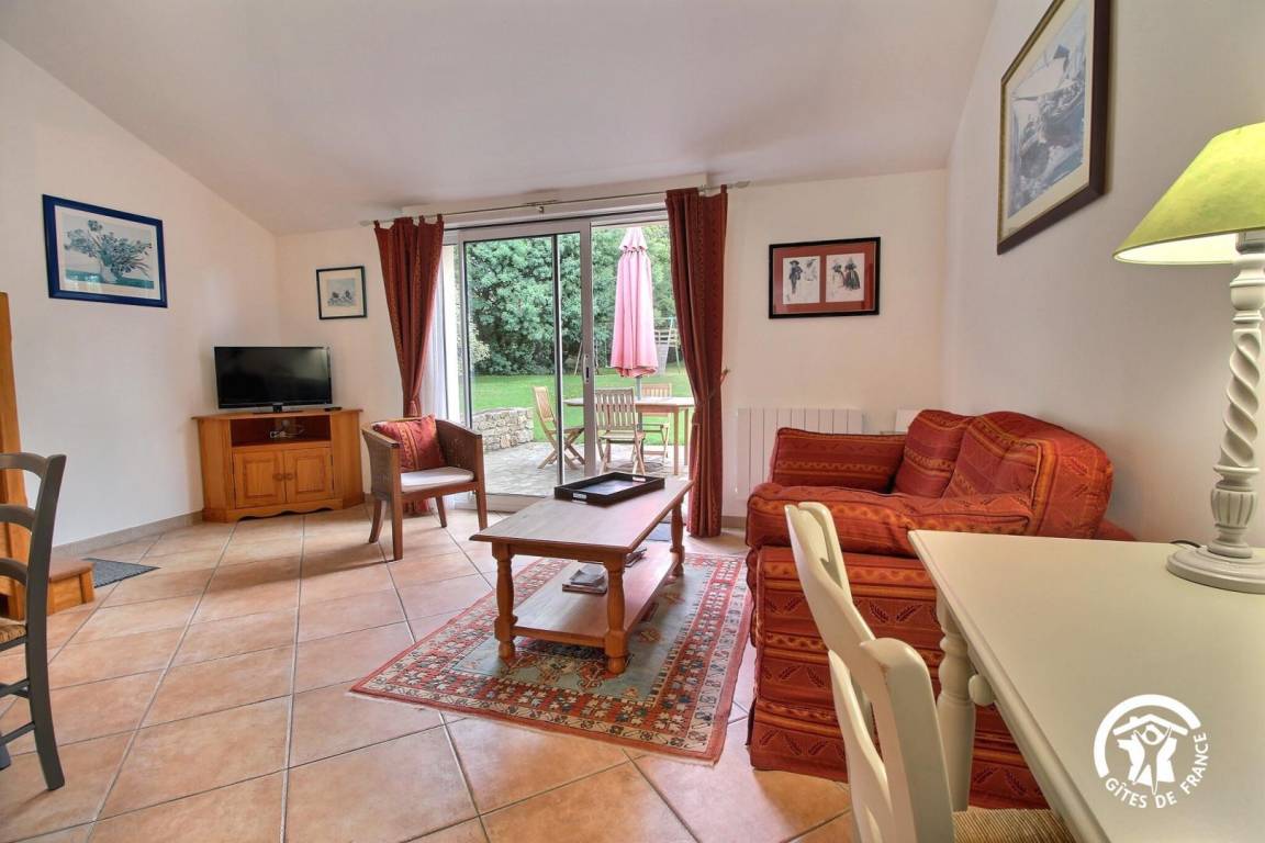 Gite in a group of 3 gites and 3 B&Bs, in a hamlet 5 km from Tréffléan. Living room/sitting area (DVD player)/kitchen corner, 1 bedroom (1 double bed, 1 single bed), shower room/wc, wc, electric heating. Terrace, garden furniture, sunbeds. Shared grounds of 11 hectares with children playground, boules alley. A renovated 18th longhouse with its period well and bread oven sitting in a green and peaceful environment where you will enjoy a pleasant break. GR 34 (long distance pedestrian track) at 6 km. Internet access.