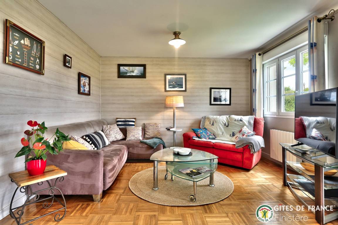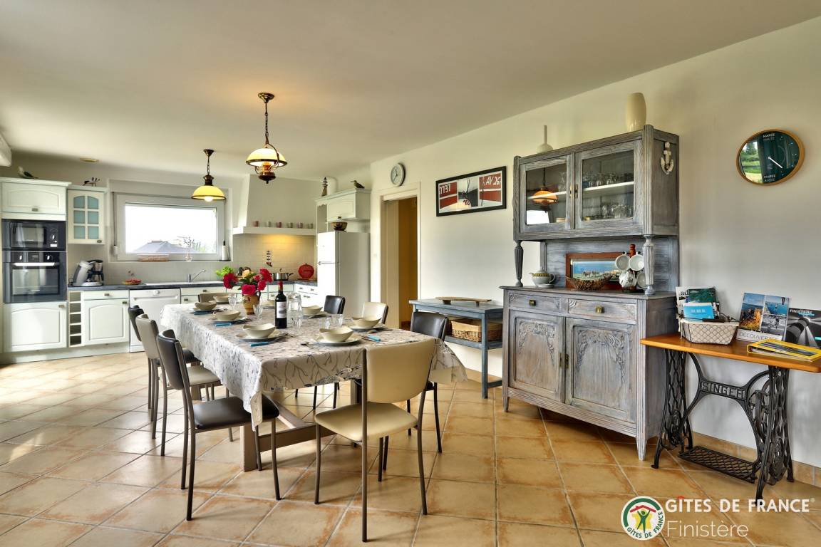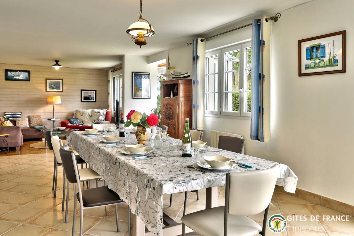 „Nous étions 8 amis dans ce très beau gîte, confortable, spacieux, aménagé de l'essentiel et même beaucoup plus avec soin. Les propriétaires sont très accueillants. Nous avons passé un merveilleux séjour sous le soleil breton“