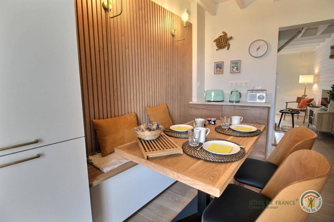 „Nous avons passé un très agréable séjour de 2 semaines dans le gîte. Nous étions 3 avec notre fille de 2 ans. Le gîte est tout confort, entièrement et très bien équipé et décoré. Très cosy. Que dire de l'accès immédiat à la plage... C'était difficile de repartir...“