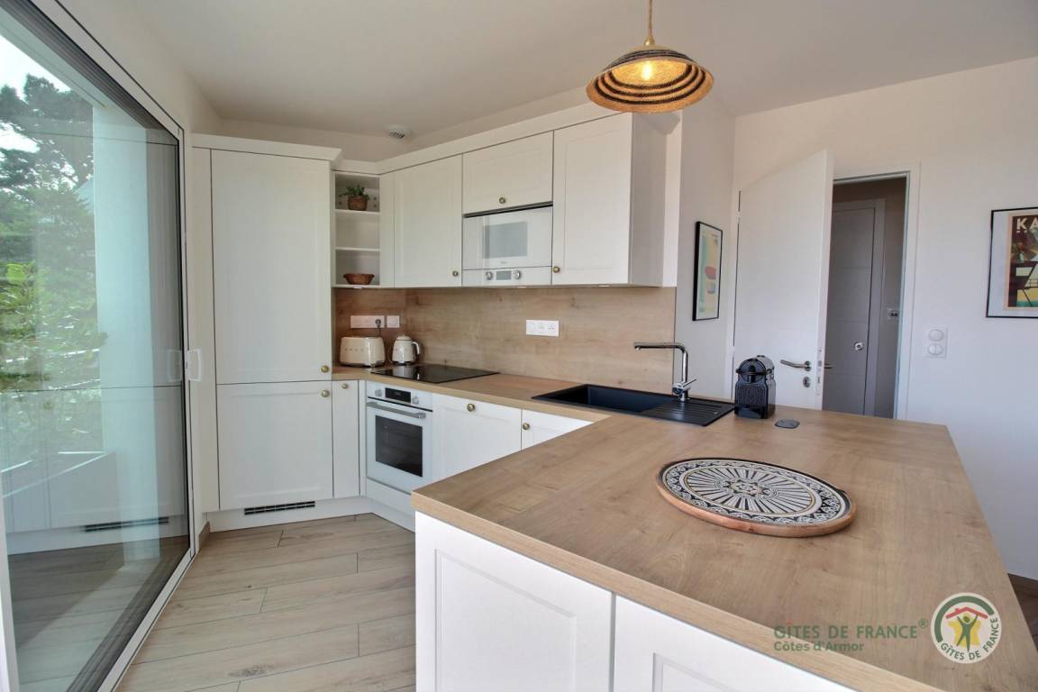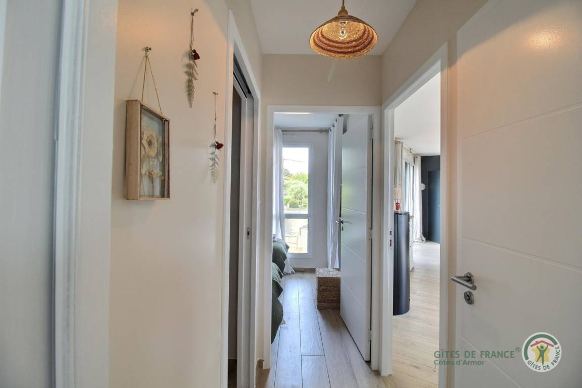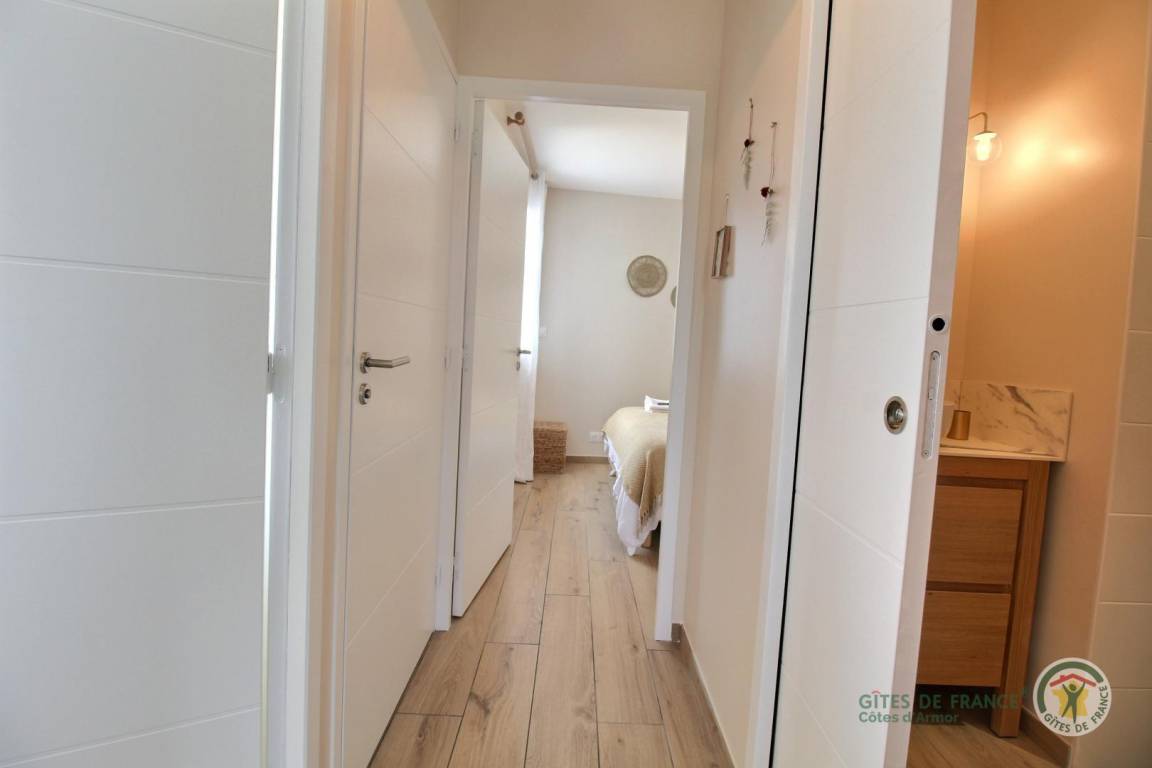 „Nous avons passé un excellent séjour dans cet appartement ! L'appartement était dans un état impeccable et nous avons été très bien accueillis. Il est très bien équipé et la décoration est soignée. Le véritable point fort reste la situation exceptionnelle: La grande baie vitrée offre une vue magnifique sur la mer, qui monte et descend au gré des marées ainsi que sur le château de Costaérès, c'est un vrai plaisir pour les yeux! Malgré le parking de la plage qui est proche, nous n'avons subit aucune gêne sonore ni même visuelles grace à des plantes très bien positionnées. De plus l'emplacement est proche d'un super U qui facilite les courses et de nombreuses activités peuvent se faire dans un rayon très proche. Nous recommandons vivement cet hébergement, notre séjour a été une vraie réussite !“