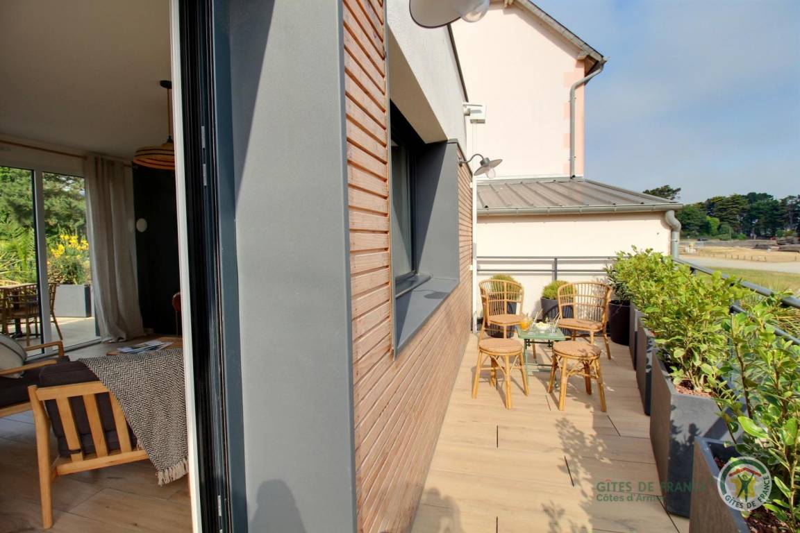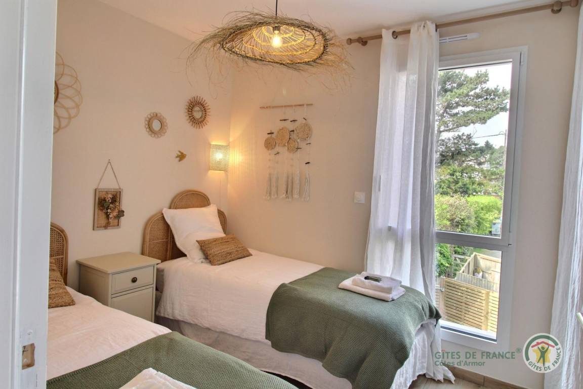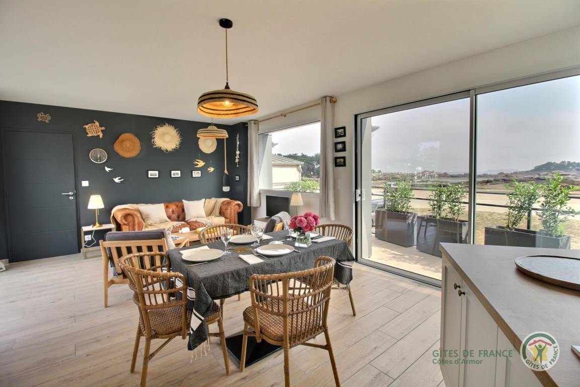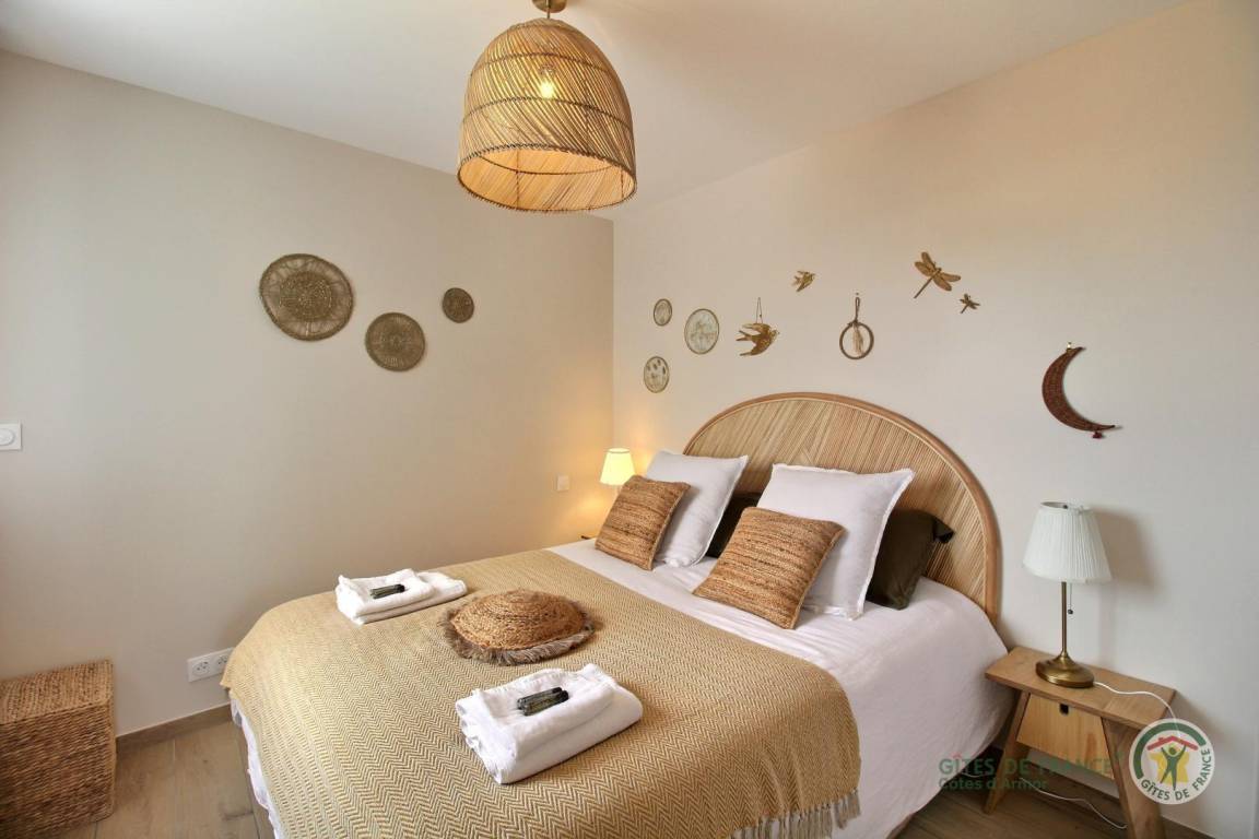 „Nous avons passé un excellent séjour dans cet appartement ! L'appartement était dans un état impeccable et nous avons été très bien accueillis. Il est très bien équipé et la décoration est soignée. Le véritable point fort reste la situation exceptionnelle: La grande baie vitrée offre une vue magnifique sur la mer, qui monte et descend au gré des marées ainsi que sur le château de Costaérès, c'est un vrai plaisir pour les yeux! Malgré le parking de la plage qui est proche, nous n'avons subit aucune gêne sonore ni même visuelles grace à des plantes très bien positionnées. De plus l'emplacement est proche d'un super U qui facilite les courses et de nombreuses activités peuvent se faire dans un rayon très proche. Nous recommandons vivement cet hébergement, notre séjour a été une vraie réussite !“