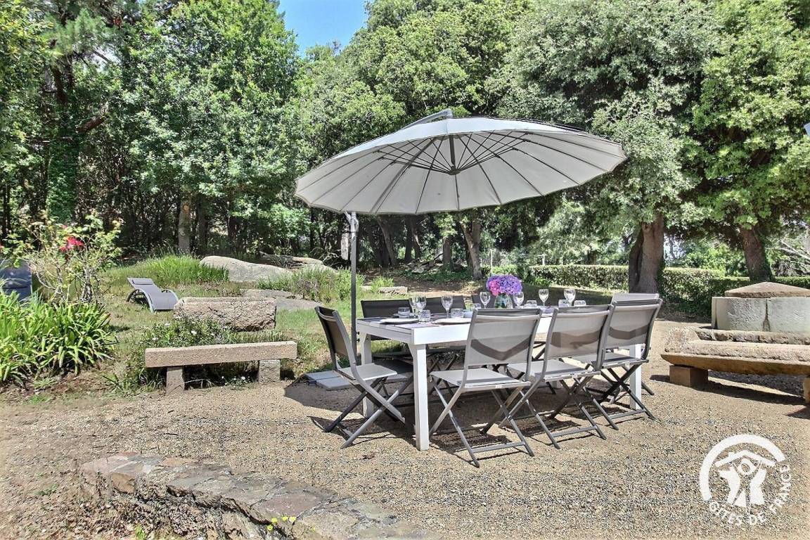 Großer begrünter Innenhof mit Parkplatz. Geschlossene Außendusche am Haus. Herrlicher Park mit direktem Zugang zum Strand von Tourony.