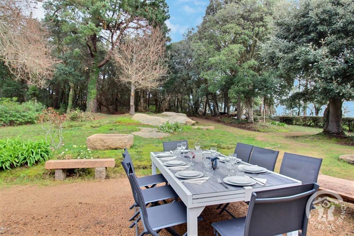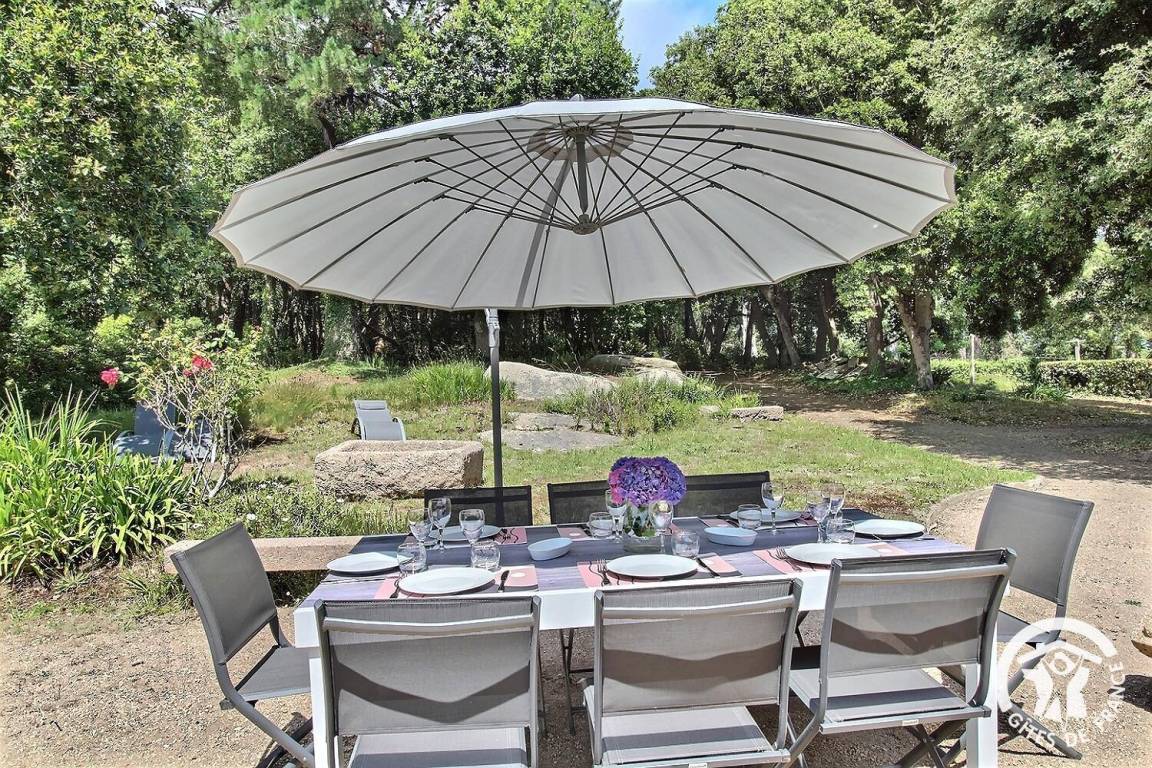 Großer begrünter Innenhof mit Parkplatz. Geschlossene Außendusche am Haus. Herrlicher Park mit direktem Zugang zum Strand von Tourony.
