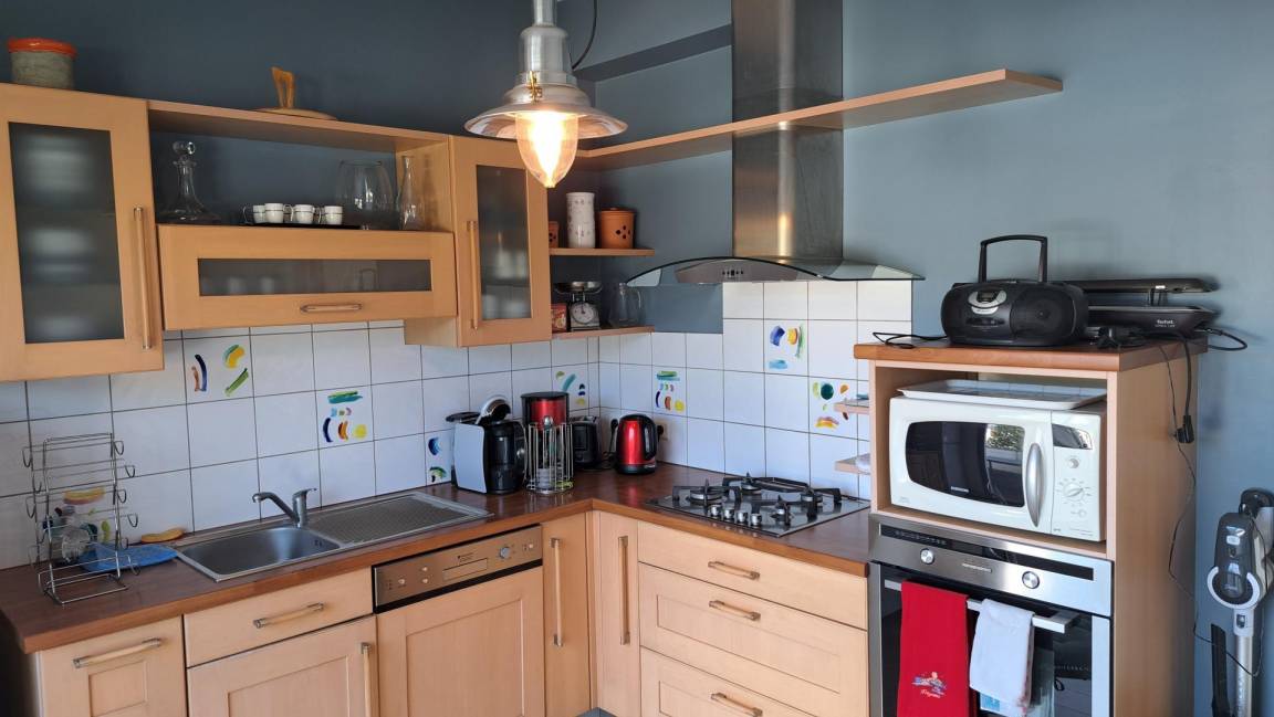 Ihre Ferienwohnung umfasst im Hochparterre: Küche, Wohnzimmer mit Holzofen, Schlafzimmer (1 Bett 160x200), Badezimmer mit Dusche und WC. Zu Ihrer Verfügung: eine 19 m² große Terrasse, ein privater Garten von 1100 m². Parken Ihrer Fahrzeuge im privaten Innenhof der Unterkunft (105 m²). Geschlossener Raum von 16 m² für Fahrräder, Wassersportausrüstung oder anderes. Vor Ort stehen 2 Fahrräder für Erwachsene zur Verfügung. Holz: 1. Ausbruch gratis und danach 10 € pro Korb.