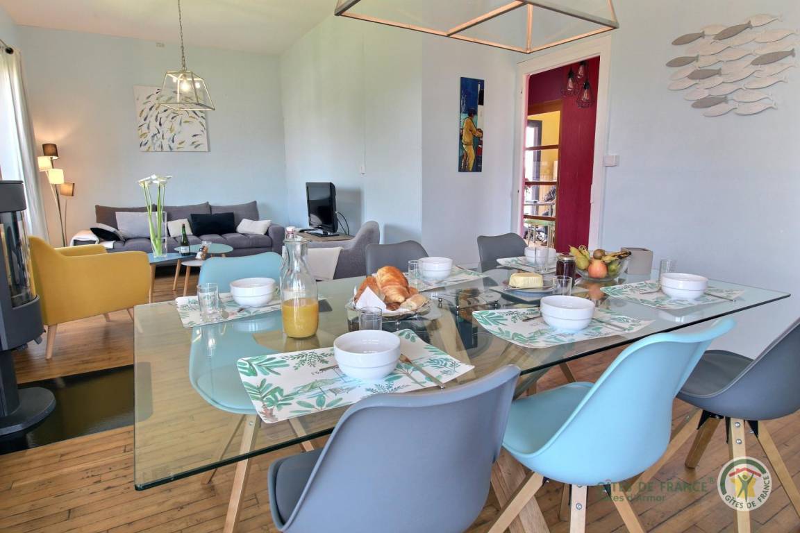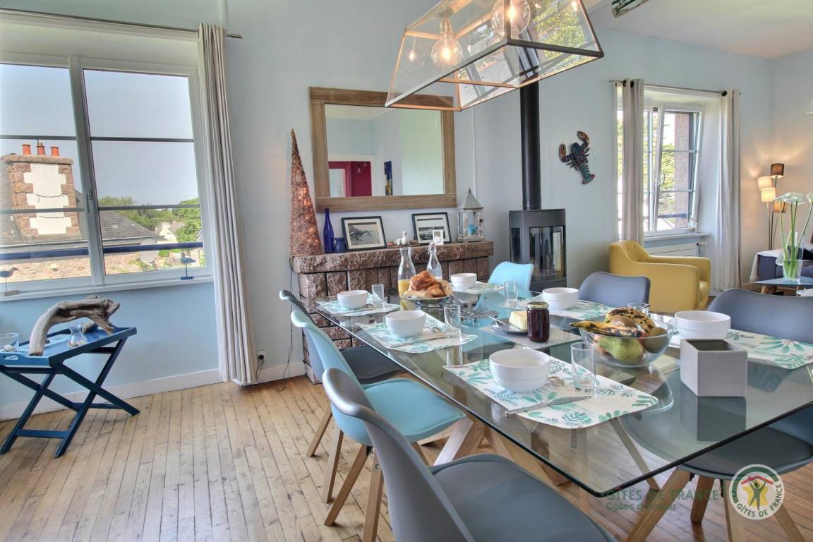 „La maison est grande et tout confort, tant pour deux que pour 5.Il y a de la place pour garer les véhivules et le jardin est grand pour s'y reposer par temps ensoleillé. L'ambiance de la maison est cocooning avec son poêle au milieu du séjour. La maison est placée dans un ruelle calme avec une vue splendide donnant sur le port d'un côté et la mer, au loin, de l'autre. Depuis la maison, l'accès vers les sentiers de randonnées est direct. La côte de Granit Rose est à portée de jambes et à couper le souffle. Nous y étions avec un temps frais et venteux mais sans regrets car tous les jours, le paysage est changeant et éblouissant. Quel plaisir de revenir au gîte après une journée de marche car le lieu est calme et ressourçant. Pour cuisiner, il y a vraiment le nécessaire! qui plus est, la vaisselle est bien choisie. Tout comme la décoration de toutes les pièces. De plus, tout est propre du salon à la salle de bain. Nous avons reçu un accueil très chaleureux et nous remercions vivement les propriétaires et l'hôtesse d'accueil.“