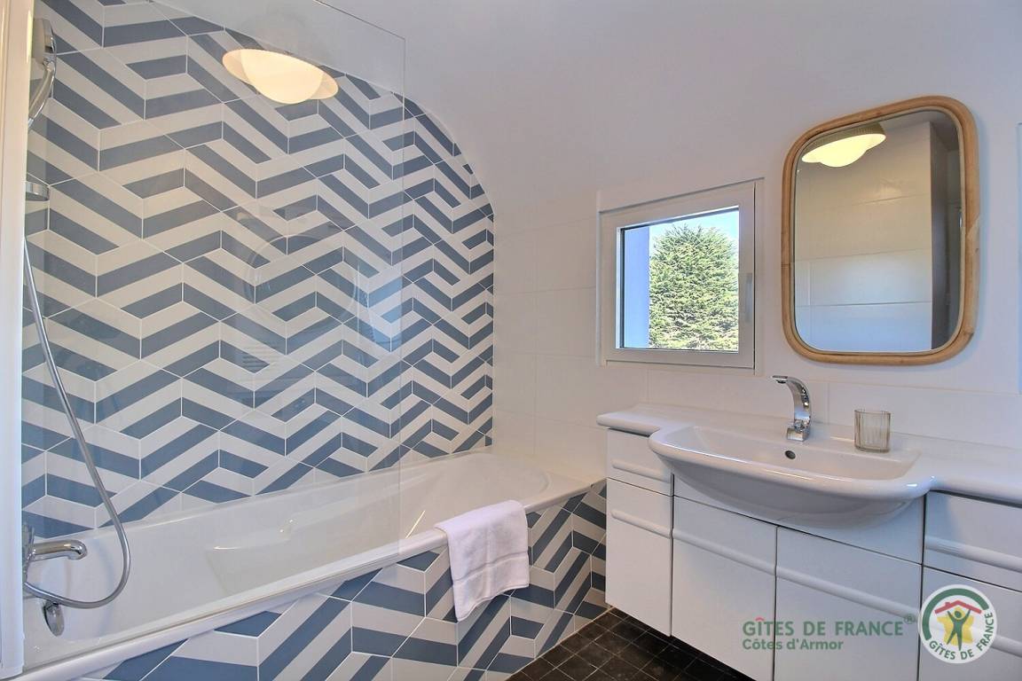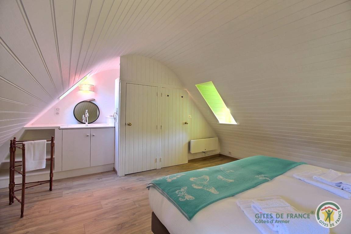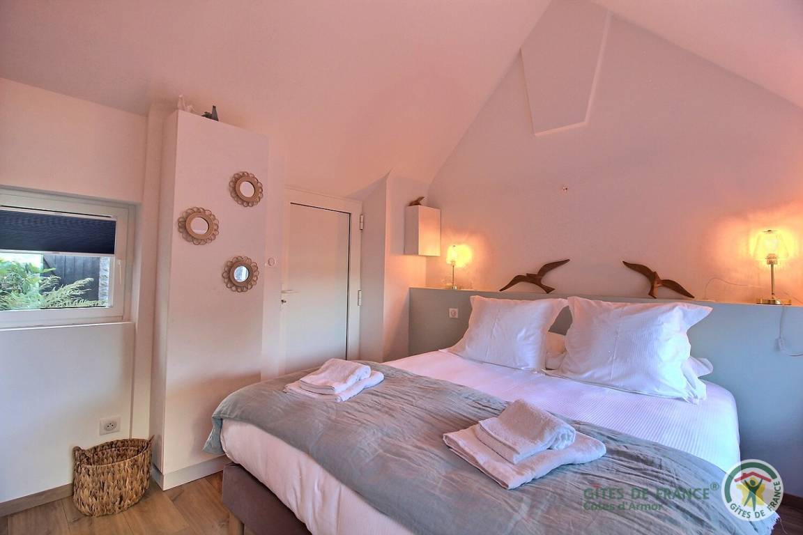 Ihre Ferienwohnung umfasst im Erdgeschoss: großes Wohnzimmer mit wunderschönem Meerblick mit Essbereich und gut ausgestatteter Einbauküche, eine weitere unabhängige TV-/Bibliothekslounge, ein kleines Schlafzimmer mit Meerblick (2 Betten 80x190), Badezimmer mit Badewanne (Badewanne ) und Badezimmer (ebenerdige Dusche), separates WC. Von der Eingangshalle aus erreichen Sie 2 weitere Schlafzimmer, eines sehr geräumig (1 Bett 160x200), das andere mit privatem Zugang zum Garten und Meerblick (1 Bett 160x200), separates WC. Obergeschoss: 2 große Schlafzimmer im Dachgeschoss: eines (2 Einzelbetten 90x200) mit WC-Bereich, das andere durch eine kleine Rundbogentür zugänglich (1 Bett 90x190). Schöne Terrasse, großes Landschaftsgrundstück in Entwicklung mit privatem Zugang zum Strand. Gepflasterter Innenhof. Parken entlang des Grundstücks in der Sackgasse.