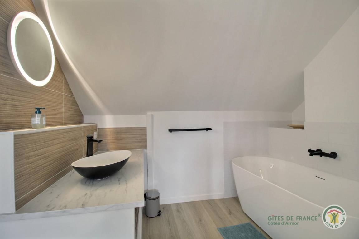 „Vraiment un super séjour, la météo a bien aidé car il a fait très beau, nous avons pu mangé dehors, c'était vraiment les vacances!Le gite est très bien décoré, récent et bien équipé. Nous n'avons manqué de rien. L'emplacement est bon, la mer n'est qu'à 10 petites minutes à pied en marchant avec les enfants. La plage de la grève blanche est un tout petit peu plus loin. Le contact avec la conciergerie était parfait, Ornella a été ponctuelle et réactive. Nous avons trouvé que Trégastel était vraiment la plus belle partie de la côté de granit rose, avec une mention spéciale pour la presqu'île de la Renote (et le phare de Ploumarc'h).Vraiment un super séjour à tarif raisonnable, merci beaucoup.“