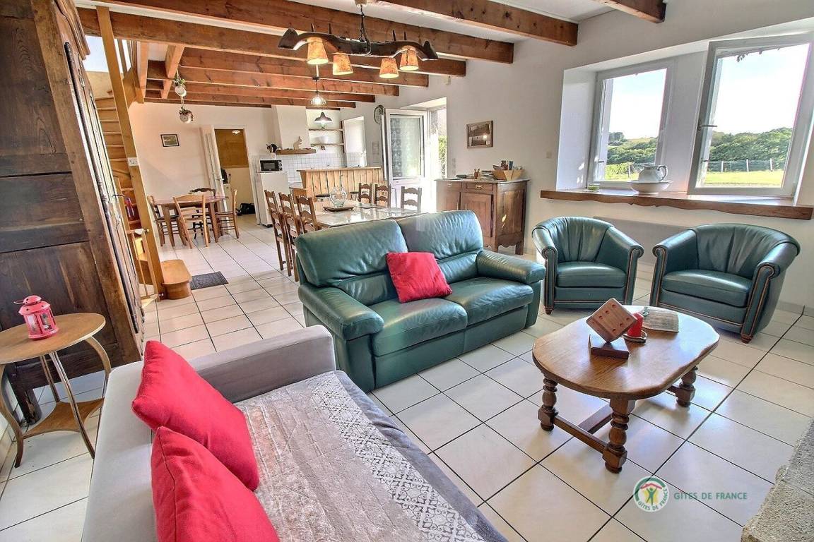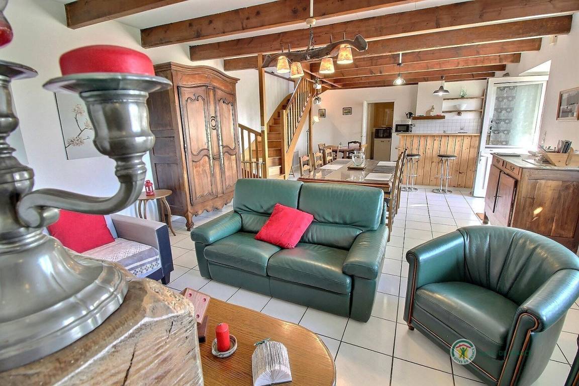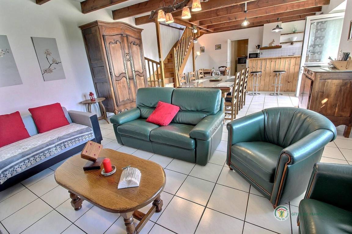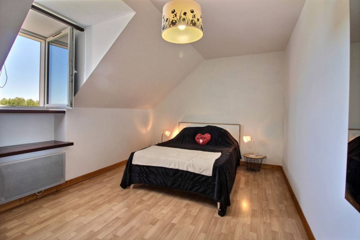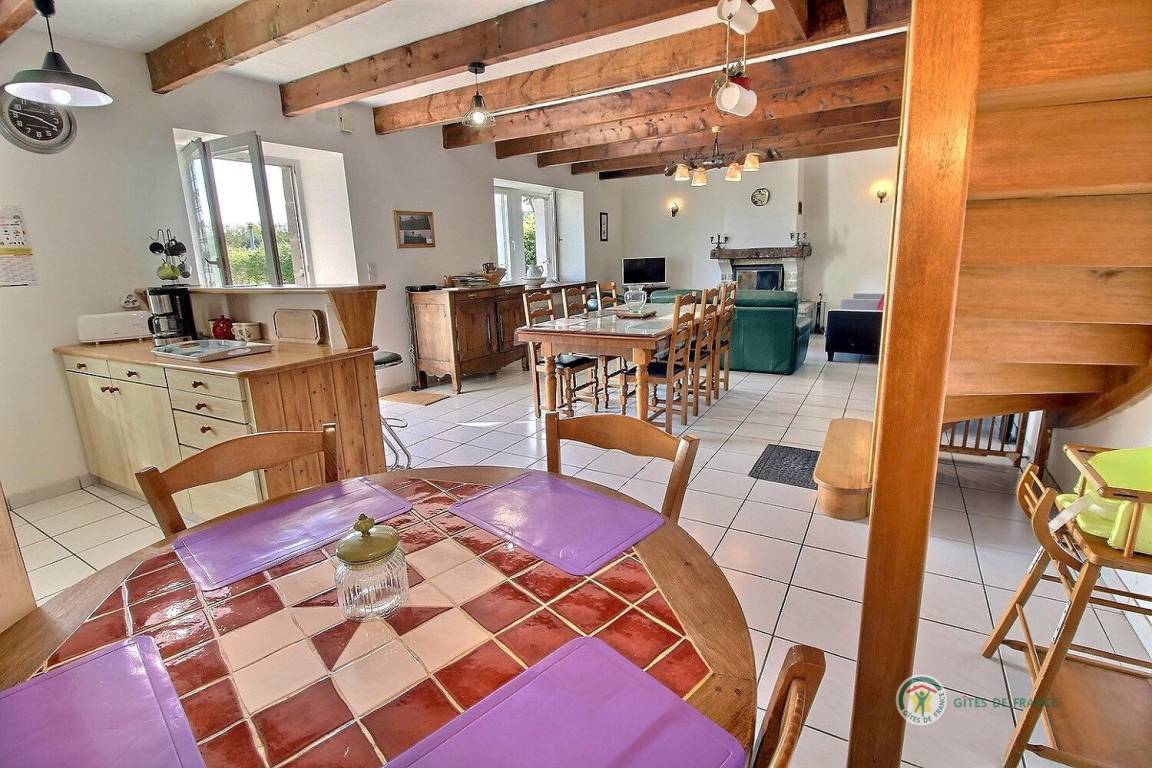 Dieses Urlaubshaus umfasst: Im Erdgeschoss: eine Küche mit Wohnzimmer, einen Wohnsalon mit Kamin (Einsatz), eine Waschküche mit großer Gefriertruhe und Geschirrspüler, einen Abstellraum mit Waschmaschine und Trockner, ein Badezimmer (Badewanne mit Duschwand und WC). Im Obergeschoss : 3 Zimmer (1 Bett 90x190) 2 x 1 Bett 140x190), Badezimmer mit Dusche und WC, eine Wäschekammer.