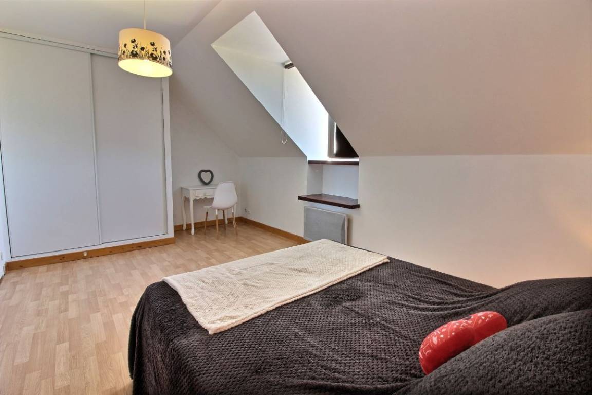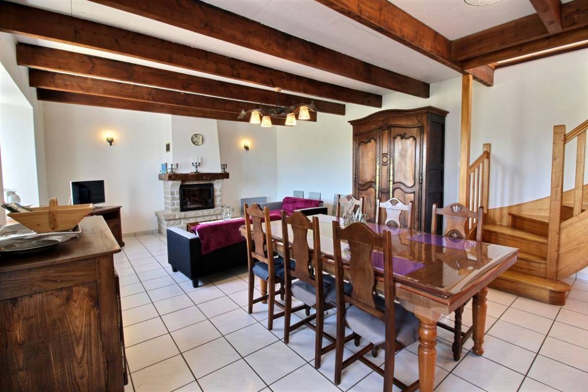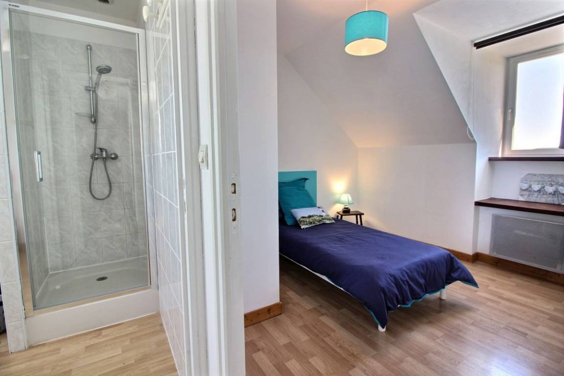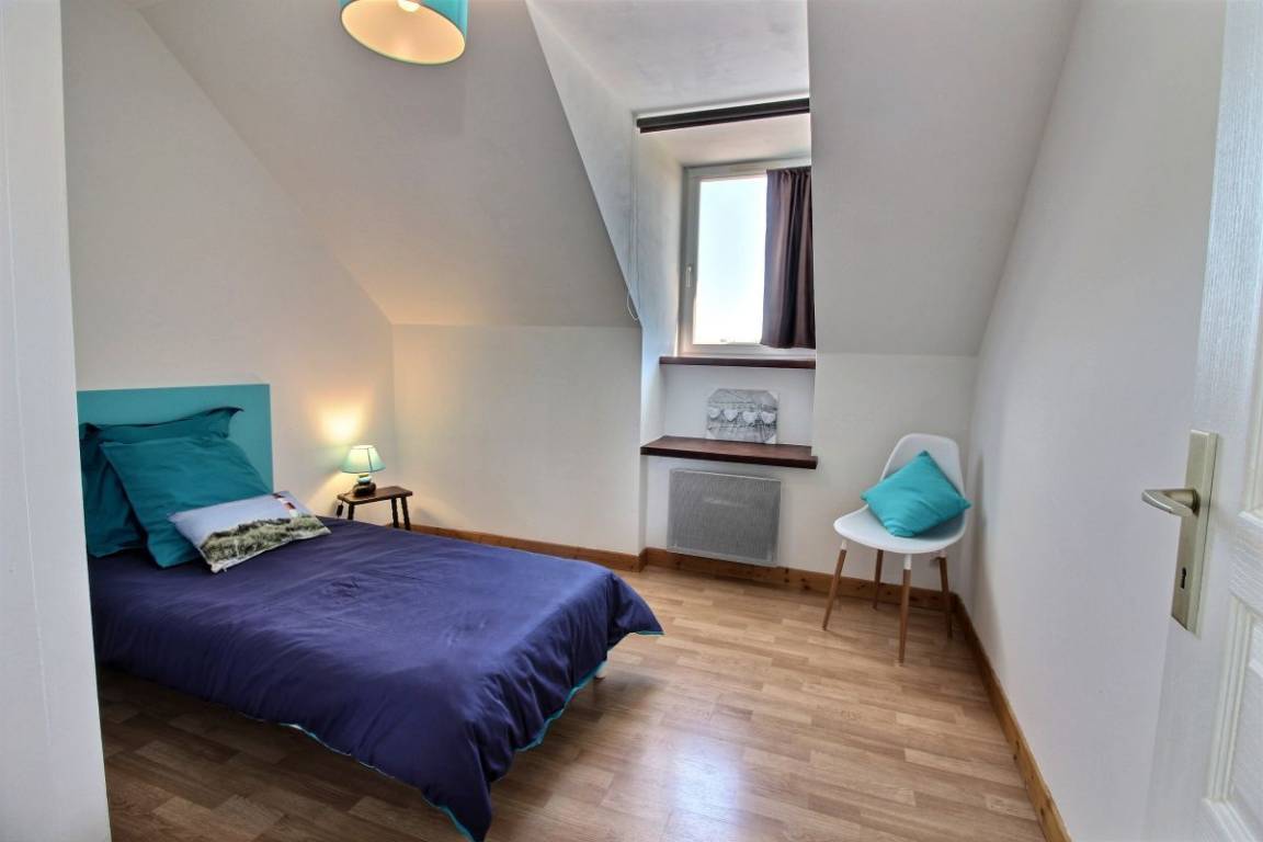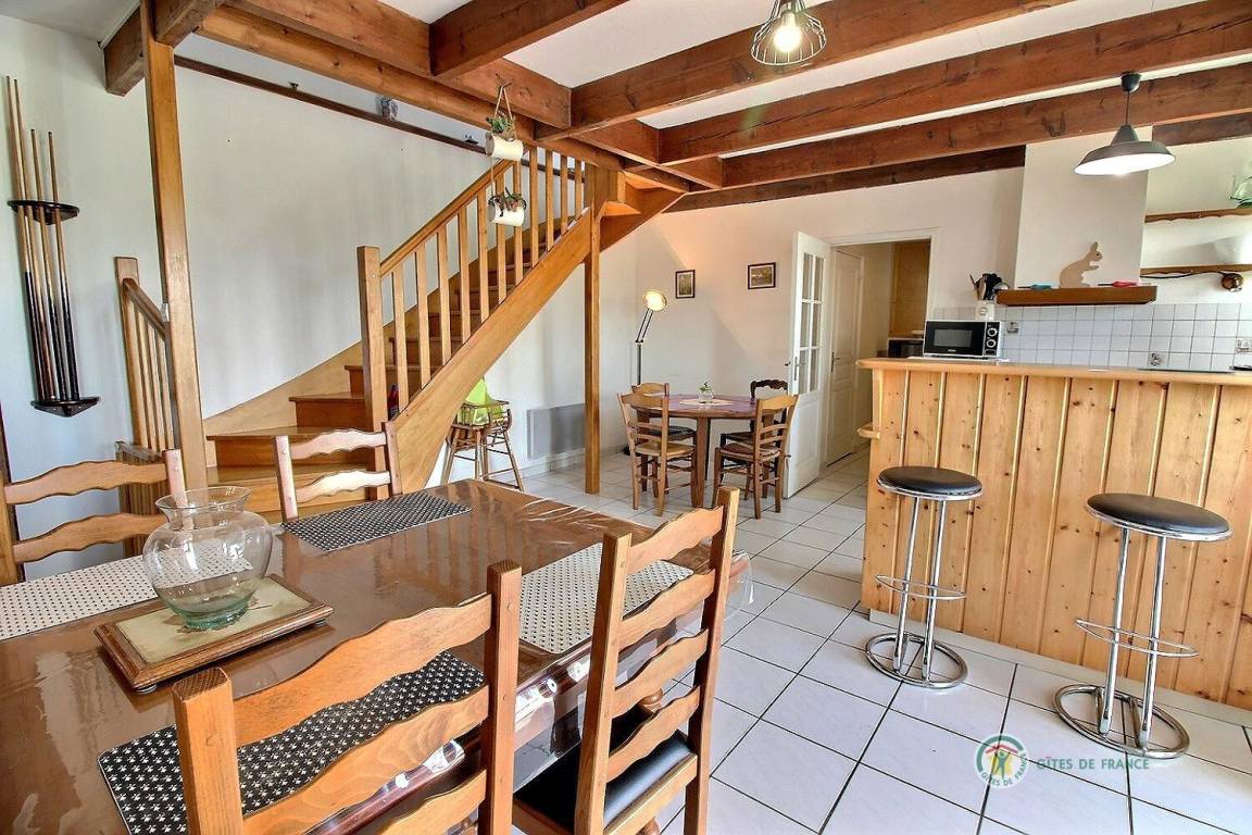 Dieses Urlaubshaus umfasst: Im Erdgeschoss: eine Küche mit Wohnzimmer, einen Wohnsalon mit Kamin (Einsatz), eine Waschküche mit großer Gefriertruhe und Geschirrspüler, einen Abstellraum mit Waschmaschine und Trockner, ein Badezimmer (Badewanne mit Duschwand und WC). Im Obergeschoss : 3 Zimmer (1 Bett 90x190) 2 x 1 Bett 140x190), Badezimmer mit Dusche und WC, eine Wäschekammer.