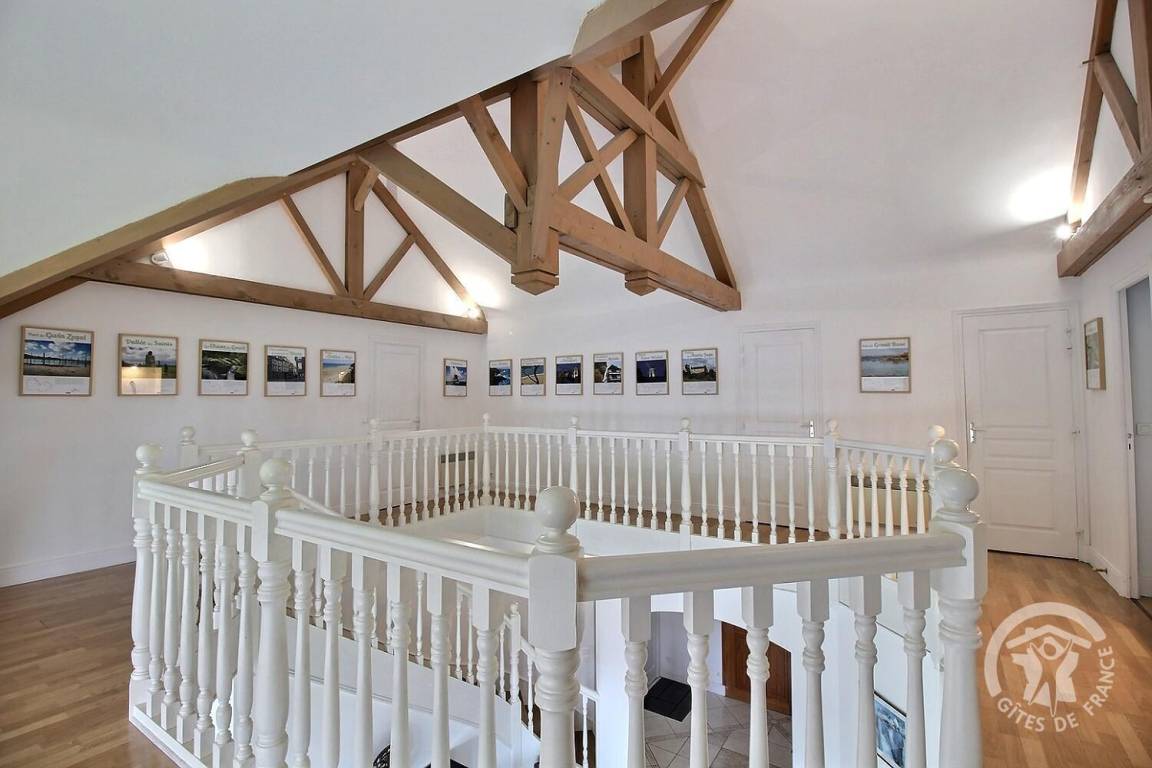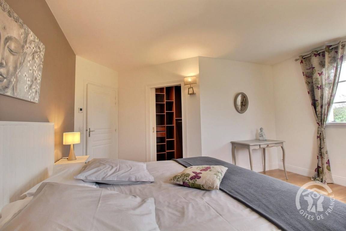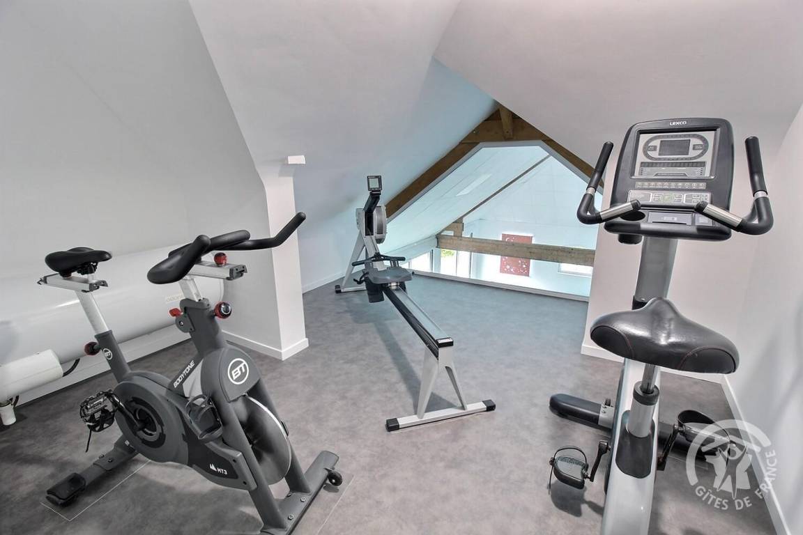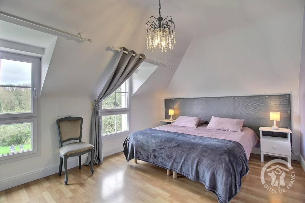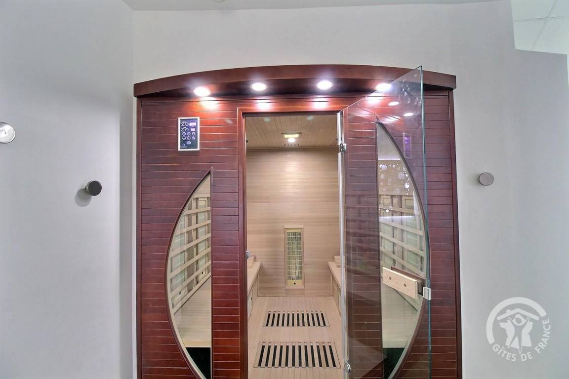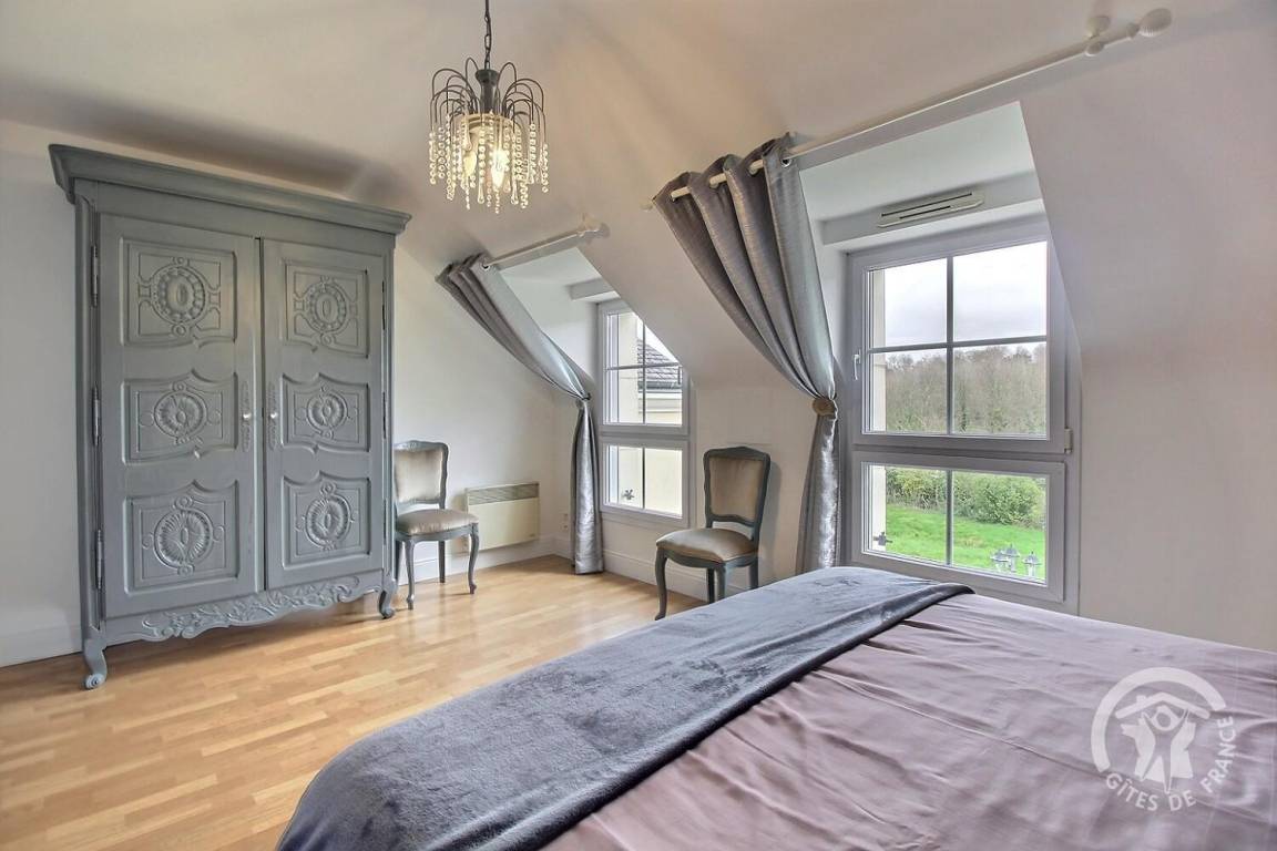 Dieses Ferienhaus bietet: Im Erdgeschoss: eine Diele mit separatem WC, 2 schöne helle Wohnzimmer mit Spieltisch und Klavier, Pelletofen, Esszimmer und angenehme Einbauküche, Waschküchenbereich, eine Zen Schlafzimmer-Suite mit 1 Zimmer (1 Bett 160x200), einem weiteren Zimmer (1 Bett 90x200), großem Badezimmer (mit Badewanne und Dusche) und ein WC. Im Obergeschoss: Prächtiges Zwischengeschoss, überhängend auf das Wohnzimmer mit Billardtisch, zu 2 Einheiten führend, jede mit 2 Schlafzimmern, die ihre eigene Badezimmer mit Dusche haben. In der Einheit Nature 1 Schlafzimmer (mit 1 Bett 160x200) und 1 Schlafzimmer (mit 2 Betten 90x200). In der Einheit Romantique 1 Schlafzimmer (mit 1 Bett 160x200) und 1 Schlafzimmer (mit 2 zusammenstellenden Einzelbetten), separate Toiletten. 100 qm große Terrasse von den 2 Wohnzimmern und der Küche aus erreichbar, Whirlpool das ganze Jahr über verfügbar, großes Landschaftsgrundstück mit Trampolin, Tennisplatz zur gemeinsamen Nutzung mit den Eigentümern und