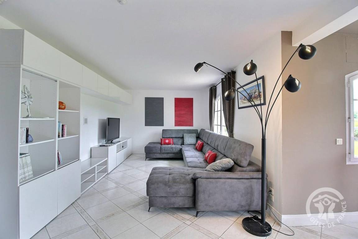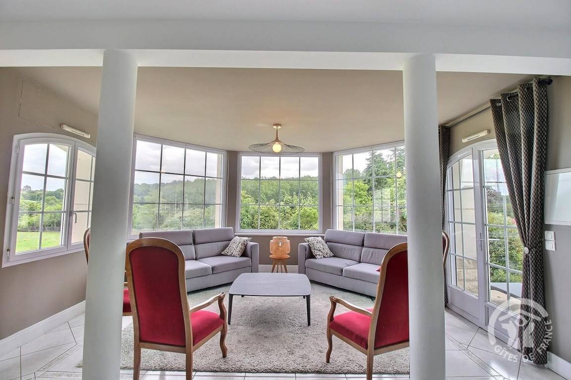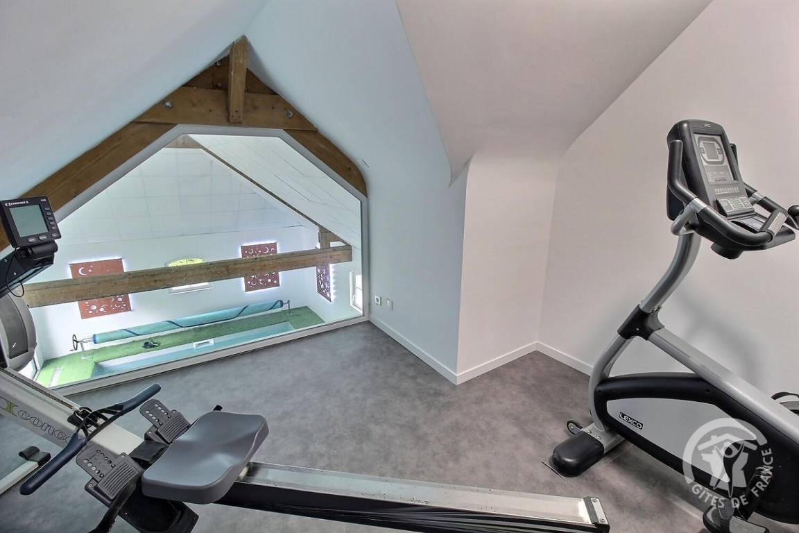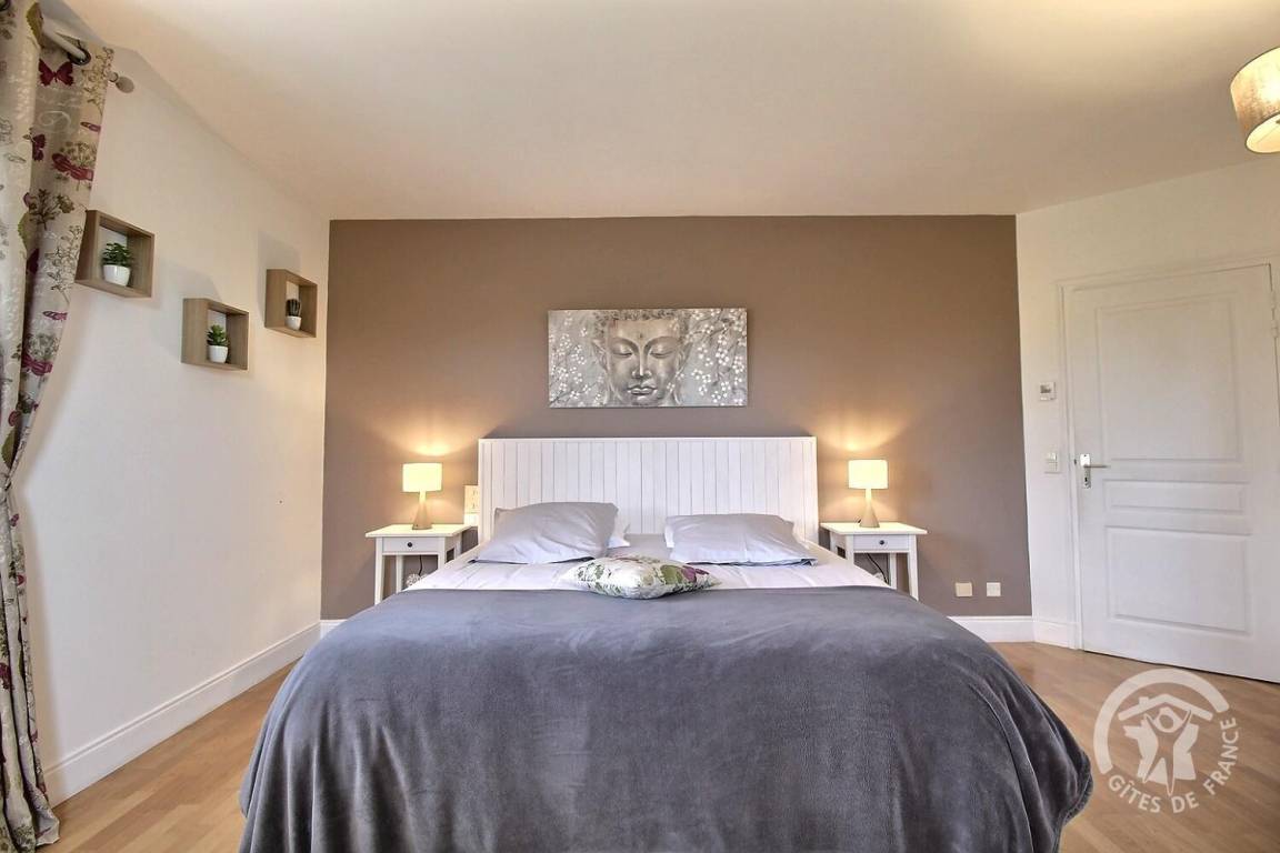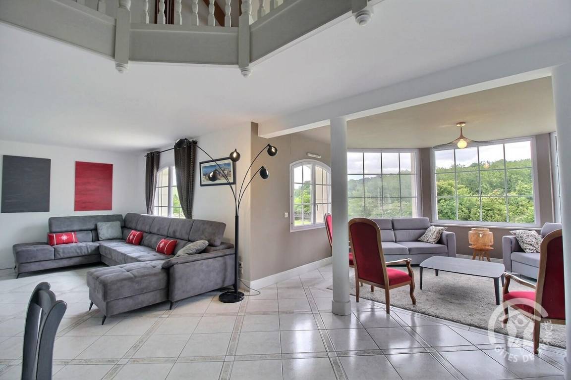 Dieses Ferienhaus bietet: Im Erdgeschoss: eine Diele mit separatem WC, 2 schöne helle Wohnzimmer mit Spieltisch und Klavier, Pelletofen, Esszimmer und angenehme Einbauküche, Waschküchenbereich, eine Zen Schlafzimmer-Suite mit 1 Zimmer (1 Bett 160x200), einem weiteren Zimmer (1 Bett 90x200), großem Badezimmer (mit Badewanne und Dusche) und ein WC. Im Obergeschoss: Prächtiges Zwischengeschoss, überhängend auf das Wohnzimmer mit Billardtisch, zu 2 Einheiten führend, jede mit 2 Schlafzimmern, die ihre eigene Badezimmer mit Dusche haben. In der Einheit Nature 1 Schlafzimmer (mit 1 Bett 160x200) und 1 Schlafzimmer (mit 2 Betten 90x200). In der Einheit Romantique 1 Schlafzimmer (mit 1 Bett 160x200) und 1 Schlafzimmer (mit 2 zusammenstellenden Einzelbetten), separate Toiletten. 100 qm große Terrasse von den 2 Wohnzimmern und der Küche aus erreichbar, Whirlpool das ganze Jahr über verfügbar, großes Landschaftsgrundstück mit Trampolin, Tennisplatz zur gemeinsamen Nutzung mit den Eigentümern und