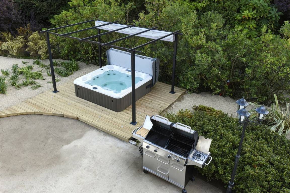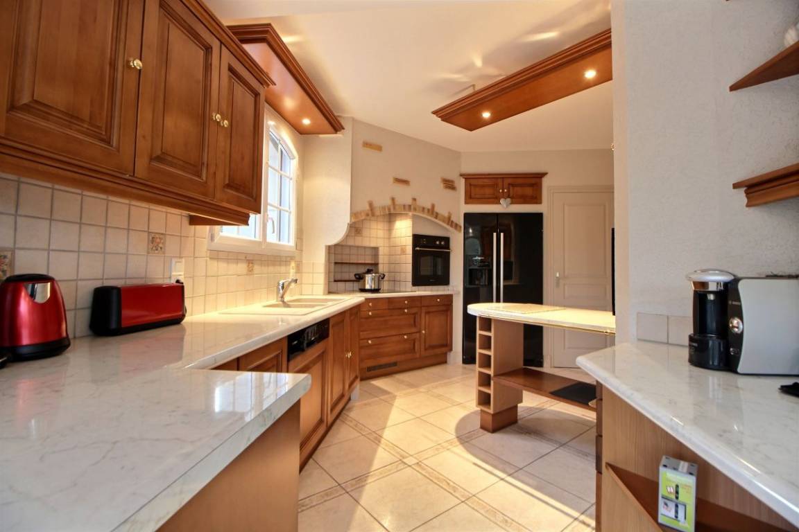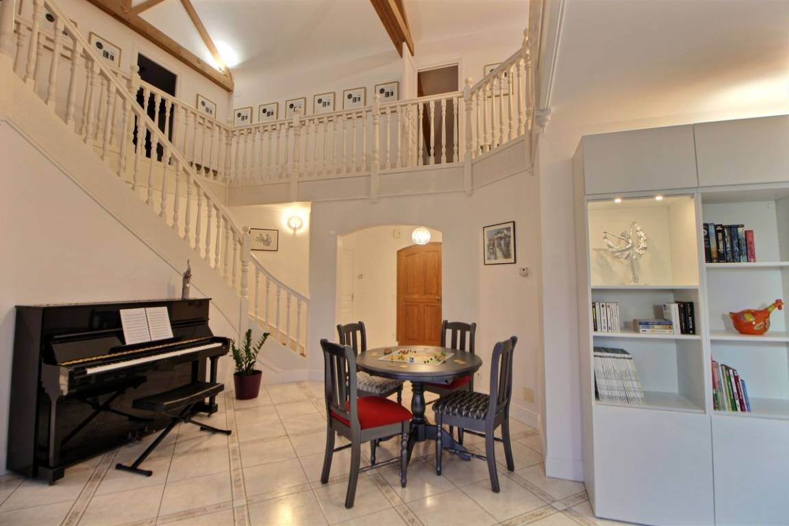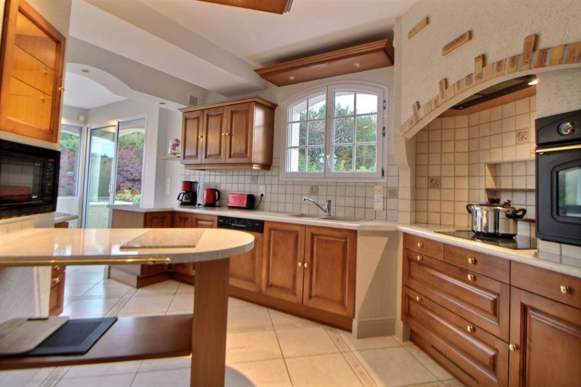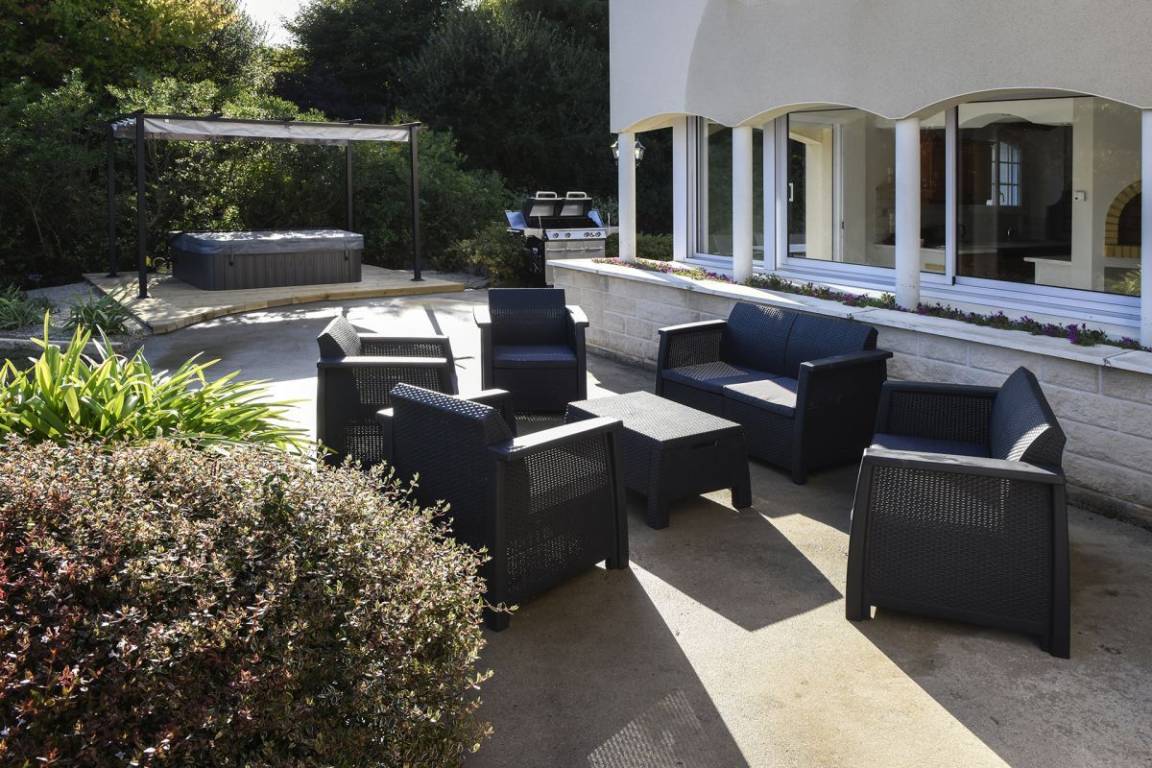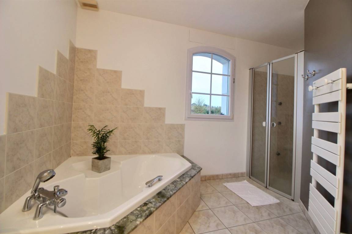 Dieses Ferienhaus bietet: Im Erdgeschoss: eine Diele mit separatem WC, 2 schöne helle Wohnzimmer mit Spieltisch und Klavier, Pelletofen, Esszimmer und angenehme Einbauküche, Waschküchenbereich, eine Zen Schlafzimmer-Suite mit 1 Zimmer (1 Bett 160x200), einem weiteren Zimmer (1 Bett 90x200), großem Badezimmer (mit Badewanne und Dusche) und ein WC. Im Obergeschoss: Prächtiges Zwischengeschoss, überhängend auf das Wohnzimmer mit Billardtisch, zu 2 Einheiten führend, jede mit 2 Schlafzimmern, die ihre eigene Badezimmer mit Dusche haben. In der Einheit Nature 1 Schlafzimmer (mit 1 Bett 160x200) und 1 Schlafzimmer (mit 2 Betten 90x200). In der Einheit Romantique 1 Schlafzimmer (mit 1 Bett 160x200) und 1 Schlafzimmer (mit 2 zusammenstellenden Einzelbetten), separate Toiletten. 100 qm große Terrasse von den 2 Wohnzimmern und der Küche aus erreichbar, Whirlpool das ganze Jahr über verfügbar, großes Landschaftsgrundstück mit Trampolin, Tennisplatz zur gemeinsamen Nutzung mit den Eigentümern und