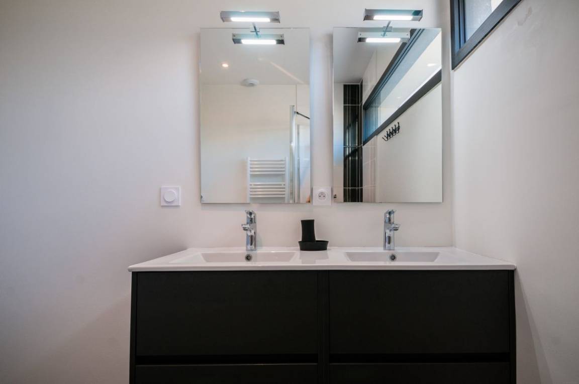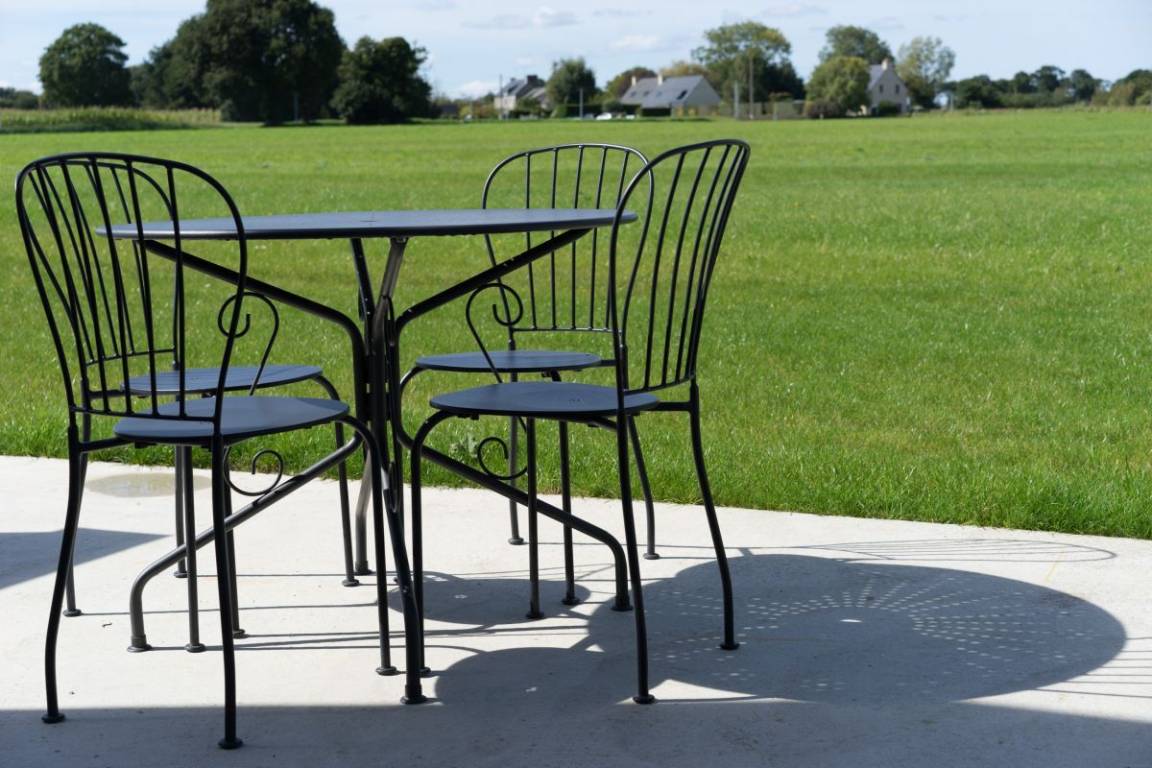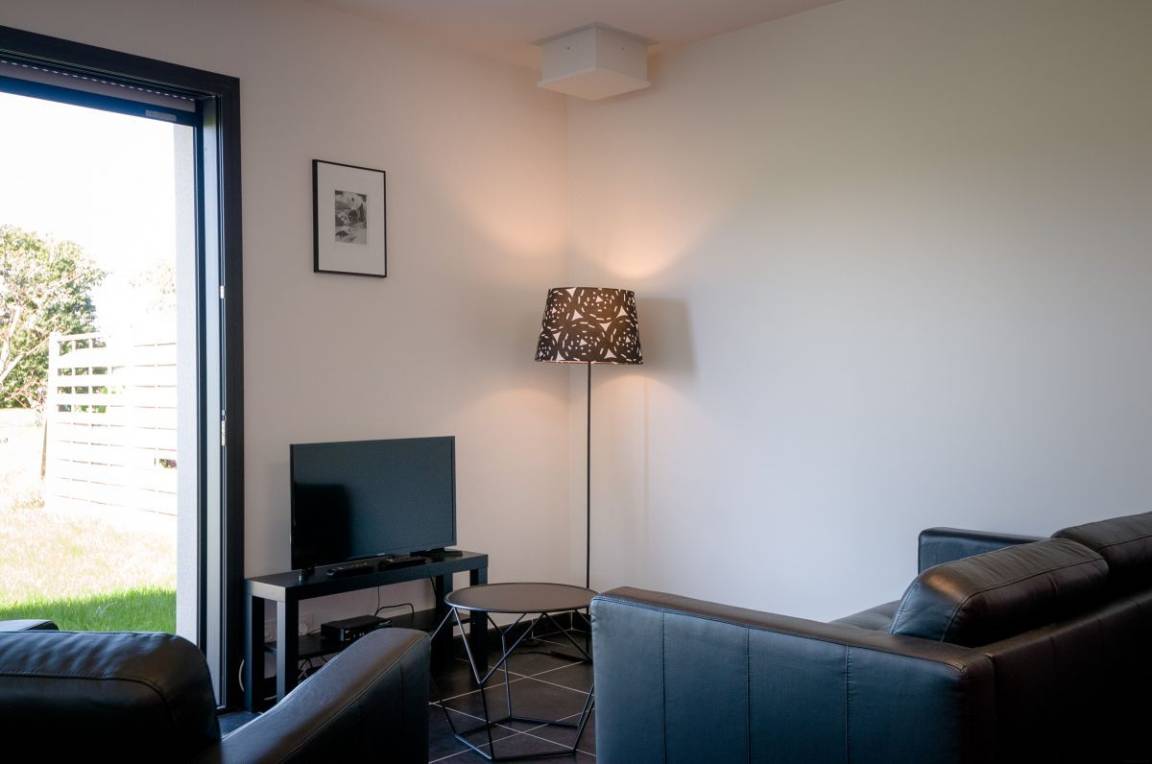 Ihr Ferienhausangebot enthält: auf derselben Ebene: Ess-Wohnsalon mit Küche, 1 Schlafzimmer (2 Betten 90x200), Bad mit Dusche, eine Schlafecke (1 Bett 90x200) und eine weitere Schlafmöglichkeit im Etagenbett (geeignet für Kinder über 6 Jahre), separates WC. Private Terrasse. Gemeinsamer Garten von 6000 m² ohne vis-à-vis mit Blick auf den Wanderweg GR34 und den Fahrradweg.