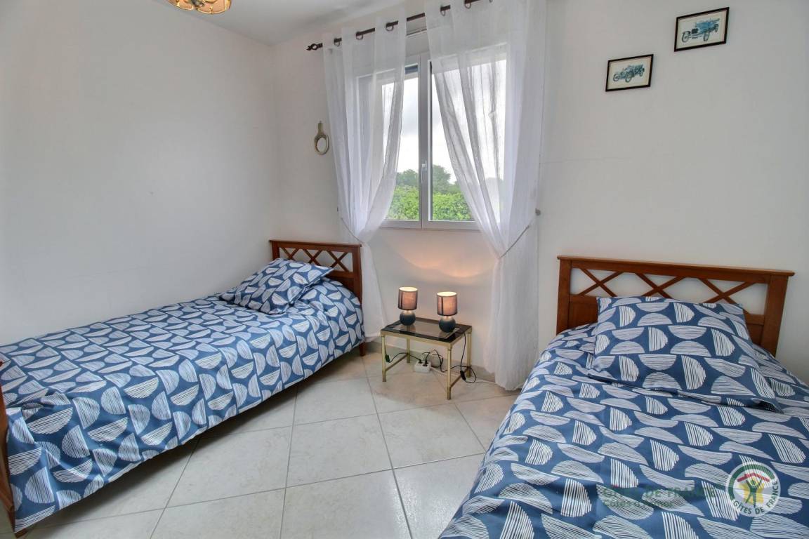 Ihre Ferienwohnung umfasst auf einer Ebene: Küche, Wohnzimmer, 2 Schlafzimmer (1 Doppelbett 140x190, 2 Einzelbetten 90x190), Duschbad, WC, Waschküche. Zu Ihrer Verfügung: Garage, privater Garten von 600 m². Parken Ihrer Fahrzeuge im privaten Innenhof der Unterkunft.