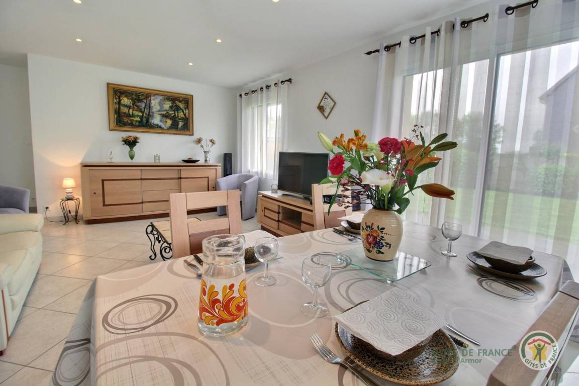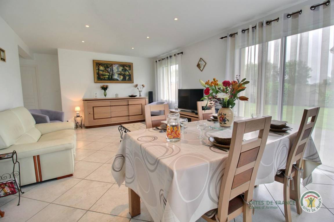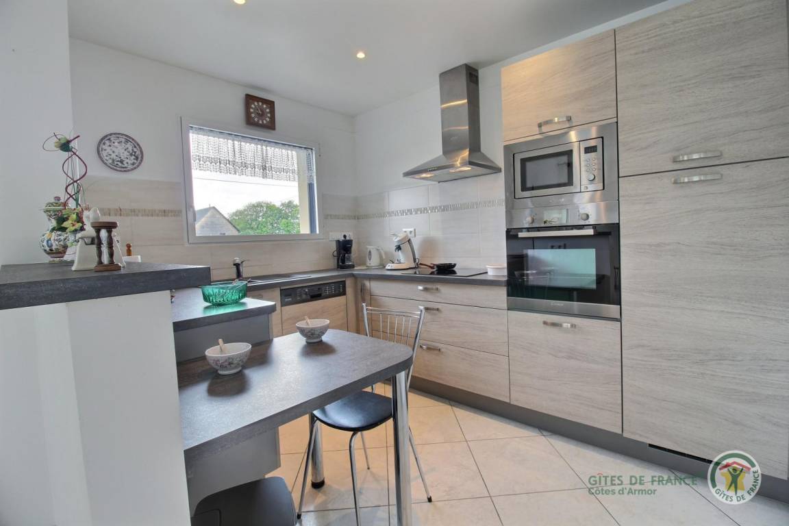„Ce gîte est le meilleur que nous ayons connu en terme de propreté, fonctionnalité, confort. Tout est moderne et en parfait état, rien ne manque. La situation du gîte est parfaite pour visiter cette belle région de Bretagne. Le calme est absolu, la mer est à deux pas. Bref, un gite parfait pour des vacances reposantes et à proximité d'un littoral magnifique.“